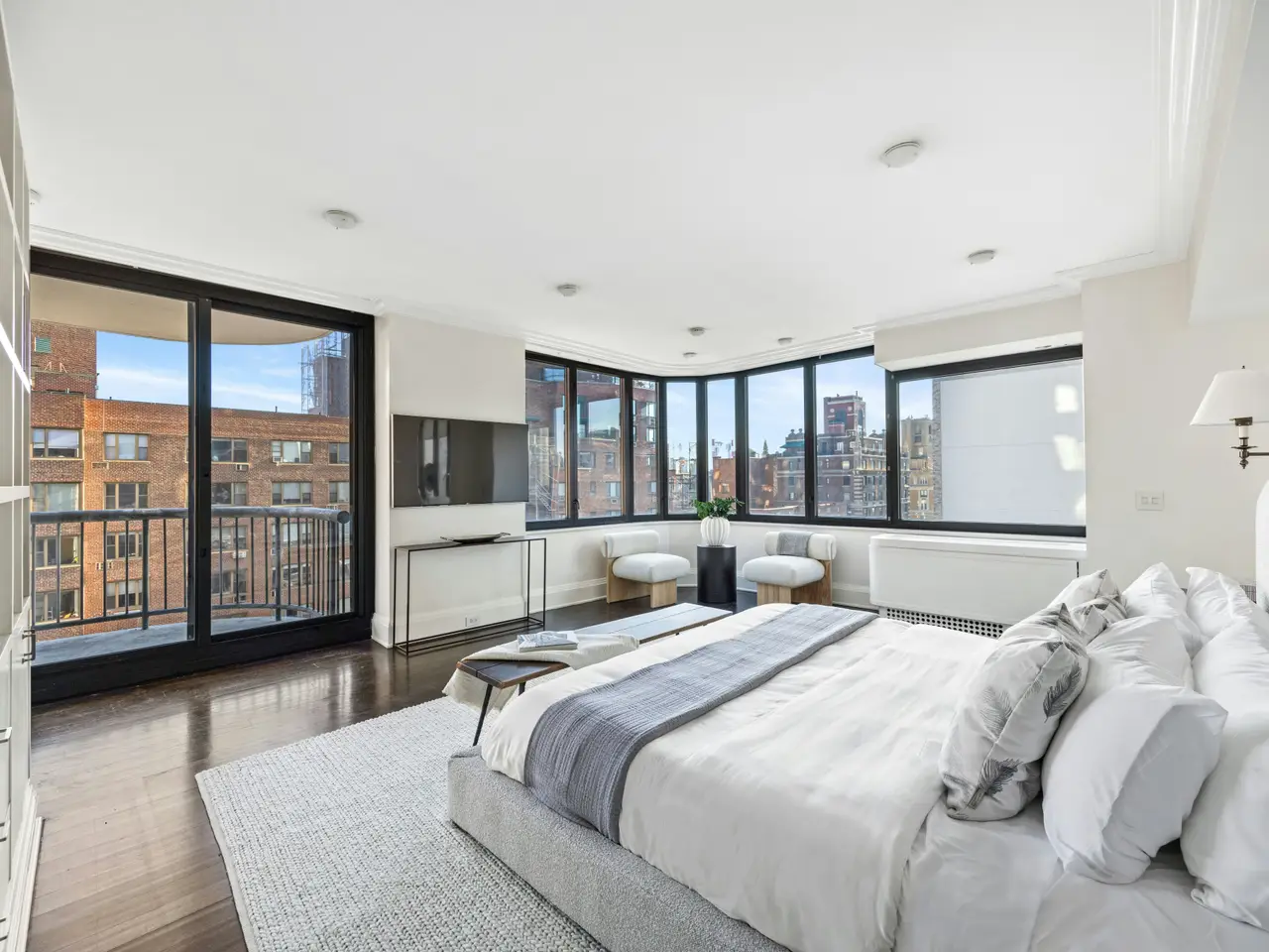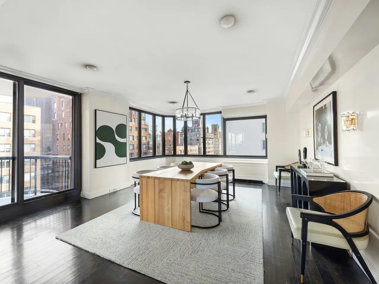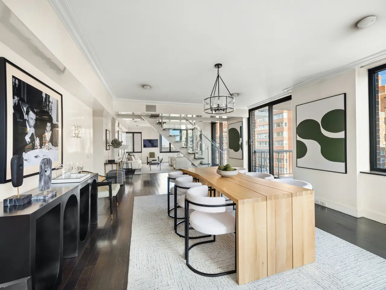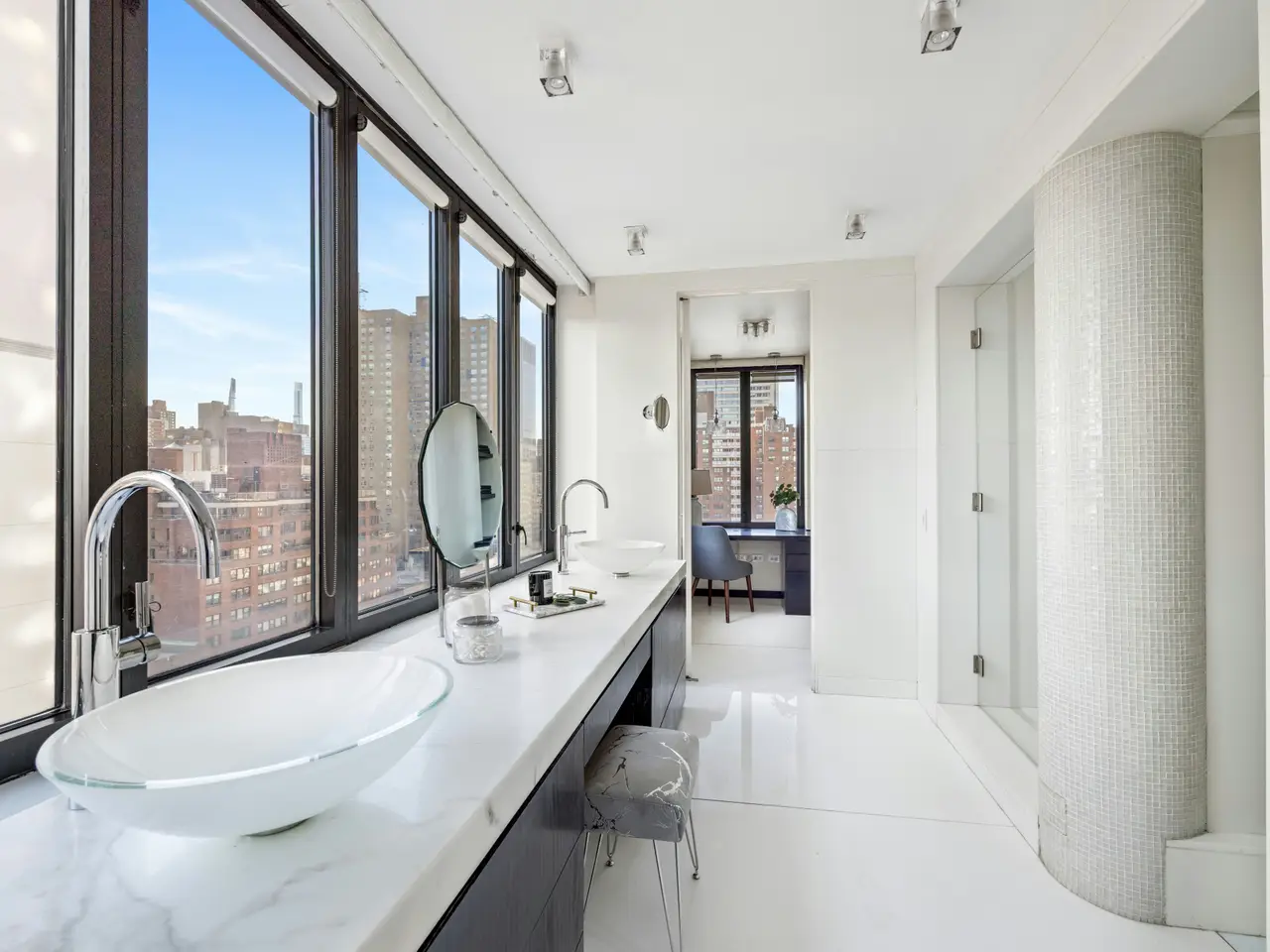 This capacious 4,107 gross square foot, 12 room apartment features 4 bedrooms plus a staff room, 5.5 bathrooms, 2 home offices, 5 balconies, and all 4 exposures. 4 apartments were thoughtfully combined and designed to make this wonderful layout with plenty of room, storage, entertaining space as well as privacy. For $1000/foot, and in nice condition, this apartment represents incredible value! Enter into the apartment from a semi-private vestibule into the expansive 40 foot wide double living room and dining room with its elegant glass and wood staircase in between. You are greeted by 3 exposures from the moment you walk in, and 2 balconies overlooking the tranquil East End Avenue. There are dark wood floors, crown and base moldings and enormous windows throughout. The sunny corner eat-in kitchen is perfect for any chef or home cook, replete with 2 Wolf ovens, a Wolf 6 burner range, Bosch dishwasher, two large soaking sinks, as well as a pantry sink,Marvel wine cooler, and an extra-large Sub-Zero refrigerator as well as a small mini Sub-Zero fridge. The kitchen fits a large table or island, has a walk-in pantry closet, plentiful storage, a little bench, and a home office. A powder room and a small staff room with its own bathroom complete the lower level. At the top of the stairs, you are once again greeted by sunlight from floor to ceiling windows, looking north to see Carl Schurz Park and east to see a sliver of the East River. This room makes an excellent den or media room. The primary bedroom suite feels unbelievably luxurious in size, with a dressing room, enormous walk-in closets, and a primary bathroom with a wall of windows facing south, double vanities, walk-in shower and yet another home office! The primary also has a balcony and curved windows facing south and east allowing the room to bask in sun. The other 3 bedrooms and 3 bathrooms are all located off their own private bedroom hallway which allows for maximum privacy. There is a bonus laundry room with an oversized washer/dryer and a kitchenette and elevator access on the 14th floor if you're feeling too lazy to head downstairs. Additionally there is through the wall air conditioning with thermostat control throughout. 52 East End Avenue is a spectacularly run luxury condominium with 24-hour doorman/concierge, live-in resident manager, fitness center, central laundry and bicycle storage. The condominium is 2 blocks away from Carl Schurz Park, around the corner from the East River Promenade, near the 2nd Avenue Subway, crosstown buses and the FDR Drive. There is a flip tax of 2% split evenly between buyer and seller. Primary residents will be eligible for a 17.5% real estate tax abatement. Pets welcome.