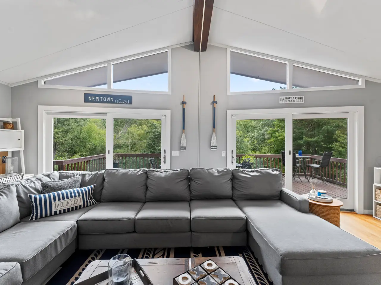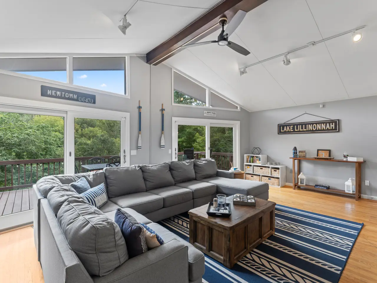 Live your Best Life at the Lake & make very day a count! Talk about multiple rooms with views from all vantage points. Experience lakeside at this beautiful contemporary ranch privately set on 2+ level acres boasting captivating views & lake frontage on Lake Lillinonah. A rare opportunity to own a direct waterfront retreat, this property features its own private 400 sqft dock-perfect for fishing/boating/jet skiing/kayaking or simply soaking in the sunshine & surrounding natural beauty. Whether making this a permanent residence or city escape, every day will feel like a vacation! The inviting main level boasts a sun filled Vaulted Great Room/frplc with walls of multiple sliders allowing natural light to cascade throughout bringing the outdoors in & opens to a mahogany deck for captivating sky, pool & lake views. The home is an entertainers dream with an easy open flr plan-the Great Rm flows into the dining area & white bright kitchen. The home lives like a 5 Bdrm with 3 Bdrms/2 trendy baths on the main level where the Primary Bdrm suite is located. The walk-out lower level showcases phenomenal additional living space consisting of 4 flexible rooms encompassing the Rec/Billiard/Media Rm & lounge area plus 2 additional rooms currently serve as Bdrms w 3rd full bath. Each living room on this level has its own sliders & views leading to an expansive 2nd mahogany deck. A private Den can also be the perfect home office. The possibilities are endless whether hosting guests or in-laws. The multi-level decks and their panoramic views is what will captivate you. As you step outside, you will feel transported to resort-like living as you appreciate this backyard oasis-enjoy the newly built heated salt water inground pool (2021) surrounded by expansive multi-level patios, stone walls & inviting fire-pit. Elevate your outdoor dining and lounging experience whether on deck, at the patio or poolside. An enormous front yard offers additional playing and lounging areas with an offside area for multiple parking. Whether you're searching for a year-round residence or the ultimate weekend get-away, this home offers the perfect blend of privacy, comfort & resort-style amenities to enhance one's best life in a highly coveted lakefront community nestled amongst other fine waterfront homes all within Newtown yet minutes to Brookfield center and neighboring Bridgewater. Enjoy Newtown's Main Street including the Rec Center at Fairfield Hills, Newtown Arts festival, Halloween on Main & the Christmas Holiday Walk, numerous dining options & recreational activities. Easy commuting to Interstate 84/Routes 684. Check out the Video for a sneak peak of what life could be like here!