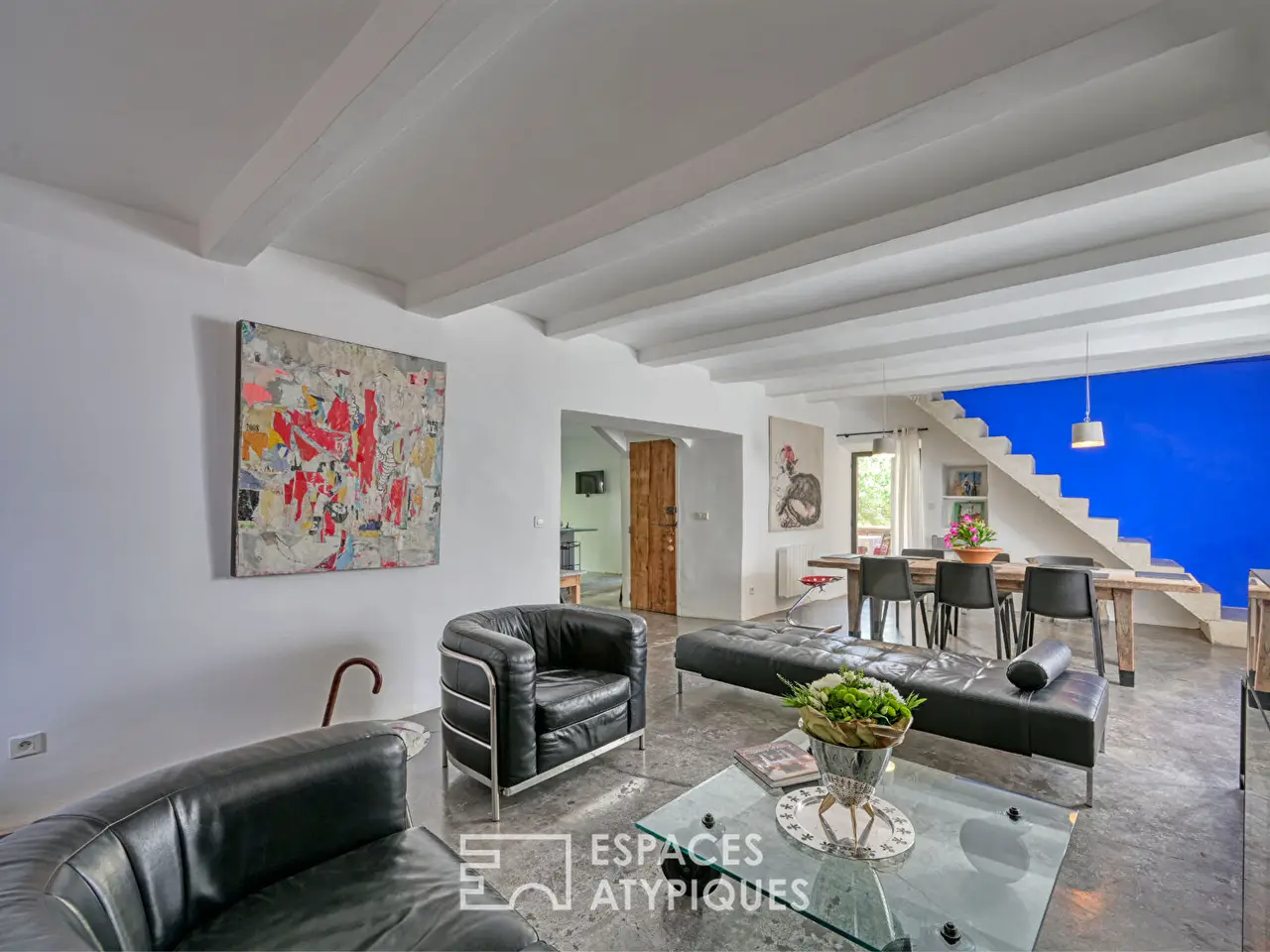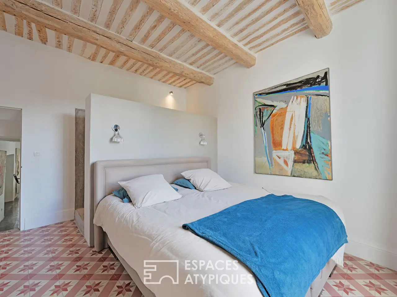 In einem authentischen Dorf, nur 20 Minuten von Uzès entfernt, bietet dieses prächtige, renovierte Dorfhaus ca. 290 m² Wohnfläche und verbindet elegant den Charme des Alten mit modernen Materialien. Betonböden, Steinwände und Sichtbalken verleihen diesem Anwesen einen einzigartigen Charakter und werden Liebhaber markanter Dekoration begeistern. Das Haupthaus besteht aus zwei separaten Teilen: Im Erdgeschoss befinden sich ein großes Wohnzimmer, das als Wohn- oder Schlafzimmer genutzt werden kann, ein Duschbad, ein Esszimmer mit Zugang zur Einbauküche, ein Büro, eine Eingangshalle, ein Keller und ein Abstellraum. Zwei Terrassen laden zum Entspannen ein, ebenso wie eine lichtdurchflutete Sommerlounge. Der zweite Teil des Hauses ist über zwei separate Eingänge erreichbar. Im ersten Stock befinden sich ein großes, helles Wohnzimmer mit gemütlicher Sitzecke und Pelletofen sowie eine modern gestaltete Einbauküche. Zwei komfortable Suiten und eine luxuriöse Mastersuite mit privatem Wohnbereich und einer tropezianischen Terrasse mit atemberaubendem Blick auf die Umgebung runden das Angebot ab. Ein Büro rundet das Angebot ab. Abgerundet wird das Ganze durch ein ca. 100 m² großes, völlig unabhängiges Gästehaus, dem es ebenfalls an Charme nicht mangelt. Es bietet ein Wohnzimmer mit offener Küche, ein Obergeschoss, ein Schlafzimmer und ein Badezimmer mit WC – ideal für die Unterhaltung von Familie und Freunden oder zur Vermietung. Draußen erwartet Sie ein perfekt umzäunter, bewaldeter Garten. Sichtgeschützt und in intimer Atmosphäre gelegen, finden Sie einen Swimmingpool mit überdachter Terrasse. Eine kleine Werkstatt rundet den Außenbereich ab. Dieses außergewöhnliche Anwesen lädt zu erholsamer Ruhe und Entspannung ein. Perfekt renoviert mit hochwertigen Materialien, vereint es authentischen Charme mit modernem Komfort. Ein echter Favorit für dieses seltene Anwesen voller Charme und Authentizität. Entdecken Sie es jetzt! Ein exklusives Angebot von ESPACES ATYPIQUES. REF. 7995 Zusätzliche Informationen * 10 Zimmer * 5 Schlafzimmer * 5 Badezimmer * 2 Etagen im Gebäude * Außenfläche: 250 m² * Grundsteuer: 1.400 €