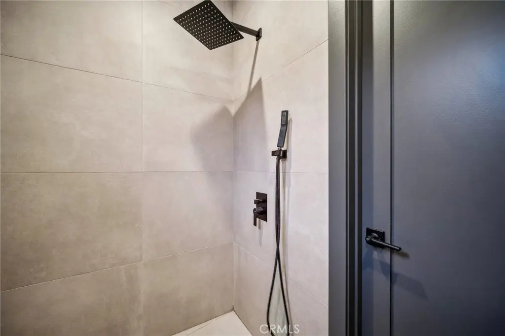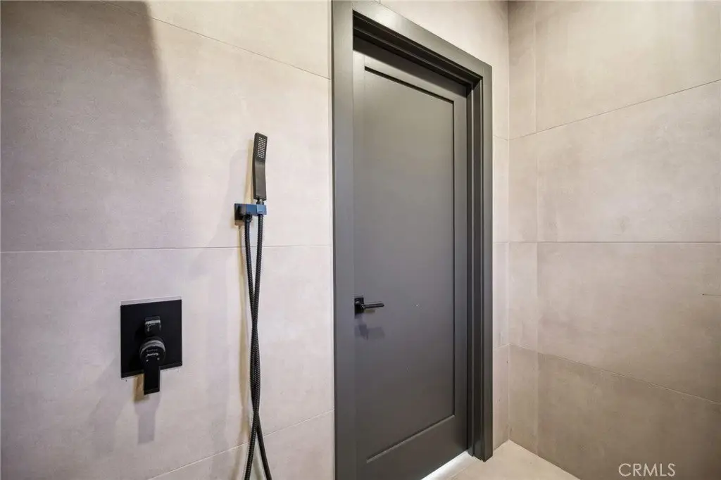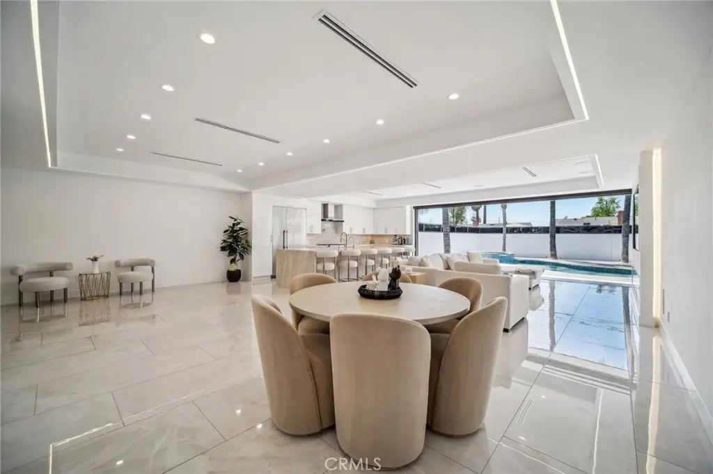 This bold European modern estate in North Hollywood is a true architectural statement. Privately gated and finished in crisp black-and-white tones with presidential roof shingles, it delivers immediate impact. A grand glass pivot door ushers you into an expansive 2,332 square foot open concept interior defined by custom tray ceilings, ambient LED strip lighting, recessed lighting, designer tile flooring, and minimalist infinity vents with integrated speakers seamlessly merging innovation and design. The custom chef’s kitchen features sophisticated two-tone cabinetry, a dramatic 12-foot waterfall island with extensive built-in storage, Taj Mahal countertops, a built-in stainless steel refrigerator, Miele appliances, and a disappearing pocket door for uninterrupted flow. The living room centers around an abstract fireplace wall with custom shelving and an electric fireplace. The wall extends beyond its frame with backlit LED detailing, creating a striking visual effect and an unforgettable centerpiece. The primary suite offers a private retreat, complete with a custom walk-in closet, spa-inspired bathroom, and full-height sliding glass doors that open to a verdant backyard sanctuary. Three bedrooms and three bathrooms including two en-suite configurations plus a thoughtfully designed powder room, are finished with warm wood floors and designer tilework throughout. The finished garage includes a half bathroom and a discreet laundry area. Both the front and back yards are meticulously designed with large-format modern pavers, mature palms, and lush landscaping, all enclosed with clean-lined fencing for enhanced privacy. The backyard evokes a resort-like atmosphere, featuring a shimmering pool, elevated spa, and a 615 square foot pool house designed for versatility and style. Highlighting the space is an impressive 7-panel, over-30-foot pocket door system that fully stacks at the final panel creating a seamless indoor-outdoor transition. The pool house also features bamboo-style tile in black and gray tones, a fully outfitted custom BBQ center, a full bathroom, and dedicated storage for outdoor essentials. Additionally, the property includes brand-new air conditioning and heating systems, two gas-powered Rinnai tankless water heaters—one serving the main residence and one for the pool house—and a newly installed roof. Refined, contemporary, and built to impress—this home redefines European modern living in the heart of North Hollywood.
