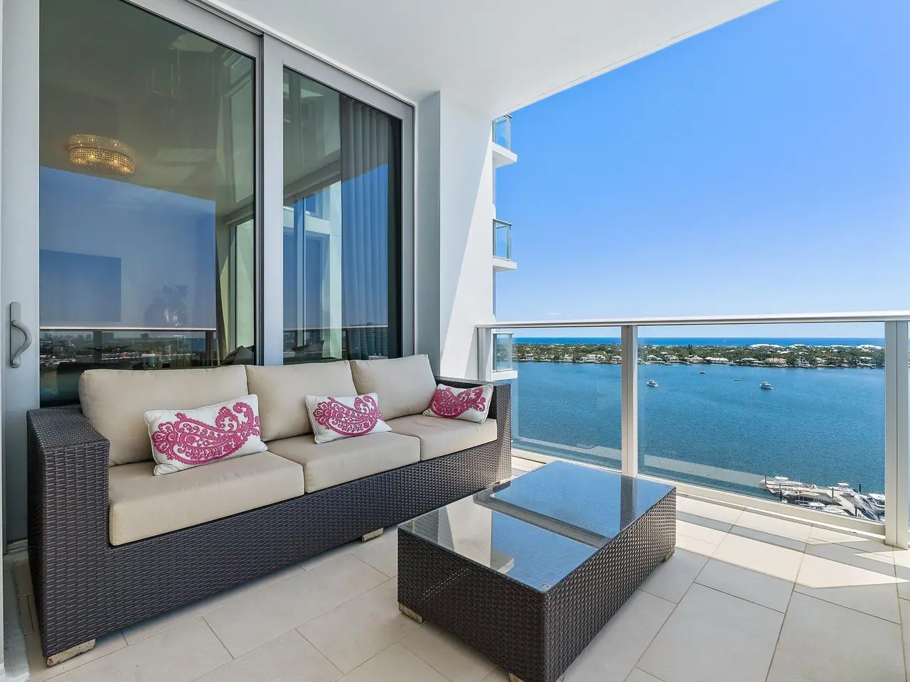 Enjoy amazing views to the ocean, Lake Worth Lagoon, and as far South as The Breakers Hotel in Palm Beach from this ultra-luxury ''Cobalt'' floor plan in Water Club. This unit has a den/office that could serve as a 3rd bedroom with use of the hall Power Room on those rare occasions when you have an extra guest. Best of all, Water Club has world class amenities like 24/7 manned and gated security, private elevator lobbies, under building parking, a private clubhouse with bar and billiards table, resort style pool, day docks, lap pool, fitness center with yoga/pilates studio, spa, fire pits, pickle ball court, guest suites, and more..