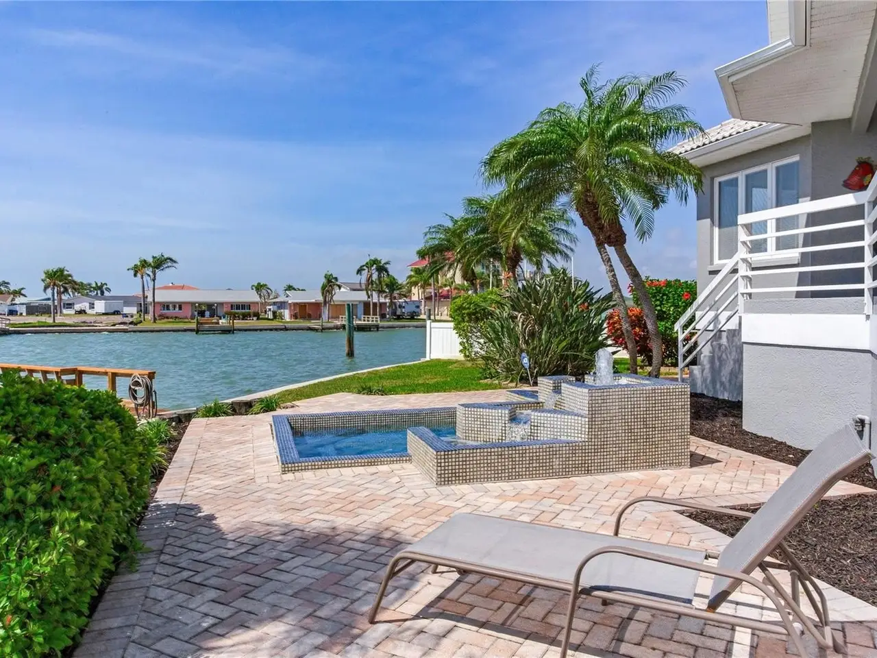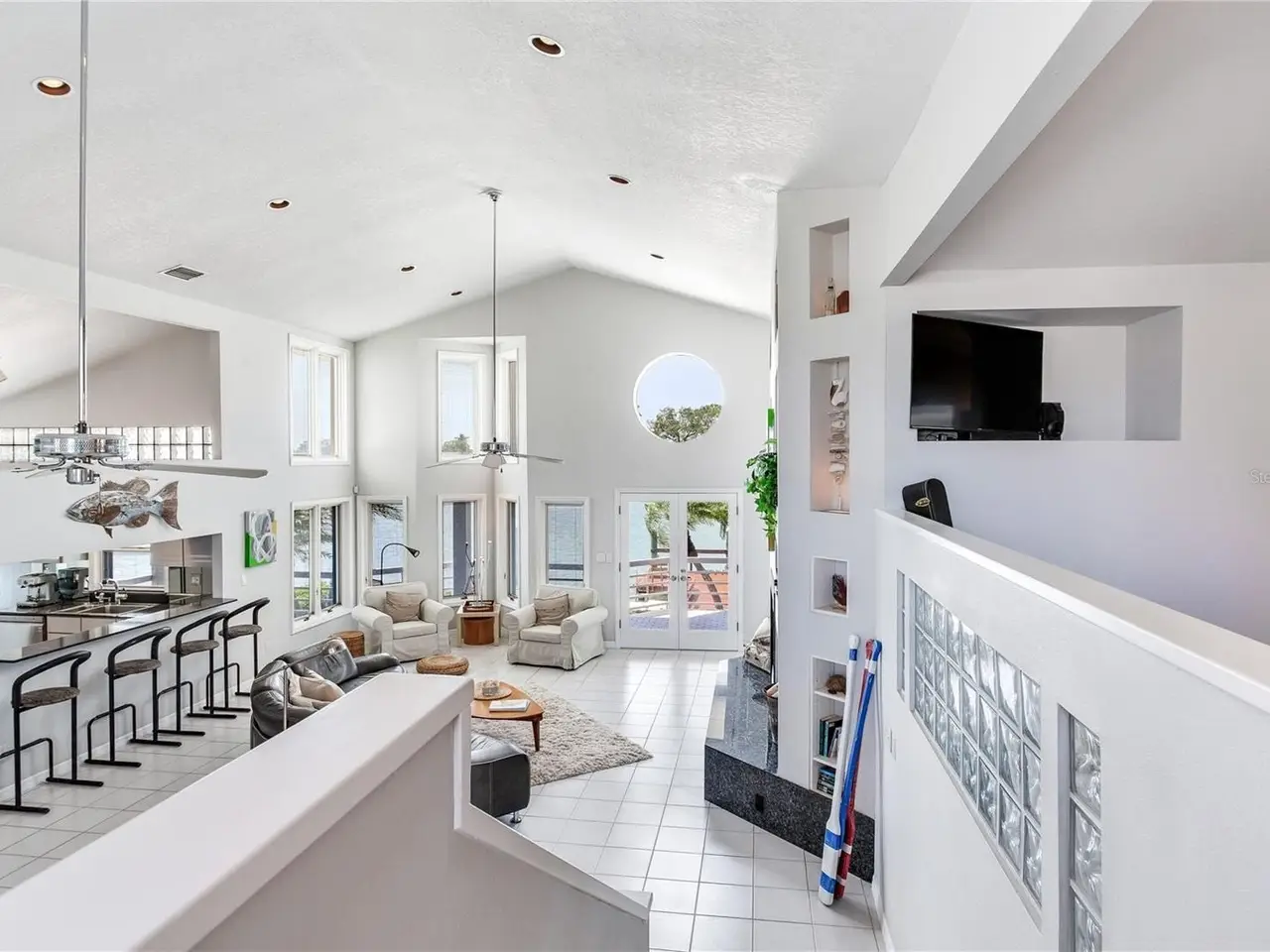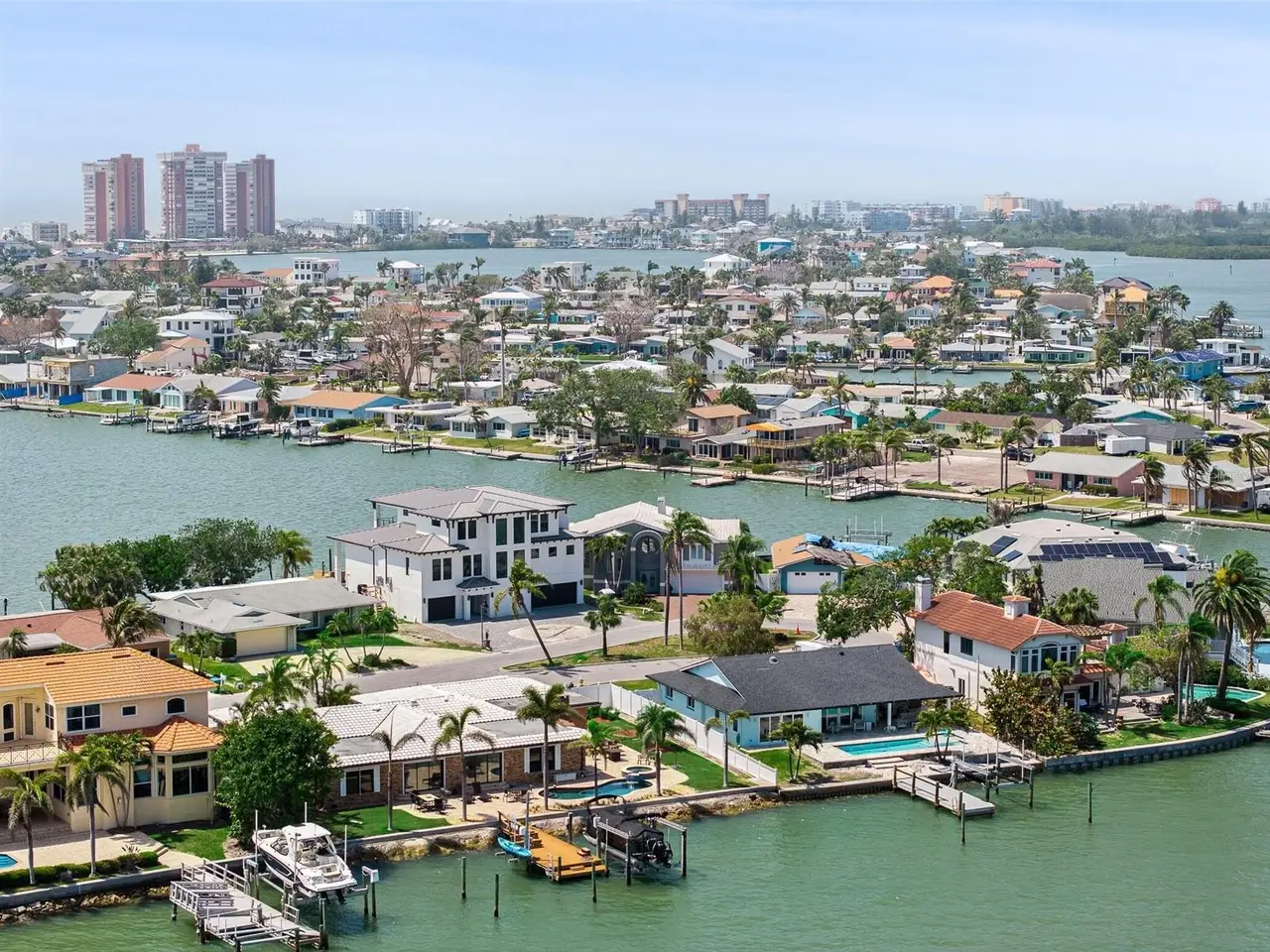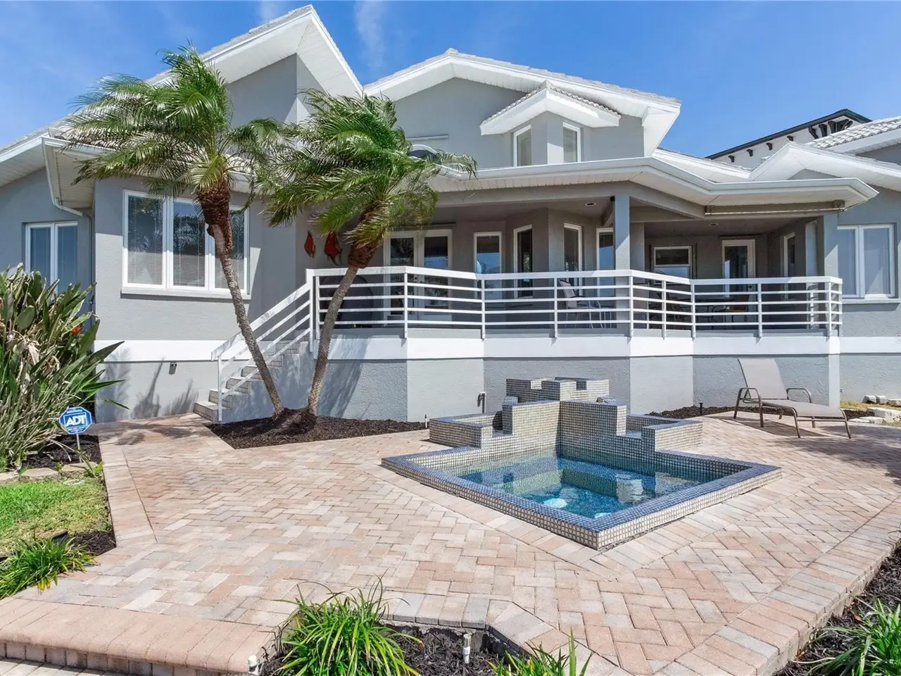 STUNNING ELEVATED CUSTOM-BUILT CONTEMPORARY HOME ON 107 FT OF WATERFRONT IN NORTH REDINGTON BEACH!! Welcome to your slice of waterfront paradise! Perfectly situated at the end of a quiet cul-de-sac, this architecturally unique residence boasts 107 feet of prime open water frontage with spectacular west-facing views—a front-row seat to unforgettable Florida sunsets. Step inside this 3-bedroom(3rd Bedroom has been opened up as a versatile loft space-perfect for a home office, den, or media area-but can easily be enclosed again with a door and half wall to restore full functionality), 3-bathroom home with 2,541 sqft of thoughtfully designed living space, where soaring vaulted ceilings and abundant natural light highlight the home’s open and airy feel. Nearly every room captures panoramic water views, bringing the beauty of the bay right into your living space. The spacious primary suite offers a true retreat, complete with a large walk-in closet and a spa-inspired en suite bath featuring a freestanding designer soaking tub, frameless glass shower, and dual vanities. The kitchen is perfectly positioned to overlook the living area and includes a cozy breakfast nook—ideal for morning coffee with tranquil water views. Luxury finishes throughout include granite countertops, a stunning pearl granite hearth, Pella windows, and storm panels. Step outside to the expansive balcony and enjoy your private dock, heated spa with fountains, and plenty of room for entertaining or unwinding in your peaceful bayfront oasis. The 107-foot seawall (installed in 2006) adds lasting value and peace of mind. Located just a short walk to the beach, near a city park, and surrounded by underground utilities for a clean, serene streetscape—this home seamlessly blends luxury, location, and lifestyle.