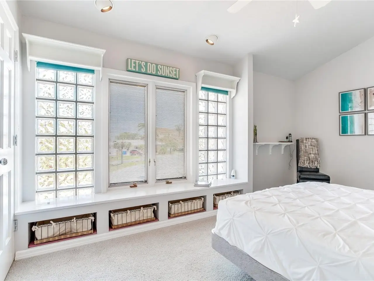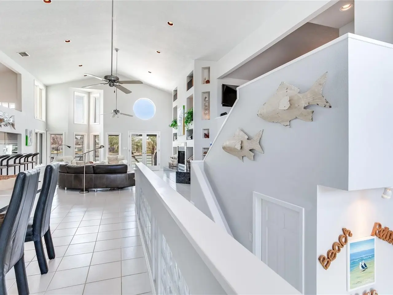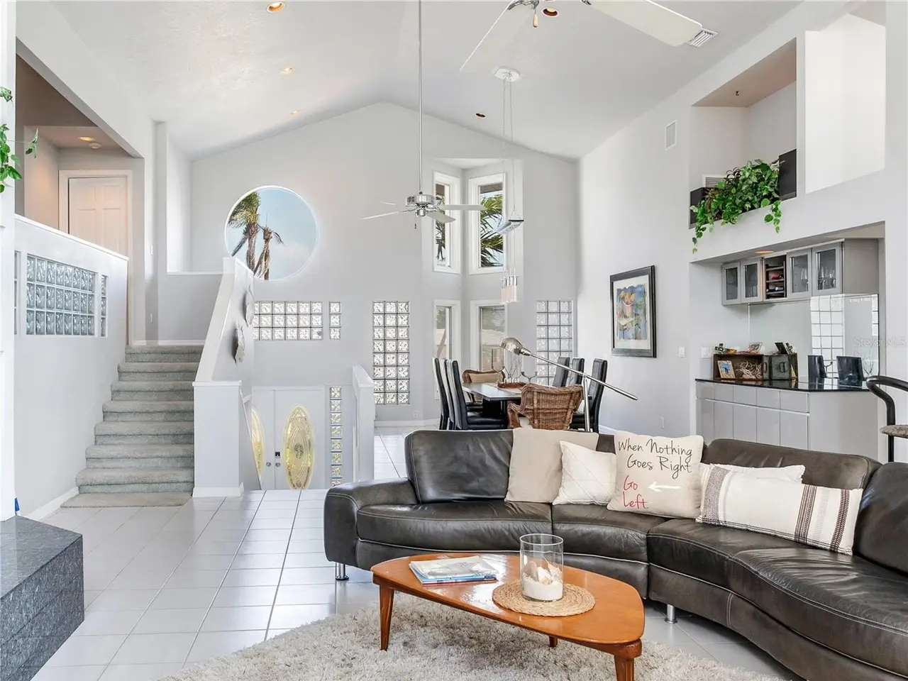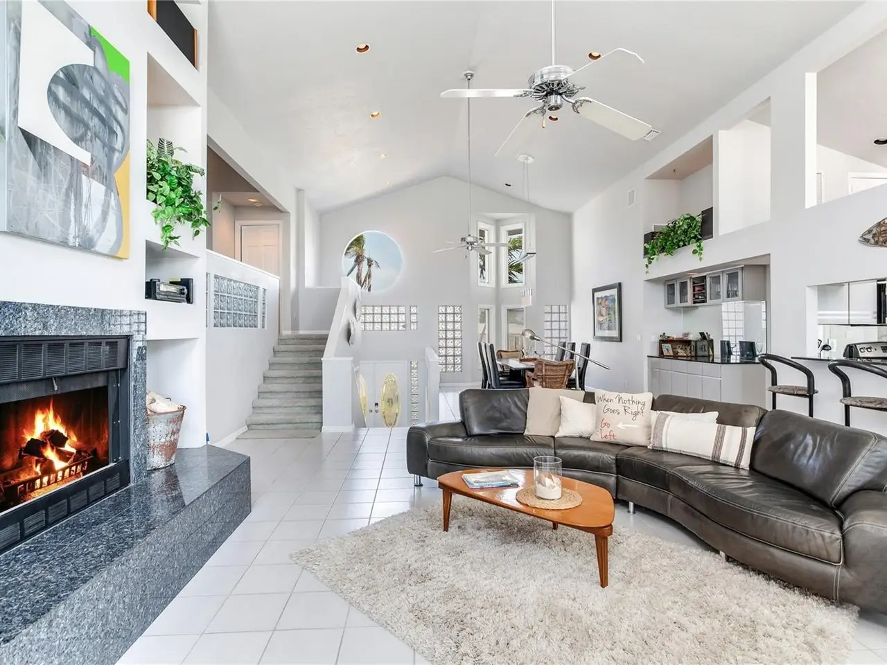 STUNNING ELEVATED CUSTOM-BUILT CONTEMPORARY HOME ON 107 FT OF WATERFRONT IN NORTH REDINGTON BEACH!! Welcome to your slice of waterfront paradise! Perfectly situated at the end of a quiet cul-de-sac, this architecturally unique residence boasts 107 feet of prime open water frontage with spectacular west-facing views—a front-row seat to unforgettable Florida sunsets. Step inside this 3-bedroom(3rd Bedroom has been opened up as a versatile loft space-perfect for a home office, den, or media area-but can easily be enclosed again with a door and half wall to restore full functionality), 3-bathroom home with 2,541 sqft of thoughtfully designed living space, where soaring vaulted ceilings and abundant natural light highlight the home’s open and airy feel. Nearly every room captures panoramic water views, bringing the beauty of the bay right into your living space. The spacious primary suite offers a true retreat, complete with a large walk-in closet and a spa-inspired en suite bath featuring a freestanding designer soaking tub, frameless glass shower, and dual vanities. The kitchen is perfectly positioned to overlook the living area and includes a cozy breakfast nook—ideal for morning coffee with tranquil water views. Luxury finishes throughout include granite countertops, a stunning pearl granite hearth, Pella windows, and storm panels. Step outside to the expansive balcony and enjoy your private dock, heated spa with fountains, and plenty of room for entertaining or unwinding in your peaceful bayfront oasis. The 107-foot seawall (installed in 2006) adds lasting value and peace of mind. Located just a short walk to the beach, near a city park, and surrounded by underground utilities for a clean, serene streetscape—this home seamlessly blends luxury, location, and lifestyle.