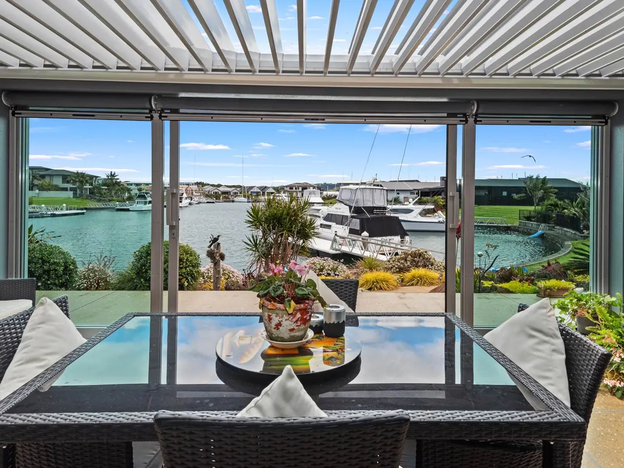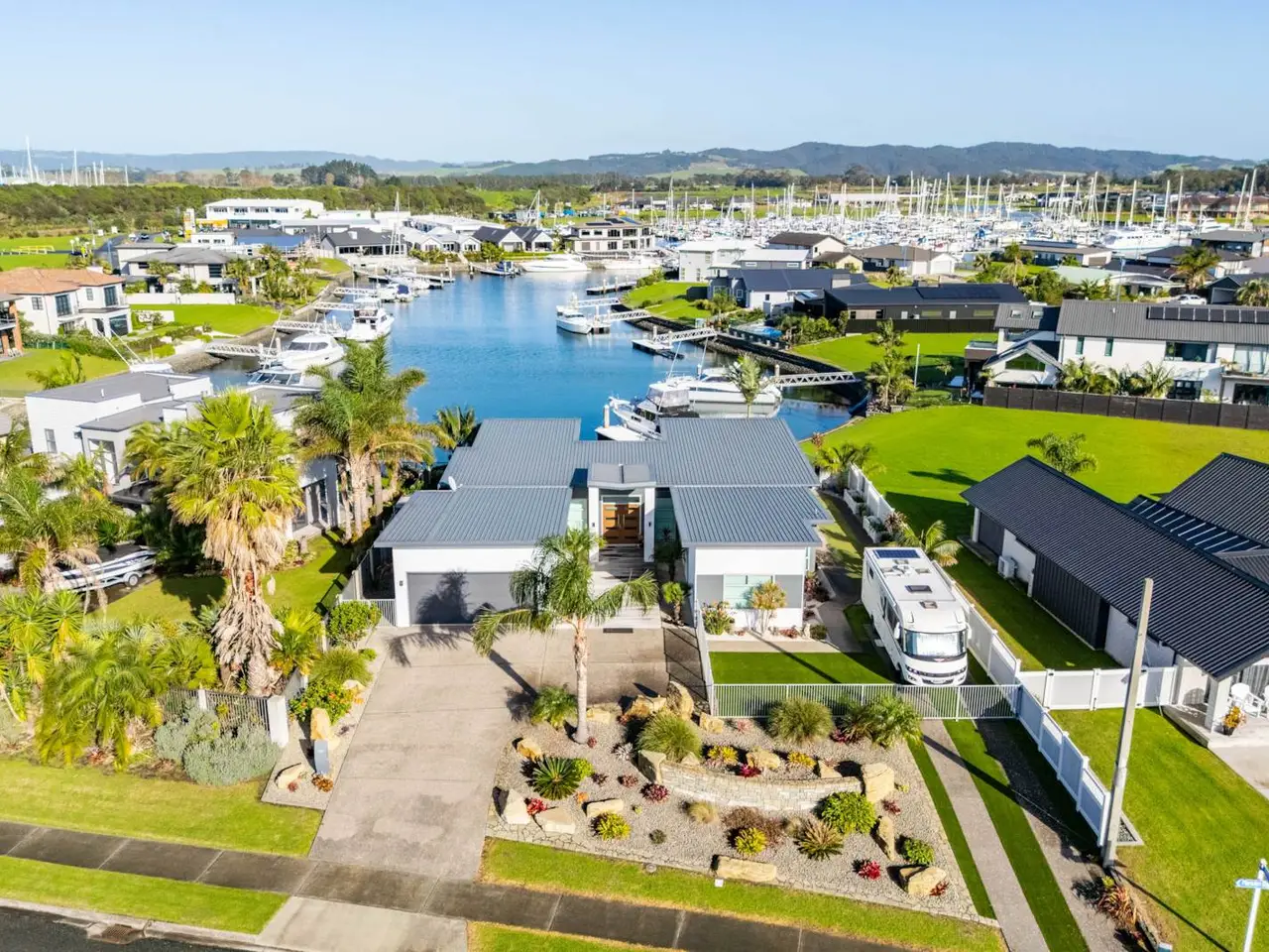 Bring your boat and head to Marsden Cove for waterfront living at its best! This canal front property, built in 2015, delivers a premium lifestyle at the prestigious Marsden Cove Marina, providing the perfect space to relax and unwind with family and friends. The easy-care 250sqm (approx.) single-level home features open-plan living, designed to capture stunning canal and marina views. Moor the boat and stroll from the pontoon to the all-weather patio, ideal for relaxing after a day on the water, complete with remote-controlled louvres to ensure optimal comfort year-round. Move inside and you’ll find the heart of the home, with the designer kitchen and scullery catering for the chef in the family, while the adjacent lounge offers a quiet retreat from the activities outside. The master retreat, located in the east wing, enjoys views over the canal and includes a full walk-in wardrobe and ensuite bathroom. There are three additional bedrooms – one in the east wing and the other two in the west wing, along with a main bathroom, making it perfect for extended family and guests. With an exclusive-use mooring envelope, this property offers exceptional boating convenience! There is also a dedicated parking area for a campervan on the 1045 sqm section. Marsden Cove represents waterfront living at its best, just 20 minutes from Whangarei and approximately two hours from Auckland. Homes of this calibre in such a prime location are highly sought-after and rarely come to market. Don’t miss your chance to own this outstanding property – call to view.