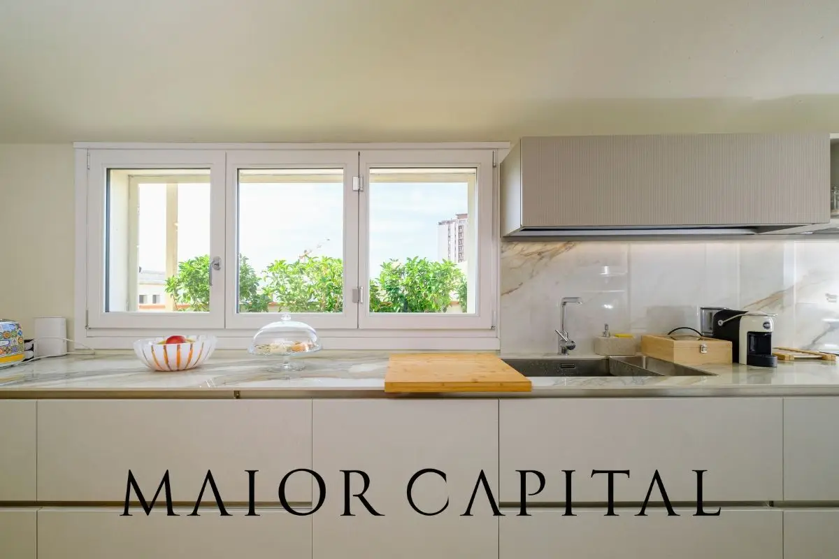 In the heart of Olbia's historic centre, along the lively Corso Umberto, we are offering an exclusive penthouse that is much more than just a home: it is a veritable art gallery, where creativity and design blend harmoniously with the timeless charm of a historic building. Located on the second and top floor, the property is part of a 1940s building, embellished with original frescoes that preserve its period character.A central and vibrant locationThe residence enjoys a privileged location in the heart of the city. Just a few steps away are the library, cinema, historic shops, traditional restaurants, aperitif bars and artisan workshops that reveal the authentic soul of Olbia. Furthermore, its proximity to the international airport and the Marina di Olbia - Moys makes this the perfect solution for those who want to live in the centre without sacrificing immediate access to the sea and the world.Interiors with an artistic soulThe penthouse is the result of a refined restyling that has successfully combined the spirit of the building with a contemporary language, enriched with touches of pure art and vintage references. The attic rooms, lit by large French windows and skylights, create a play of light and perspectives that amplify the perception of space.The furniture has been selected with extreme care: among the most significant pieces is a 1970s brass bed with matching bedside tables, which harmoniously dialogue with contemporary art elements.The bathrooms stand out for their dramatic character, with vintage cement tiles combined with carved wooden tops and contrasting washbasins, a combination that unites tradition and aesthetic research.Art as a common threadArt takes centre stage in every room: from works by local artists, including Scoobafish, to those by an Argentine artist who works with recycled iron materials, to a tribute by a Sicilian artist. Every detail contributes to transforming this home into an inspired and inspiring place. Not just a penthouse, but an environment that conveys emotions and tells stories.Stunning views and outdoor spacesThe living room opens onto a veranda overlooking Corso Umberto, offering unique views of the dome of St. Paul's Church and the Ferris wheel - known as the 'London Eye of Olbia' - which lights up at night, creating a magical atmosphere. The second covered veranda, connected to the kitchen and dining room, offers a more intimate space, perfect for private dinners or moments of relaxation.The sleeping area and master suiteAn elegant hallway leads to the sleeping area, which consists of two bedrooms, a large study and two bathrooms. The master suite is a charming retreat, with a freestanding bathtub in the bedroom, designed to provide a living experience reminiscent of a luxury boutique hotel.Comfort and technologyThis penthouse is not only aesthetically appealing, but has also been designed to guarantee a superior living experience. Every detail has been carefully considered to offer well-being, efficiency and safety, thanks to the integration of the best technologies for air conditioning, energy saving and home automation.A residence for those who love beautyThis property is designed for those looking for a home that is not just a dwelling, but a sensory experience. A penthouse that combines art, design and comfort in one of the most authentic and lively areas of Sardinia, ready to become the ideal home for lovers of beauty, collectors and creative spirits.Composed as follows:* Large living room with access to the uncovered veranda* Kitchen with access to a second covered veranda* Hallway* Master suite with freestanding bathtub* Second double bedroom* Two bathrooms with walk-in showers* Third bedroom or workshop/studyFeatures:* Fully furnished* Private lift* L