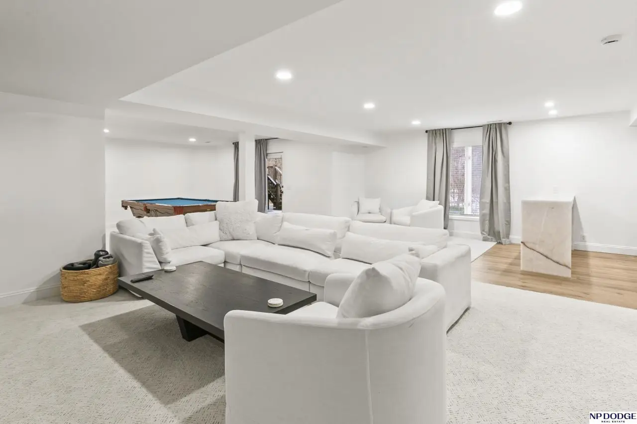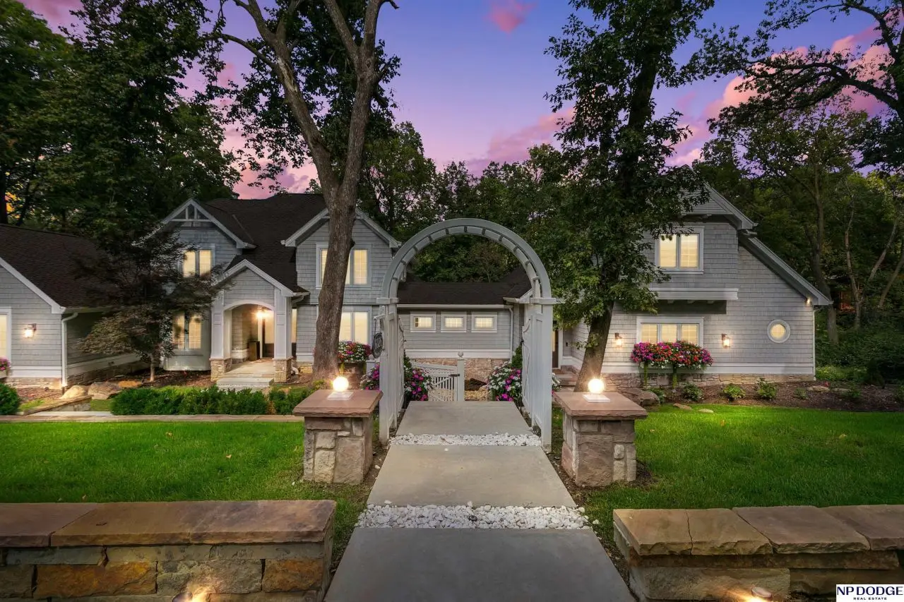 TURNKEY HOME sitting on almost 1.5 acres in the woods along the edge of Omaha Country Club golf course. No need to wait to build or remodel this has all been done for you. Pack your suitcase & move right in, truly resort style living in Omaha! Numerous renovations over 2024 including all bathrooms, a seventh bathroom was added & a seventh bedroom. Bathrooms have Restoration Hardware vanities, lighting & mirrors making them private en-suites. Fresh basement remodel including new onyx marble bar, cabinetry & carpeting. You will be impressed w/ the new custom modern master carpentry added throughout. Shiplap, ceiling treatments & wall treatments have added rich new layers. Designed for entertaining, it has the potential to be a multi-generational home. W/ two separate entrances & private quarters offering privacy & space for all. A place for relaxation & play w/ the Trackman two story golf simulator & custom putting greens bringing the course directly to you. Seize this remarkable estate.