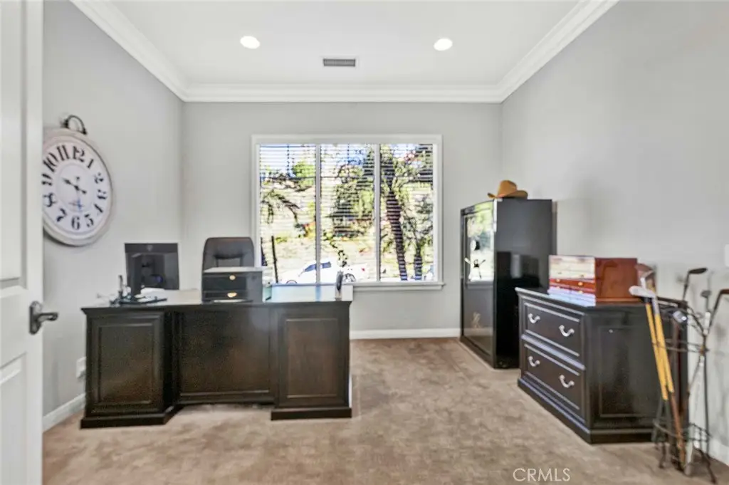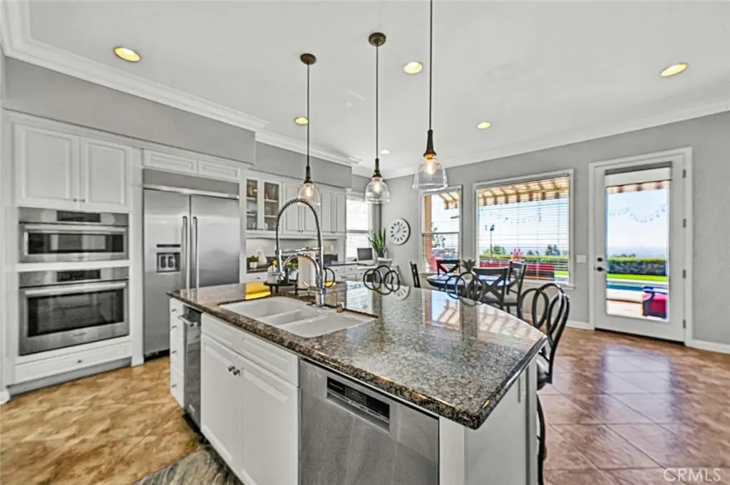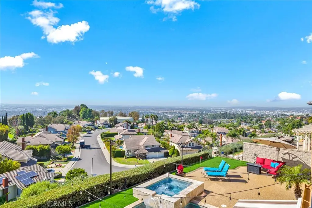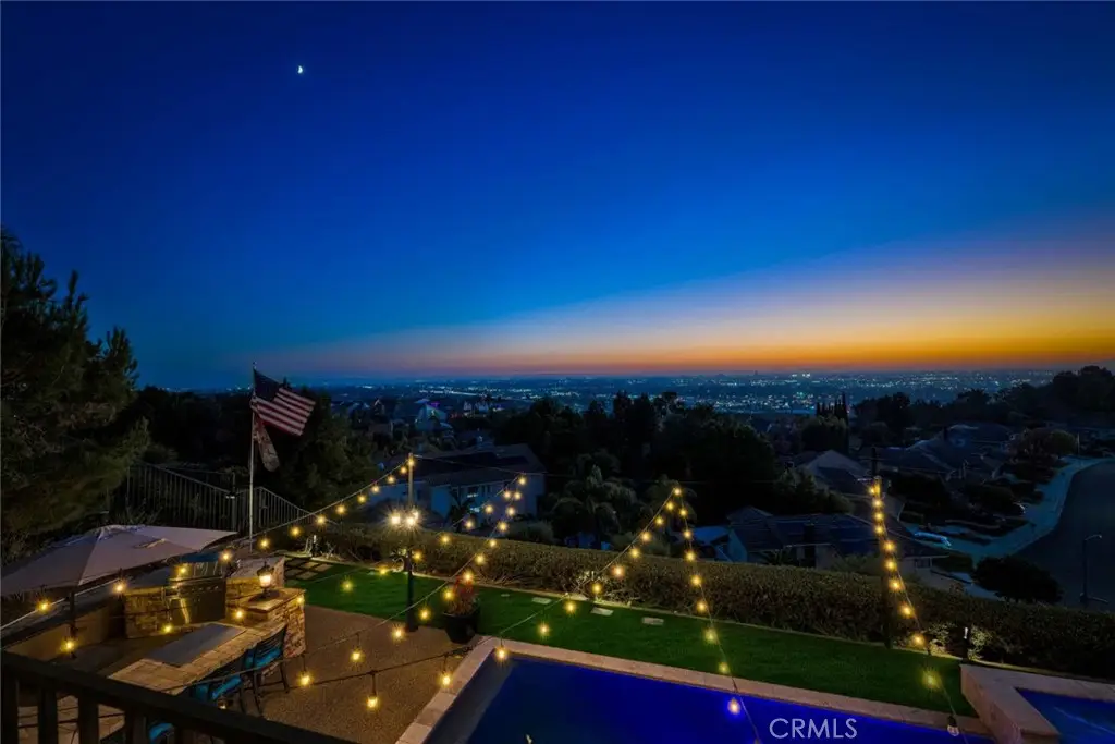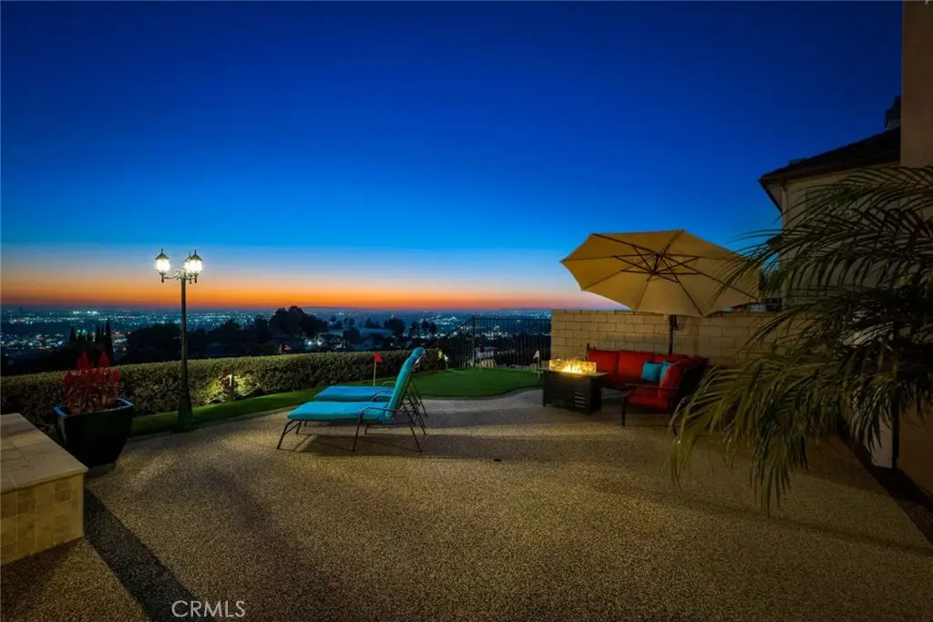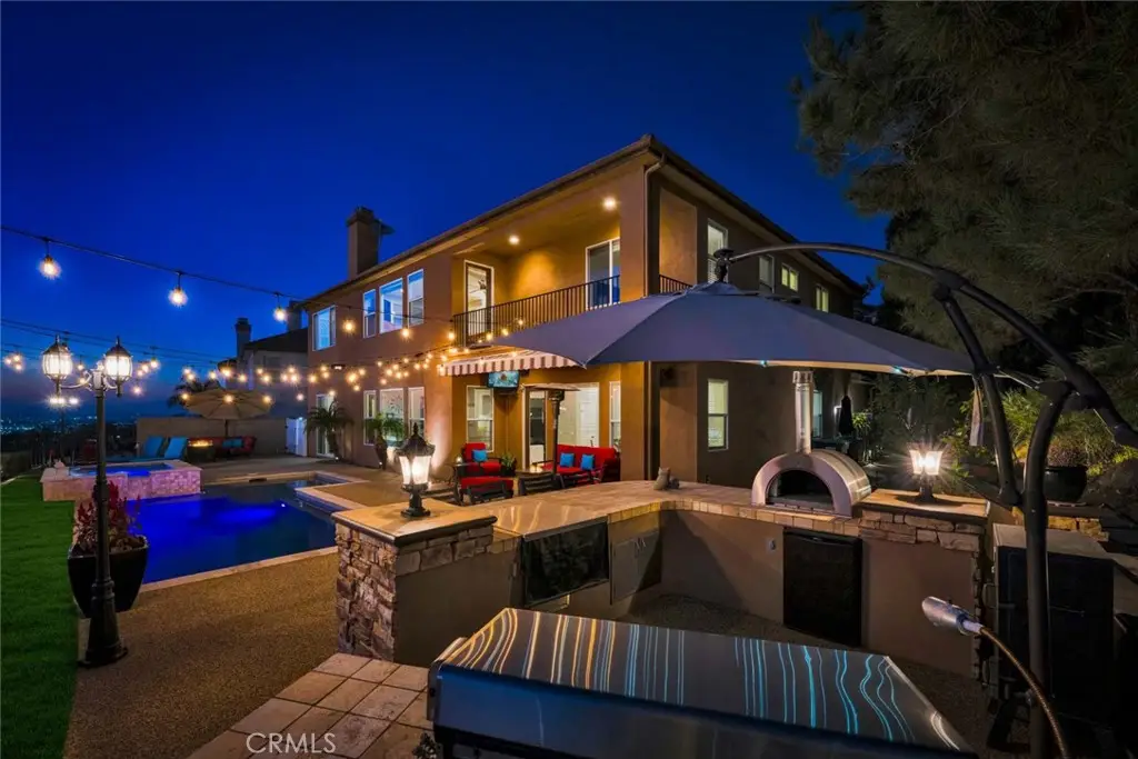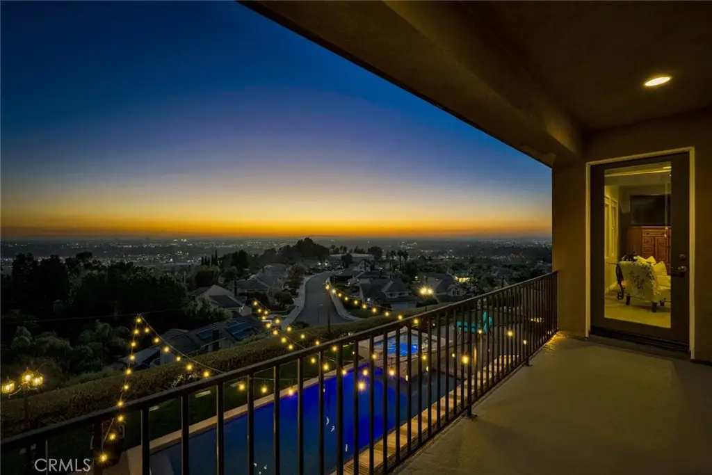 Imagine standing on a hill in Orange County with the entire OC basin laid out at your feet.By day you can see all of the landmarks-Disneyland,the Honda Center, Angels Stadium and more, and on a clear day, you can see Catalina Island and all the way to LA. The show starts when the sun sets and you're treated to magnificent works of art on the horizon.After sunset, the city lights start to shine and sparkle like jewels in a treasure chest. Now imagine this hill is in your own backyard! You enjoy this breathtaking view from the pool and spa, from the outdoor kitchen with barbecue, hibachi grill, pizza oven, refrigerator and bar seating for your friends & family.There are outdoor living areas under the awning and on the corner patio and there's even a putting green, all with a breathtaking view! Your private paradise also includes a magnificent,sprawling 4,345 square foot home! You traverse the hill and arrive at a gated enclave of incredible homes. When arriving at the home, you notice the meticulously manicured landscaping leading to a secluded porch and custom leaded glass double entry doors and a lovely fountain.They open to an elegant foyer with soaring 2 story ceilings and a gorgeous chandelier.To the right is the formal living room with elegant fireplace and the adjacent home office accessed through double doors from the living room or a separate entry door off the front porch.To the left is a formal dining room with ample space for large gatherings.A butler's pantry leads to a gourmet kitchen and breakfast room, both creating a great room with the family room with fireplace.Beyond the family room is an ensuite bedroom with private bath and access to the back and side yards.Rounding out the first floor is a powder room,walk-in pantry & laundry room.Upstairs,the staircase splits with the right side leading to the elegant owner's suite that takes in the magnificent view from indoors or a large balcony.There are 2 huge walk-in closets,an opulent spa style bath with jetted tub and separate shower & an exercise niche.Up the left staircase,there's a bonus room with limitless uses and access to the front balcony.The spacious secondary bedrooms all have big closets and consist of an ensuite bedroom with private bath and a pair of Jack 'n Jill bedrooms that share a bath.There are far too many wonderful things to say and list about this fabulous home.You really need to see it and experience it.Once you do that, you'll never want to leave! Come make it yours!