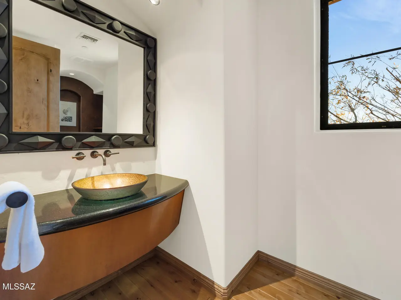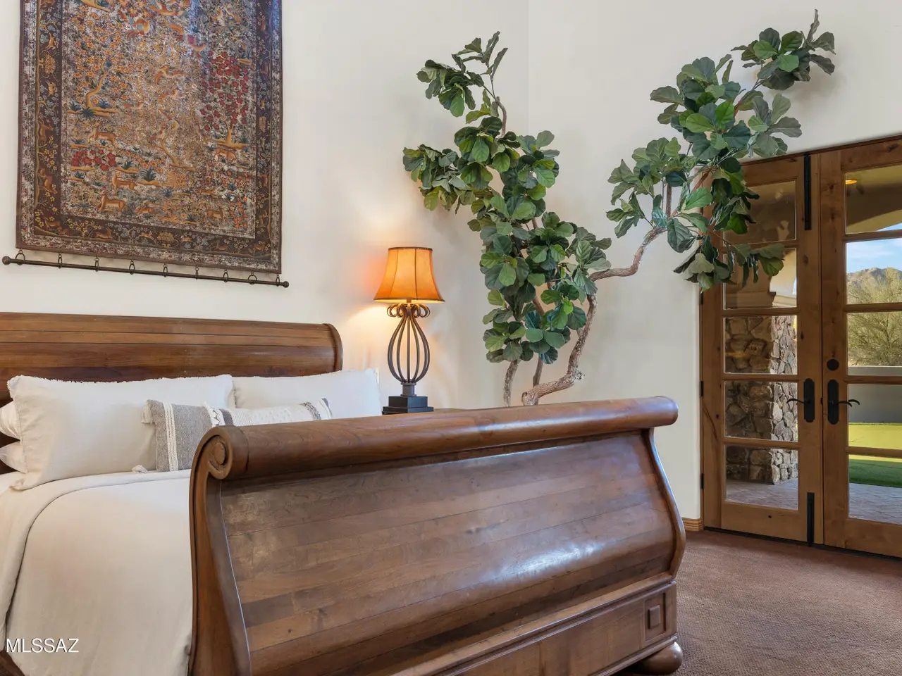 Enduring Mediterranean influence by RB Construction, solid masonry construction for unmatched durability and timeless architecture. 4,484 sq ft of grand scale living space, this home presents a unique tranquil interior courtyard complete with a soothing spa and expansive paneled windows that frame the space beautifully. Adding to its appeal, the property is situated adjacent to 26 acres of pristine conservation easement, ensuring a serene natural backdrop and enhanced privacy. Upon entering, you're greeted by a striking wood-beamed foyer that seamlessly transitions into a sophisticated kitchen featuring black granite countertops, a prep sink, large island with a built-in dining area overlooking the patio.