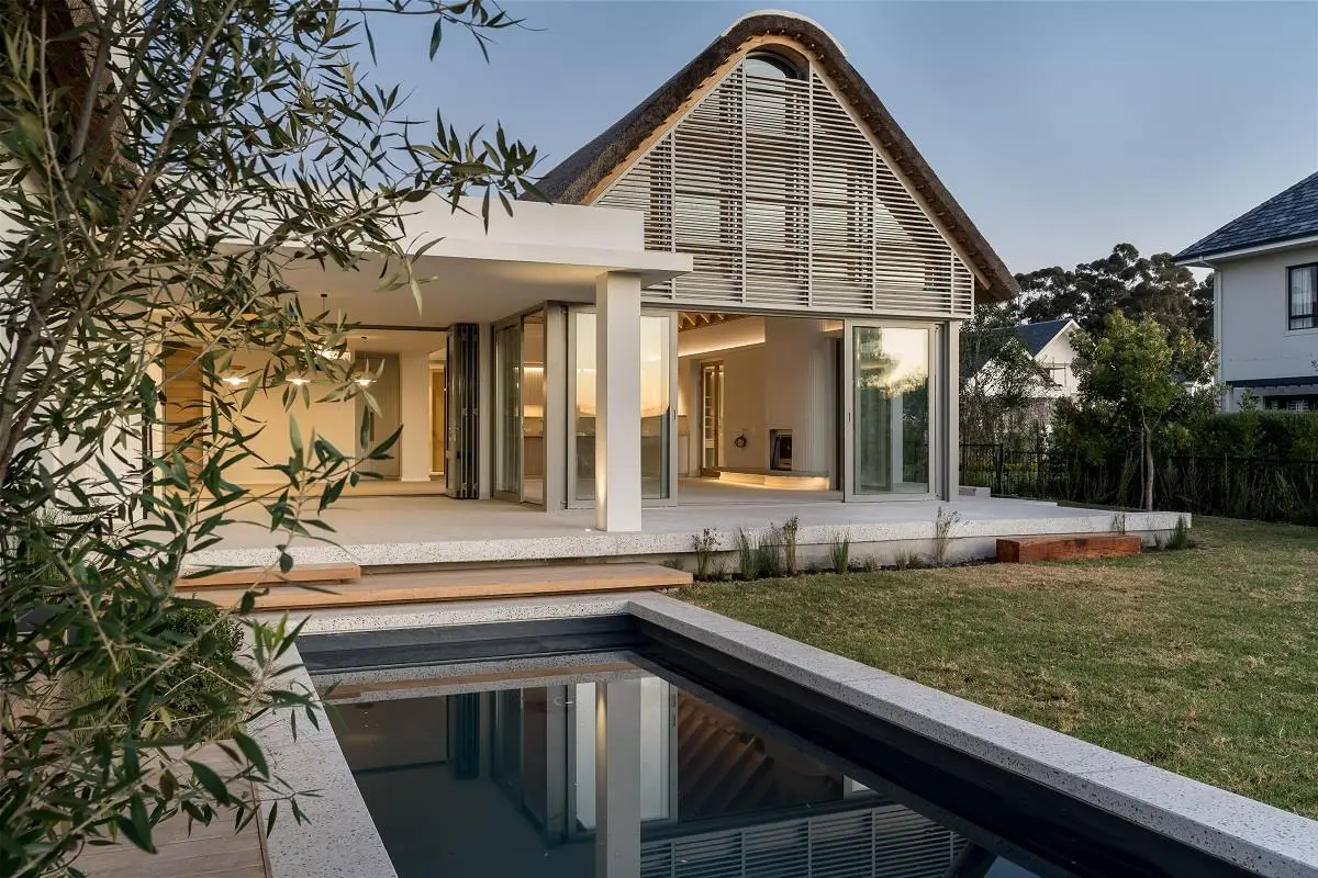 EXCLUSIVE DUAL MANDATE We are delighted to list this cleverly designed North-facing single level home on Pearl Valley Golf & Country Estate. The property has a visually unique appeal that blends modern features with the comfort of a more traditional feel. The functional and practical layout is perfect for family living and entertaining with the large entertainment areas, open plan to the kitchen, flowing out to the covered patio with its built in braai, a large heated pool and a sun filled North facing garden. One wing of the home is comprised of 4 bedrooms, all en-suite, with an additional 5th above the garage and with its own separate entrance - ideal for visitors or staff. Two of the bedrooms in the family wing are loft style with clever usage of the space above the bathrooms for a study or play area - perfect spaces for children. There are many added features such as the eye catching exposed poplar beams which decorate the interior roof detail and are an attractive focus point throughout, the roof height glass door and windows on the North side of the property bringing in light, a full solar PV system, an impressive heat pump and underfloor heating system throughout, ceiling fans, a motorised retractable pool cover and much more. A truly beautiful home.