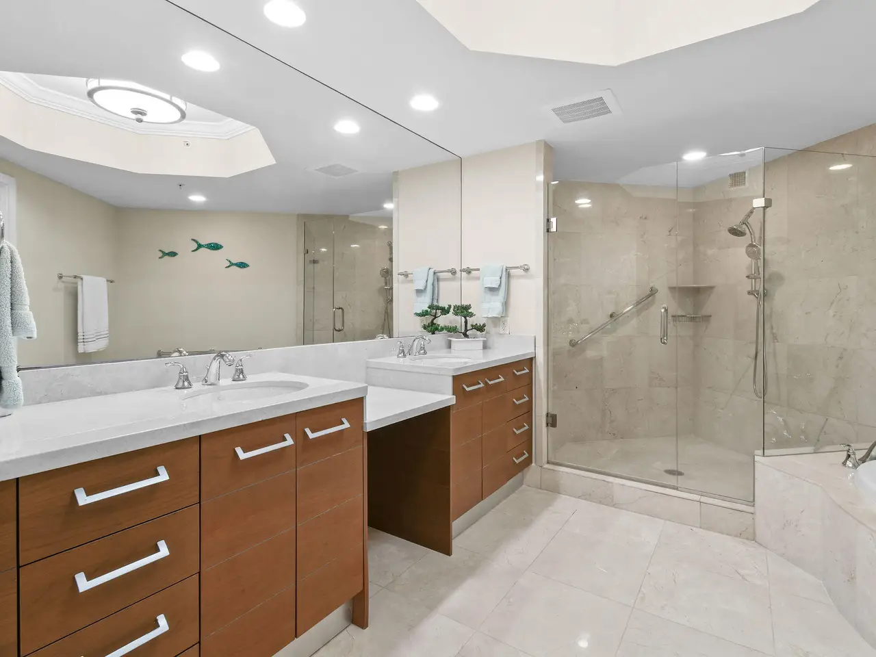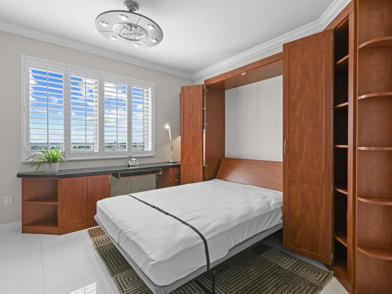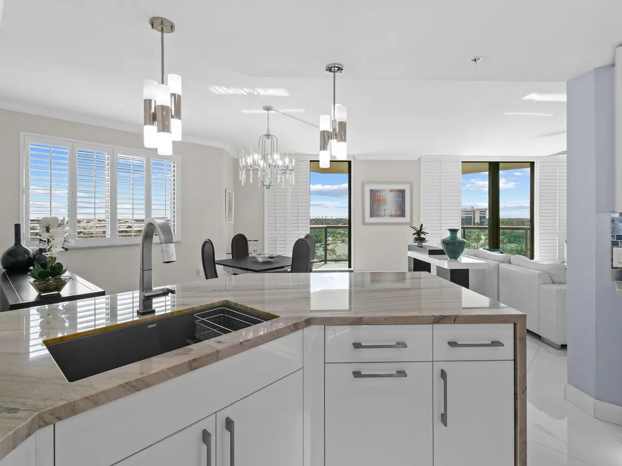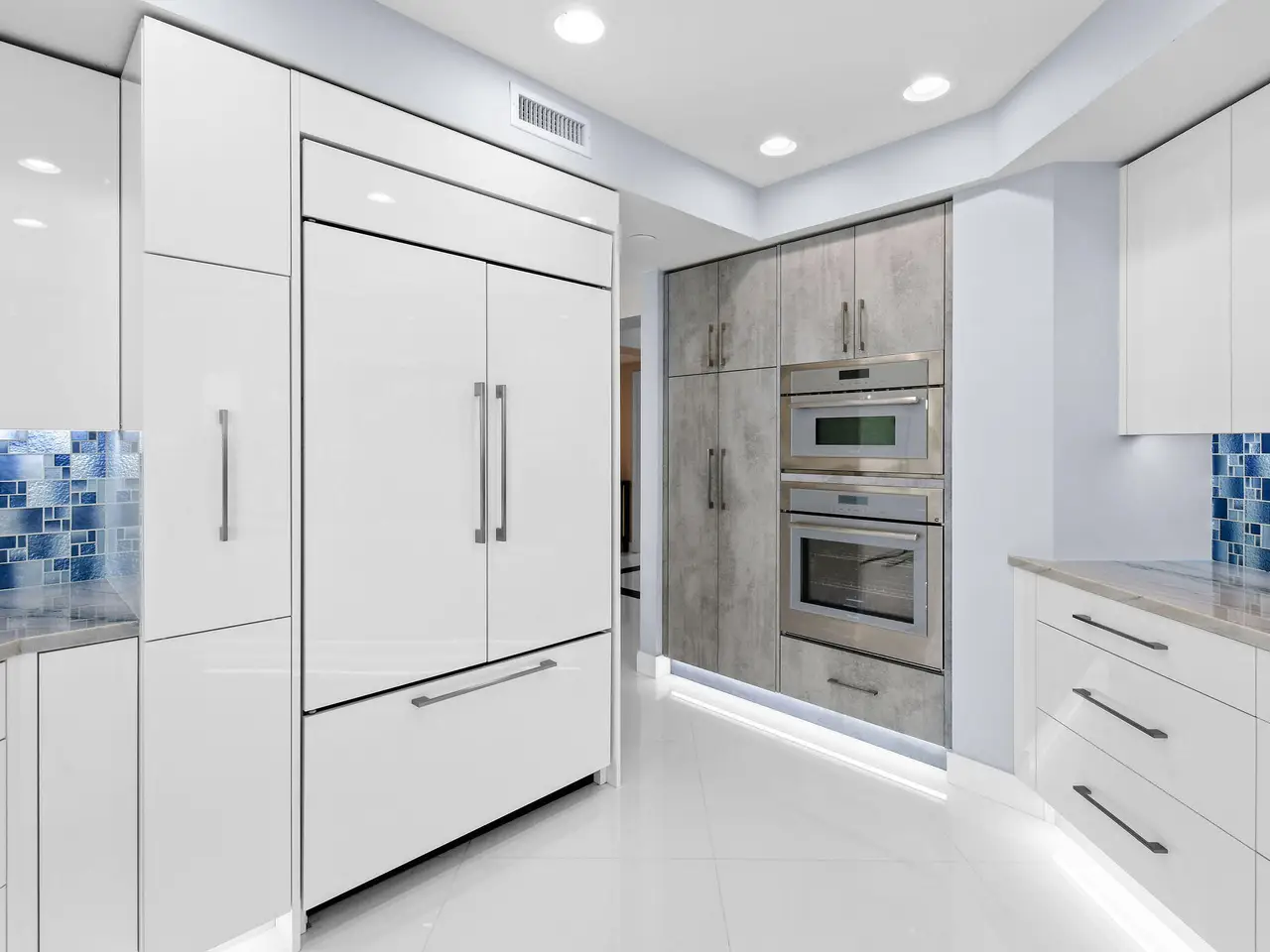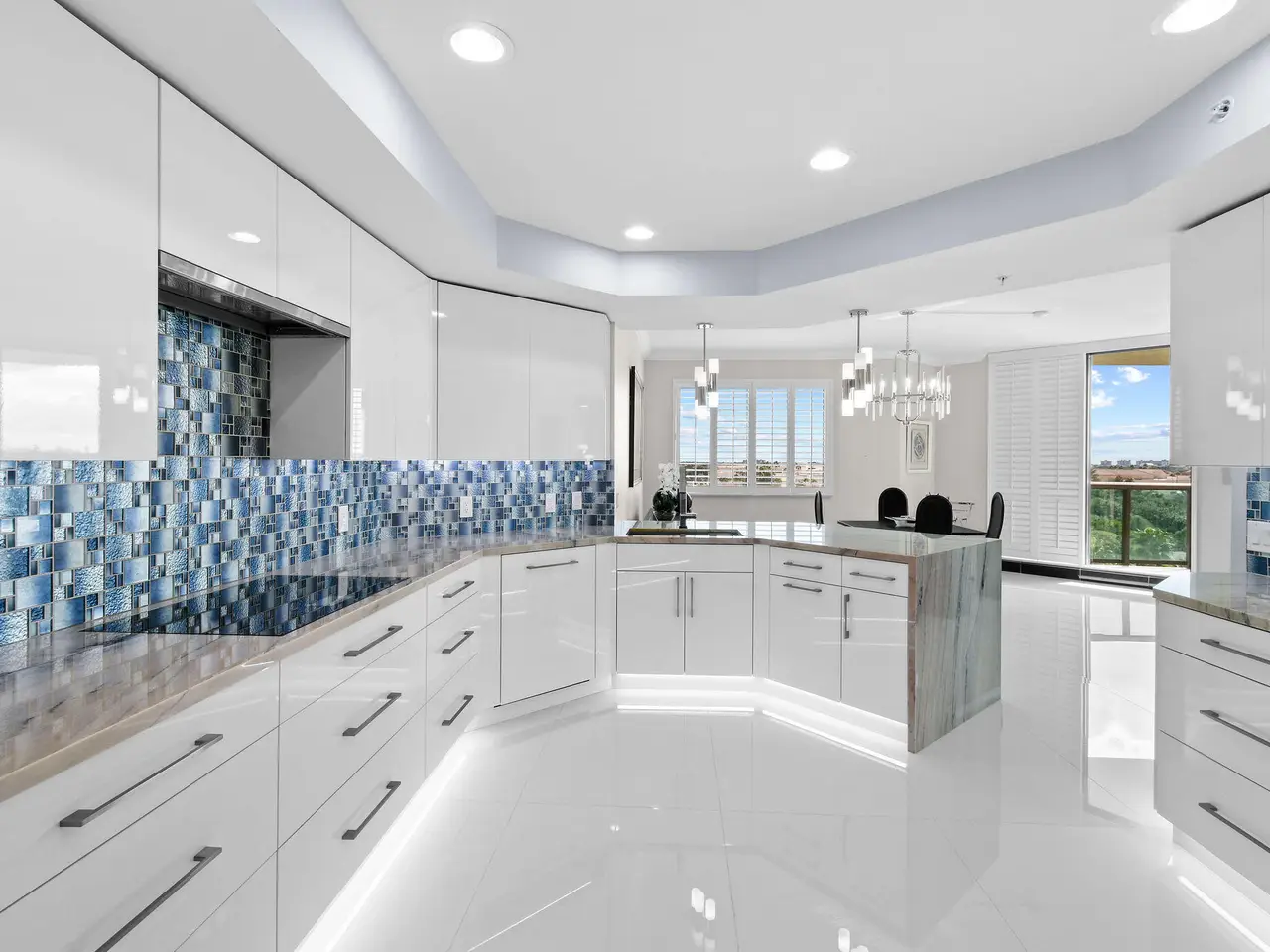 Luxury abounds in this stunning, meticulously upgraded condo at The Landmark at the Gardens that is very financially strong with superior reserves! The spectacular kitchen--fully redesigned by Waterview Kitchens--features custom high-end cabinets & appliances including: Thermador paneled dishwasher & 42'' Sub-Zero refrigerator, Thermador Masterpiece oven & matching speed oven, Thermador induction cooktop, vented hood, spice drawer + countless additional custom touches. Interior enhancements include 30'' diagonal porcelain tile, plantation shutters, impact windows & doors, crown molding, solid-core doors, & modern lighting & fans. The primary bath is a serene retreat w/ a jetted tub, double vanity, Toto Neorest toilet & marble tile. The home also offers 2 new Bosch A/C units w/
