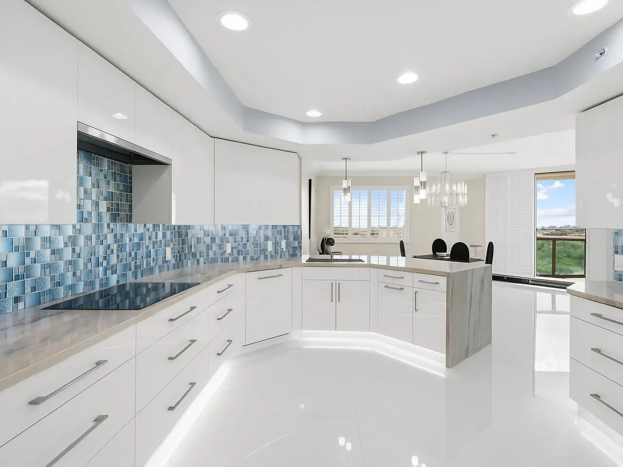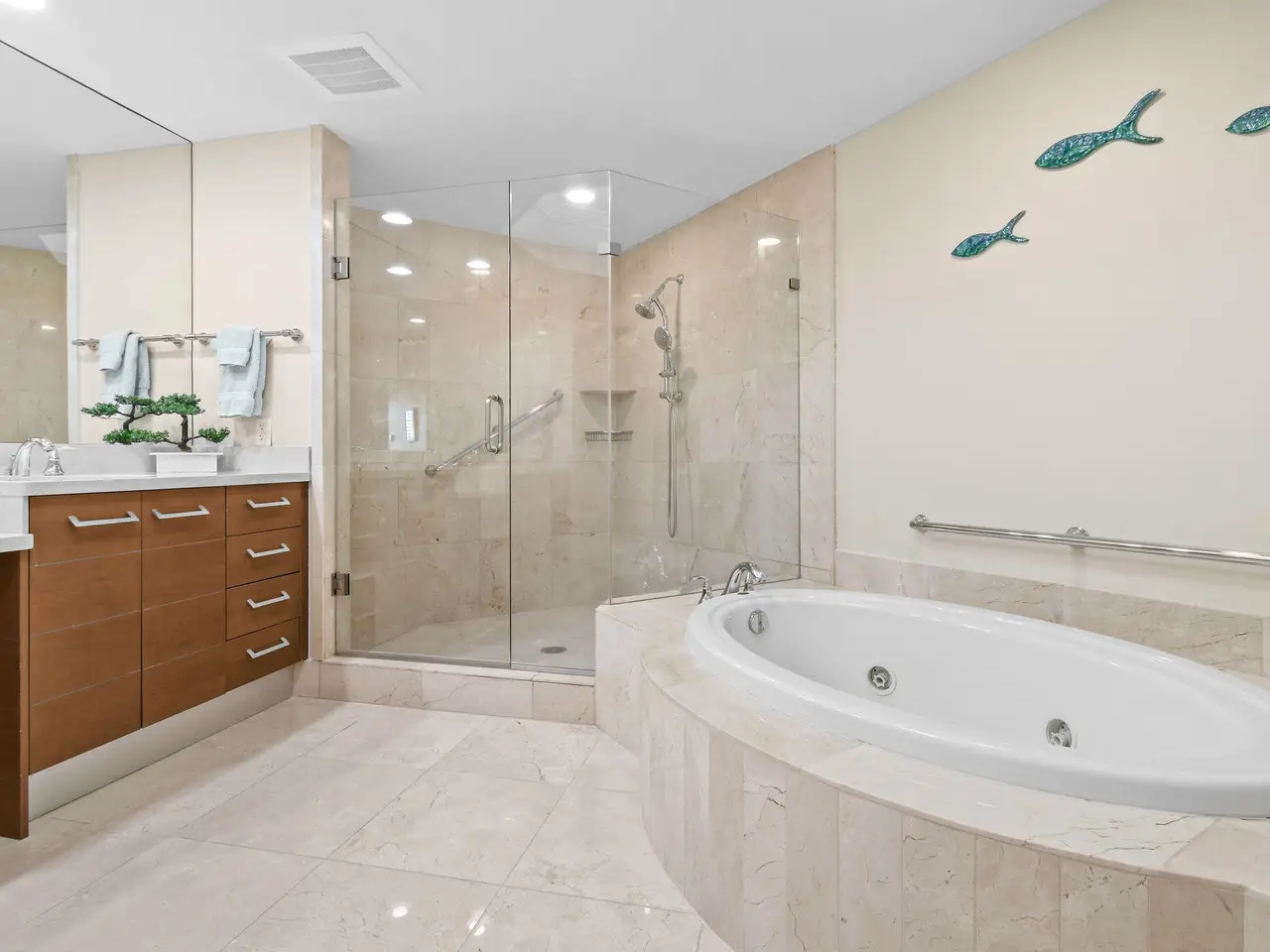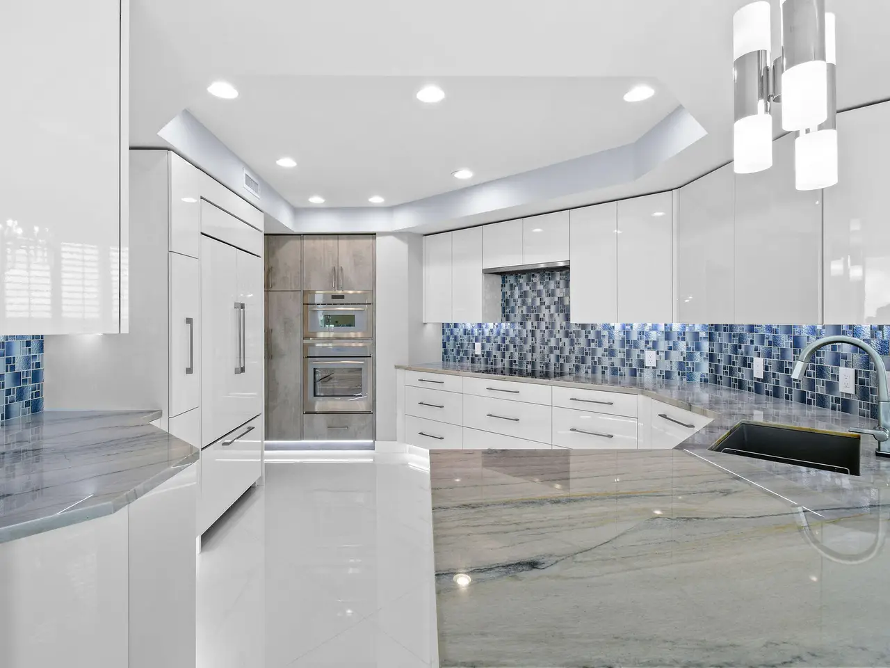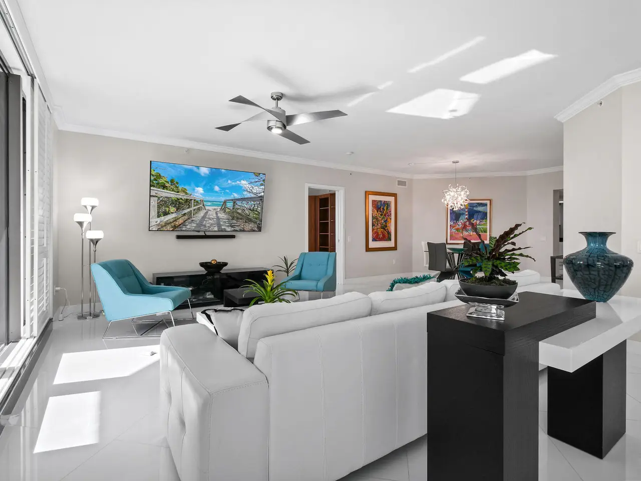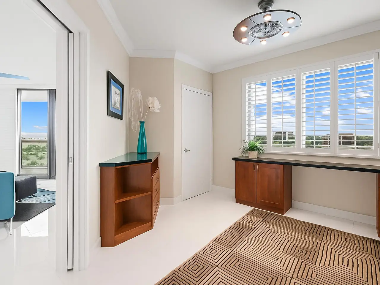 Luxury abounds in this stunning, meticulously upgraded condo at The Landmark at the Gardens that is very financially strong with superior reserves! The spectacular kitchen--fully redesigned by Waterview Kitchens--features custom high-end cabinets & appliances including: Thermador paneled dishwasher & 42'' Sub-Zero refrigerator, Thermador Masterpiece oven & matching speed oven, Thermador induction cooktop, vented hood, spice drawer + countless additional custom touches. Interior enhancements include 30'' diagonal porcelain tile, plantation shutters, impact windows & doors, crown molding, solid-core doors, & modern lighting & fans. The primary bath is a serene retreat w/ a jetted tub, double vanity, Toto Neorest toilet & marble tile. The home also offers 2 new Bosch A/C units w/