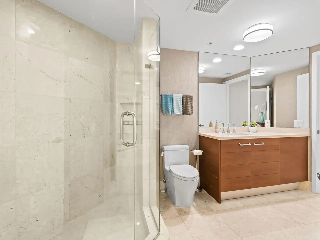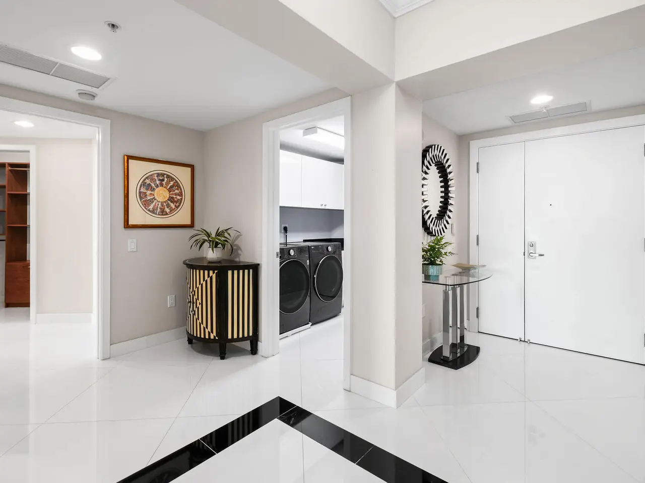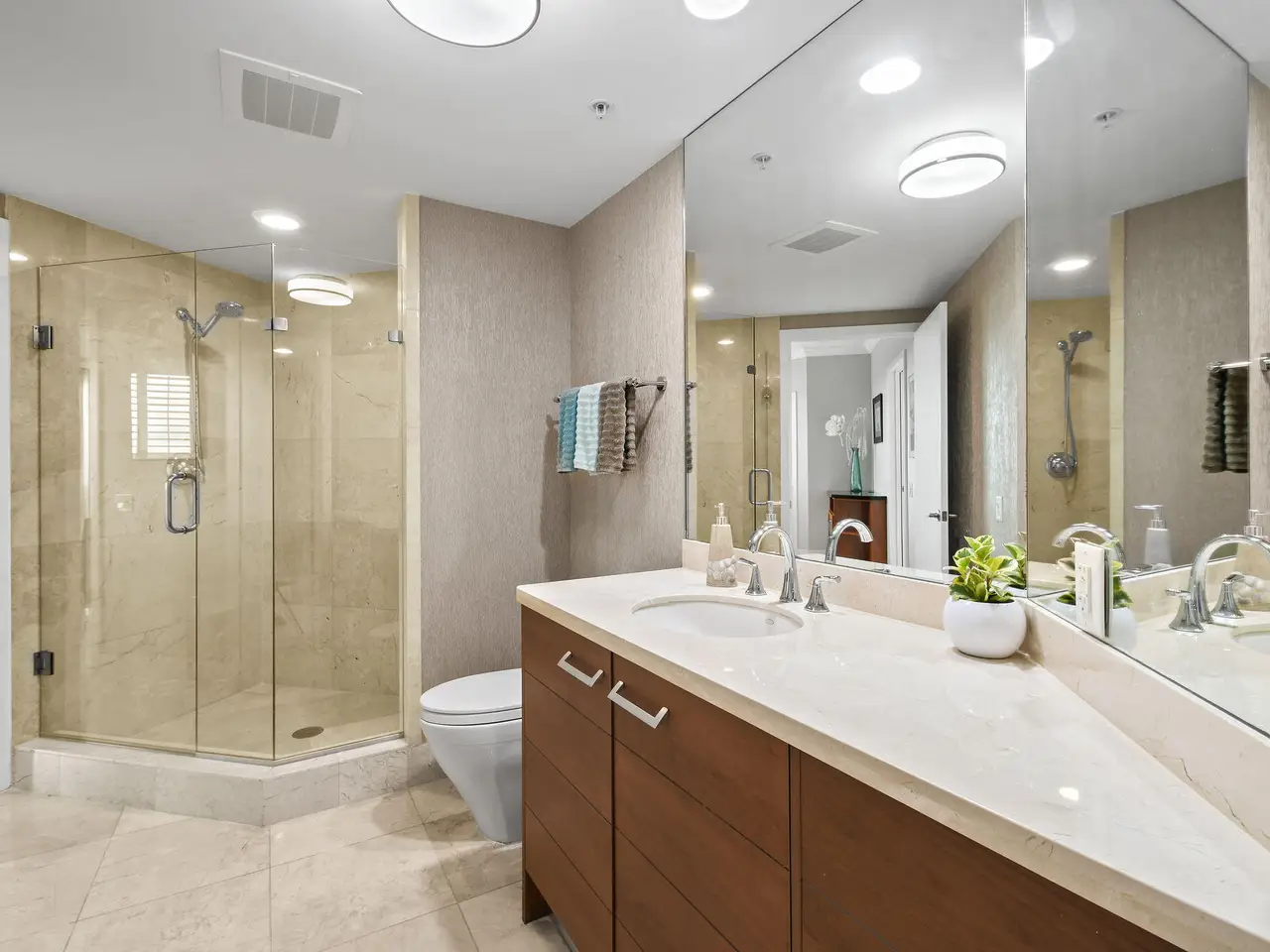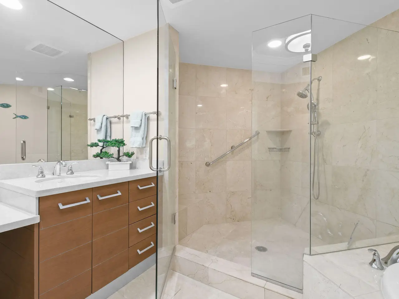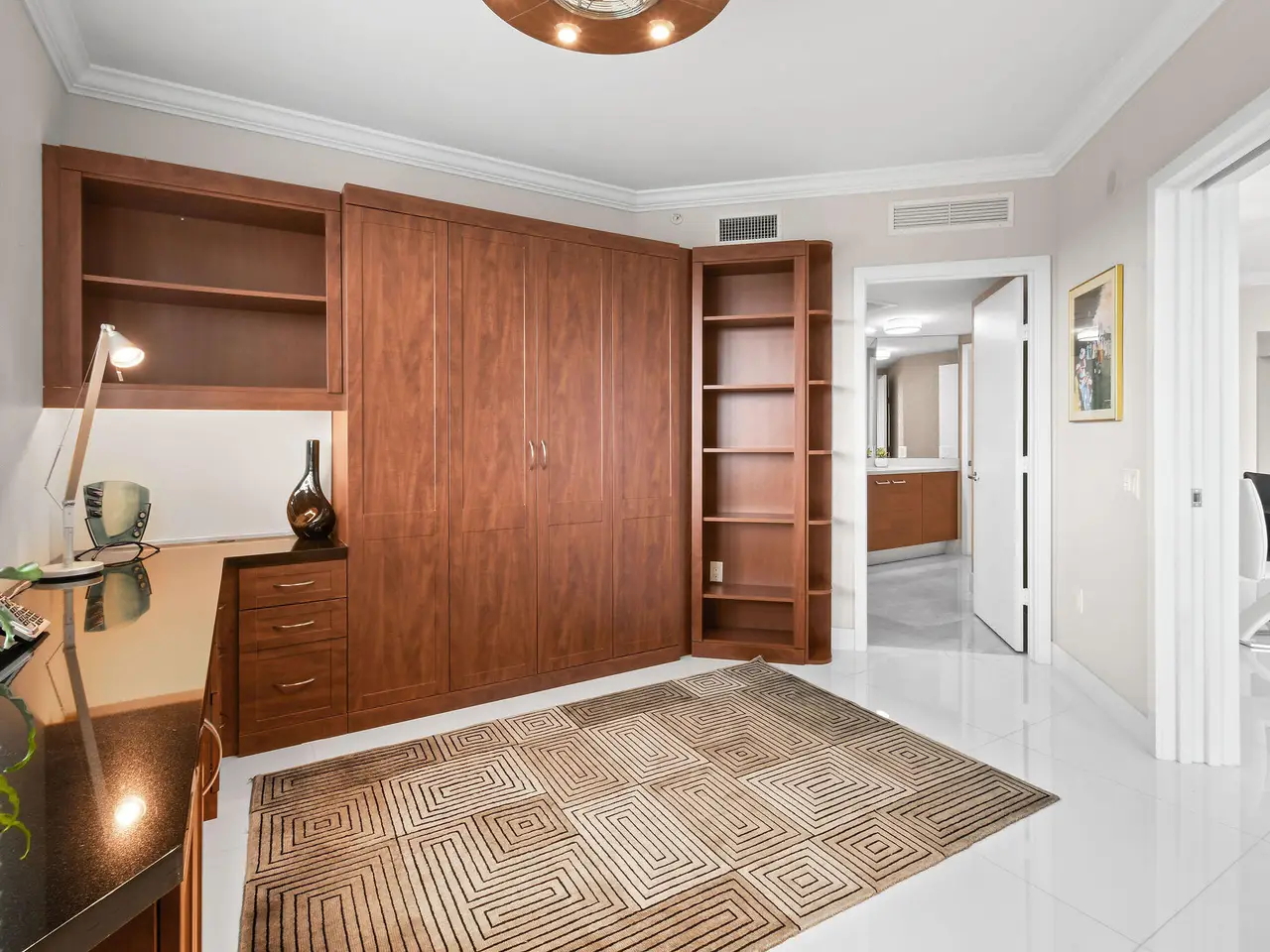 Luxury abounds in this stunning, meticulously upgraded condo at The Landmark at the Gardens that is very financially strong with superior reserves! The spectacular kitchen--fully redesigned by Waterview Kitchens--features custom high-end cabinets & appliances including: Thermador paneled dishwasher & 42'' Sub-Zero refrigerator, Thermador Masterpiece oven & matching speed oven, Thermador induction cooktop, vented hood, spice drawer + countless additional custom touches. Interior enhancements include 30'' diagonal porcelain tile, plantation shutters, impact windows & doors, crown molding, solid-core doors, & modern lighting & fans. The primary bath is a serene retreat w/ a jetted tub, double vanity, Toto Neorest toilet & marble tile. The home also offers 2 new Bosch A/C units w/