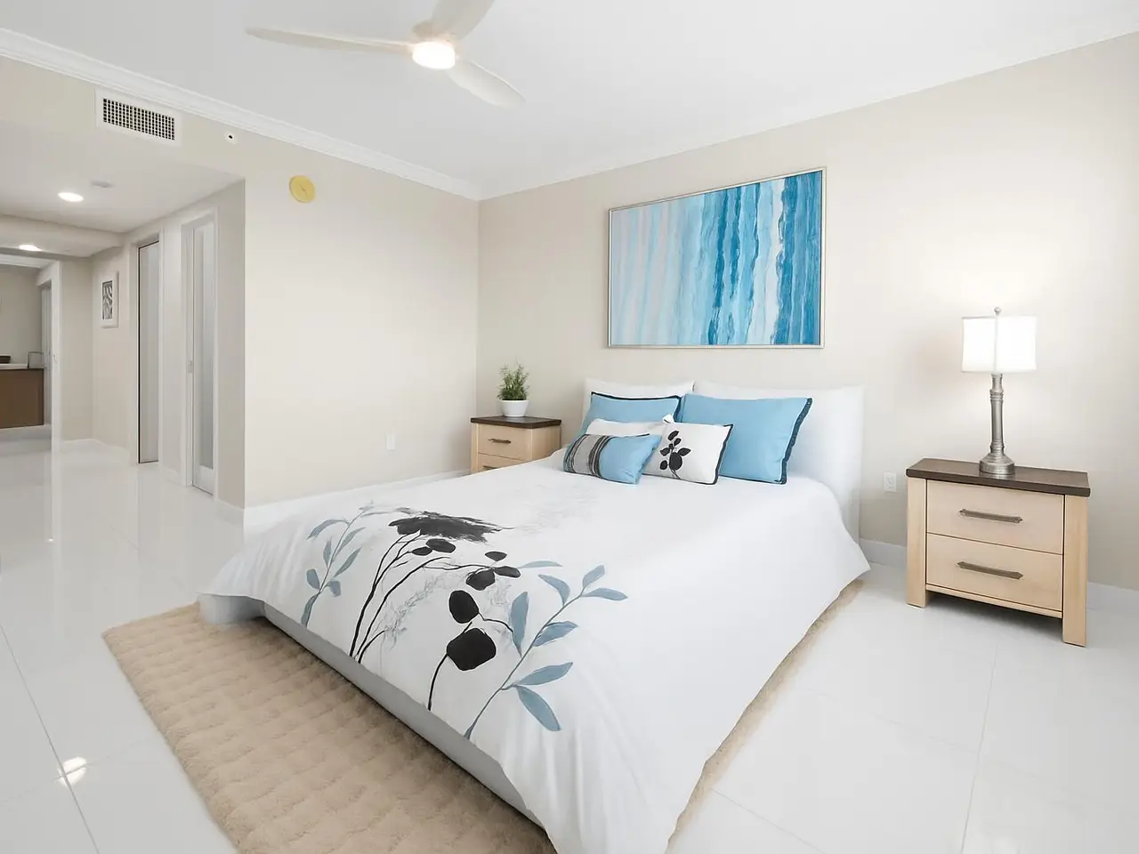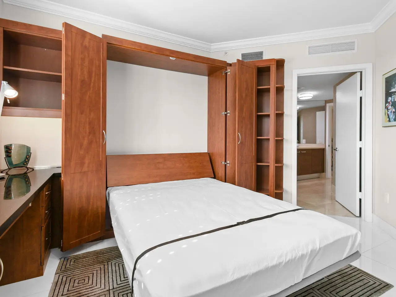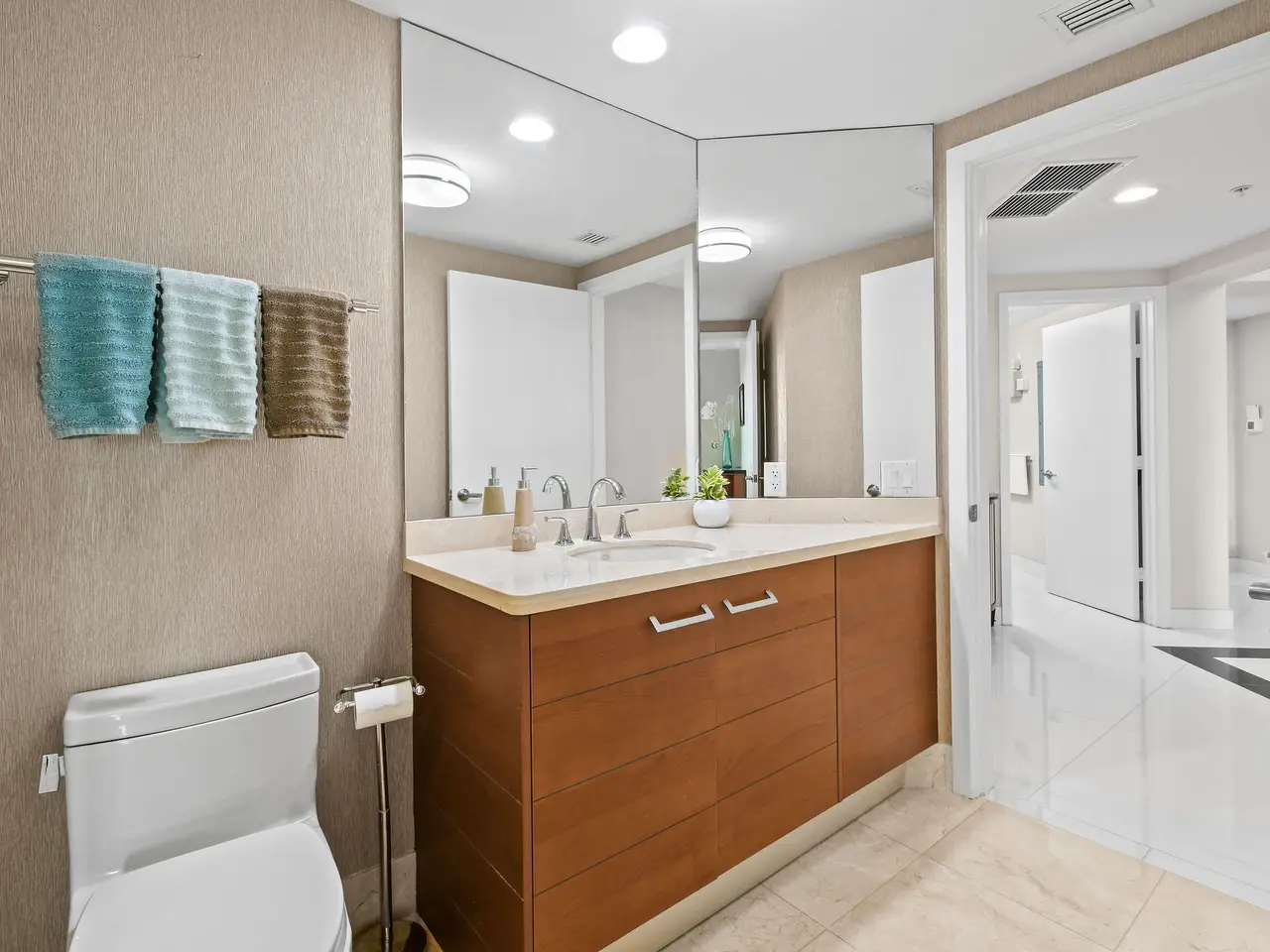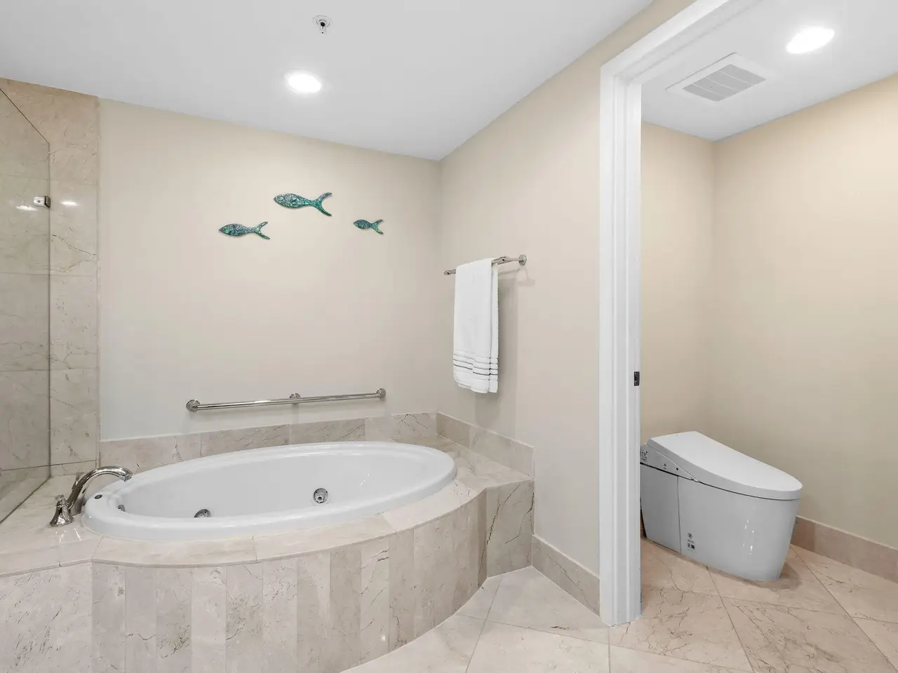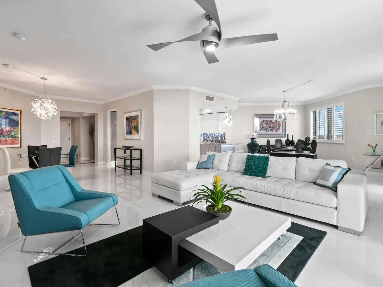 Luxury abounds in this stunning, meticulously upgraded condo at The Landmark at the Gardens that is very financially strong with superior reserves! The spectacular kitchen--fully redesigned by Waterview Kitchens--features custom high-end cabinets & appliances including: Thermador paneled dishwasher & 42'' Sub-Zero refrigerator, Thermador Masterpiece oven & matching speed oven, Thermador induction cooktop, vented hood, spice drawer + countless additional custom touches. Interior enhancements include 30'' diagonal porcelain tile, plantation shutters, impact windows & doors, crown molding, solid-core doors, & modern lighting & fans. The primary bath is a serene retreat w/ a jetted tub, double vanity, Toto Neorest toilet & marble tile. The home also offers 2 new Bosch A/C units w/