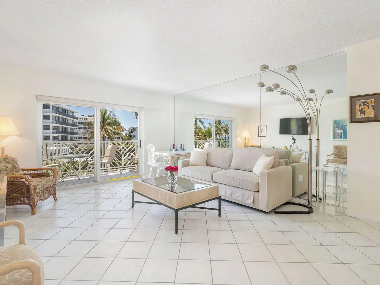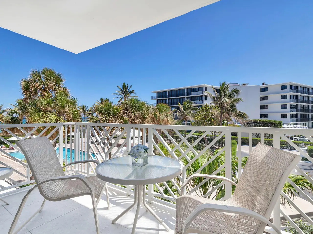 Bright and spacious one bedroom, one and one half bath apartment overlooking a lushly landscaped pool with stunning ocean views. Located in a full-service building in one of Palm Beach's most desirable locations, it features a 300 ft. private deeded beach with chairs, tables and umbrellas, a pool with resort-like amenities including changing rooms, lockers and showers and a beautiful roof top terrace.