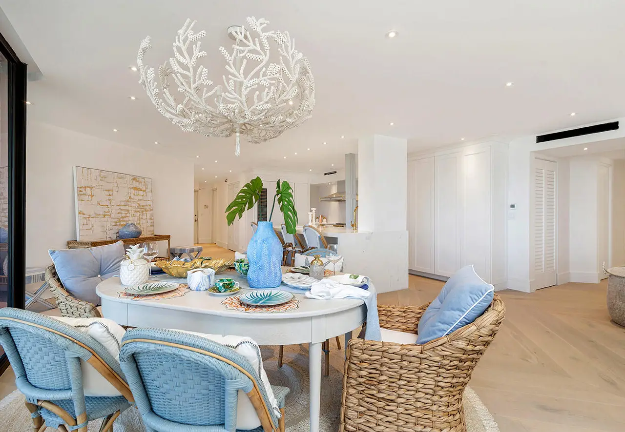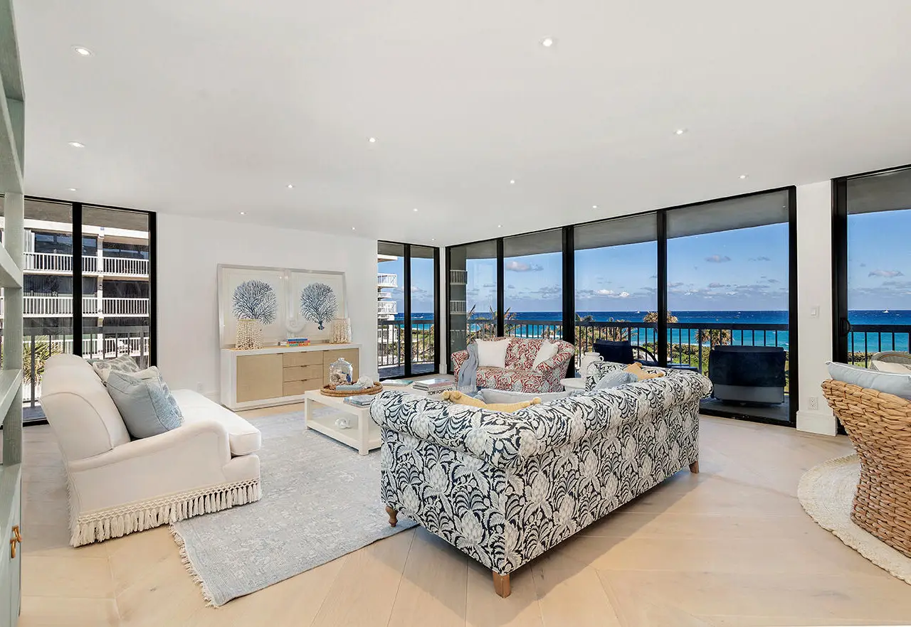 Palm Beach Oceanfront Masterpiece for Sale! Experience the epitome of luxury living in this stunning, newly renovated oceanfront apartment, completed in 2025. Designed by a top interior decorator for their own family, this beach home is a true masterpiece. Every aspect of this apartment has been meticulously curated, from the wide plank European White Oak floors in a chevron pattern to the gourmet custom-made kitchen, featuring Calacata gold marble island, Le Cornue Stove, Shawn farmer sink, and Waterworks fixtures. The kitchen also boasts a wall of Sub-Zero wine cooler, refrigerator, and freezer appliances. This apartment has undergone a complete transformation, stripped down to bare walls and rebuilt using only the healthiest materials.