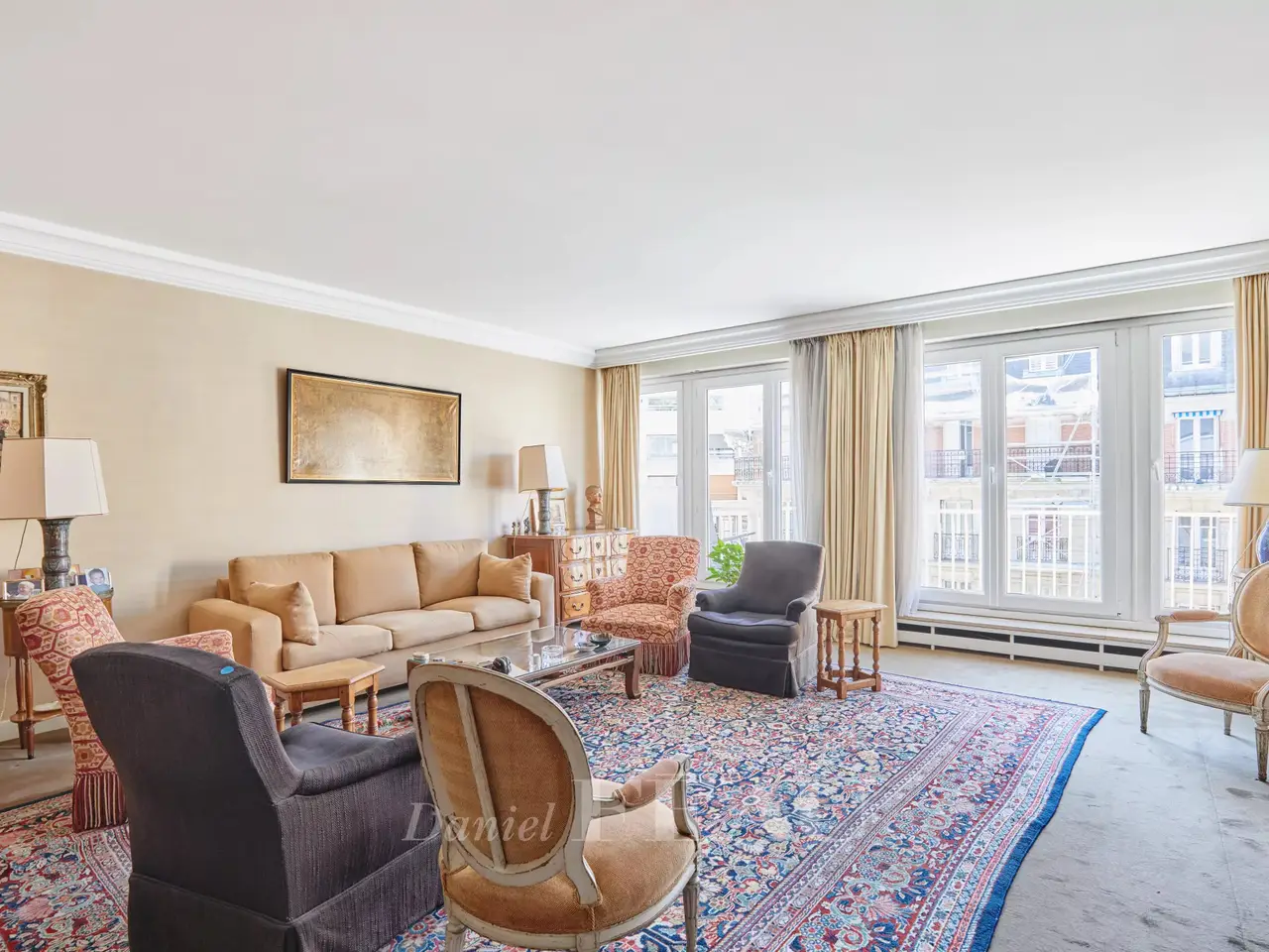 Sole Agent. Auteuil South, Exelmans neighbourhood. This bright 128 sqm family apartment is on the 6th floor of a well-maintained mid 20th century building. It includes a double living/reception room opening onto a wide continuous balcony, a dining room, a kitchen with a pantry and a utility area, three bedrooms one with a bathroom, a shower room/wc and a separate wc. The dining room could create a 4th bedroom if possible. Ample fitted storage space. With a cellar. A parking space in the building may be acquired.