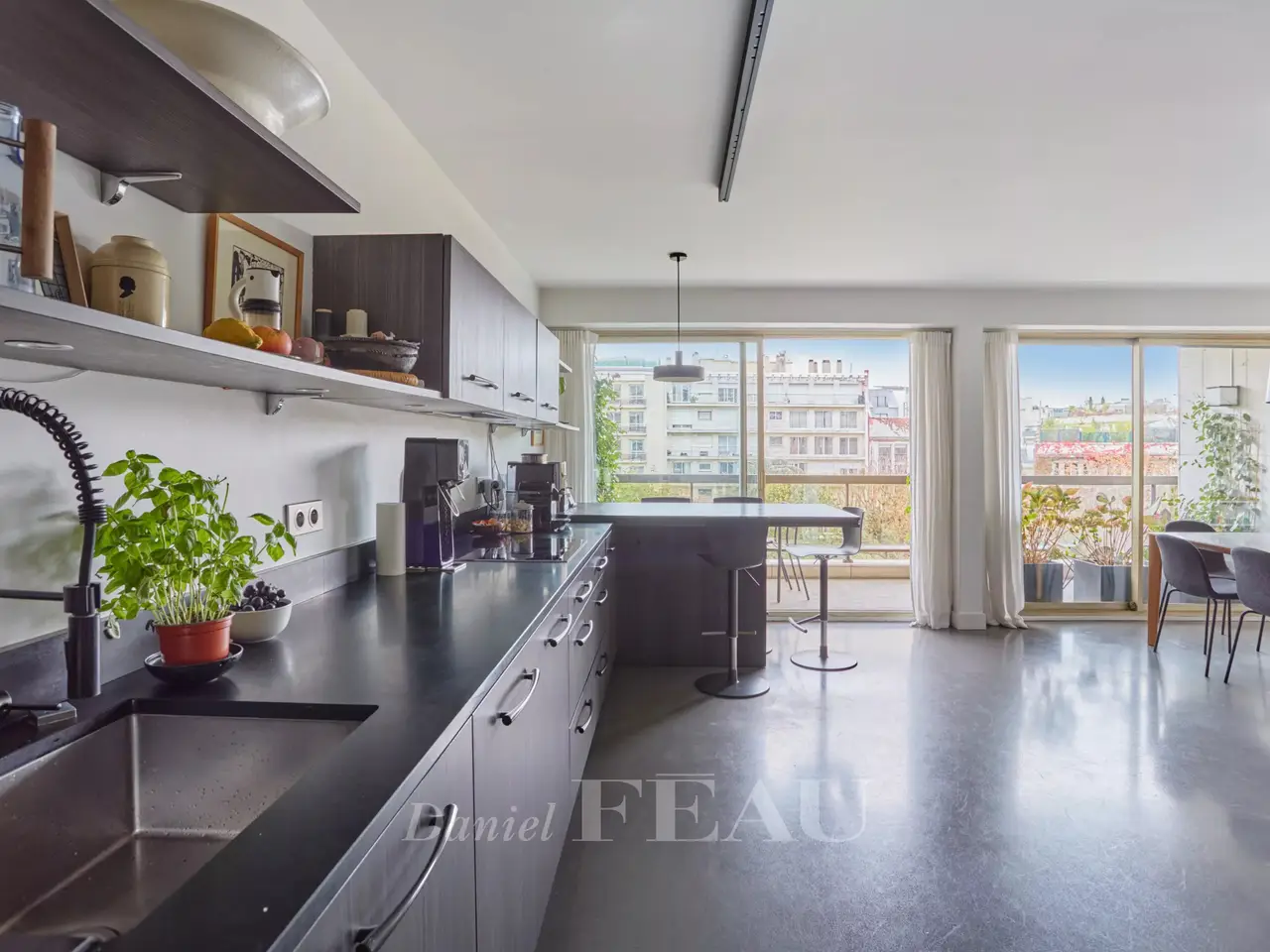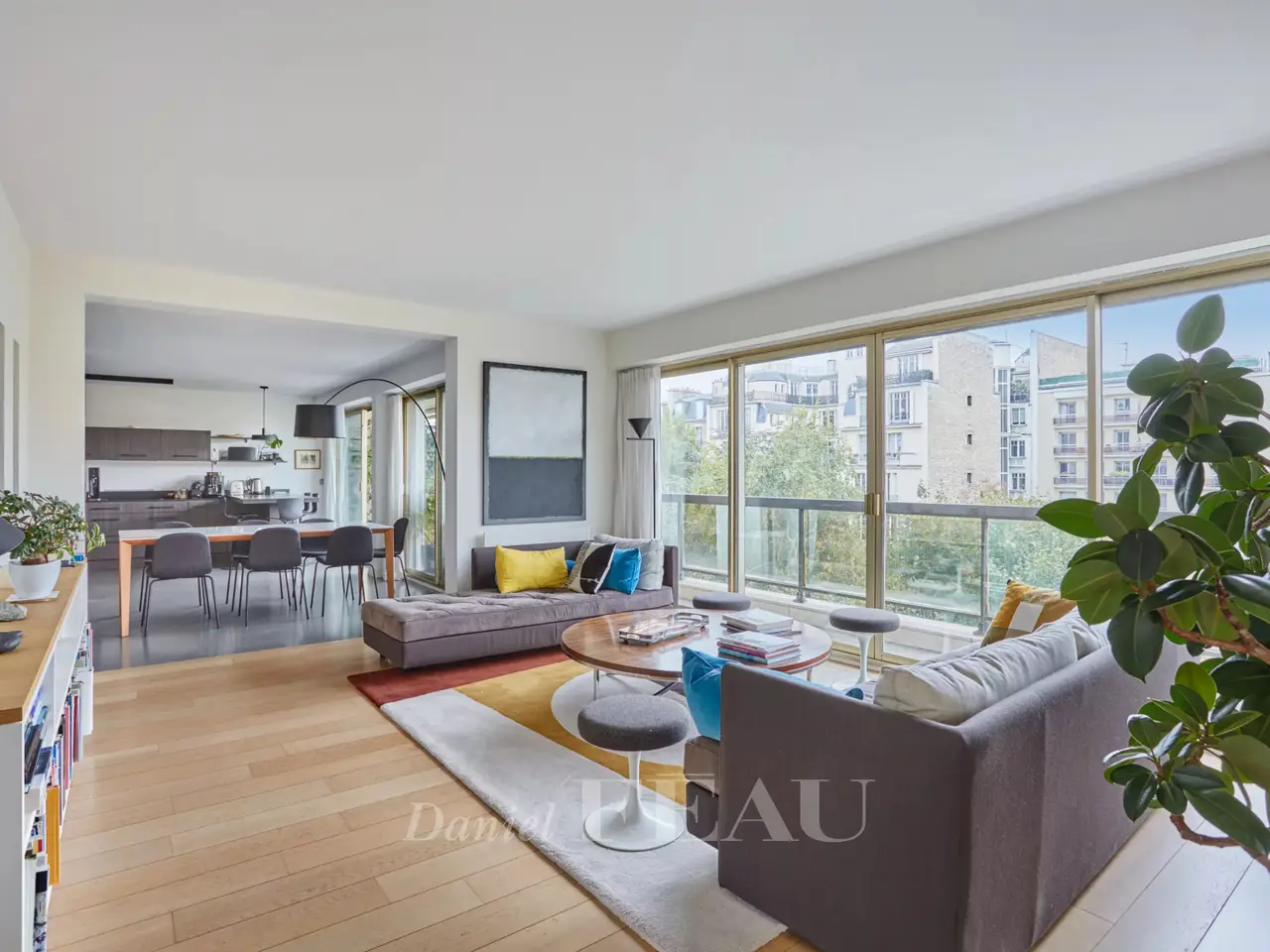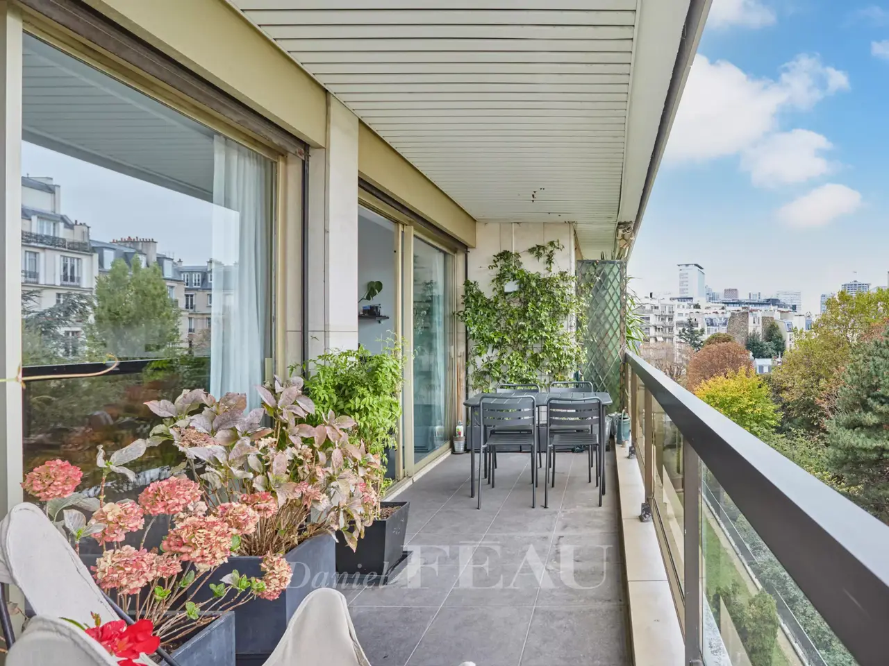 Ranelagh/Mozart neighbourhood. This 185 sqm apartment is on the 4th floor of a relatively recent building located near Avenue Mozart, the shops and Molière High School. South-facing and overlooking a garden, it includes a double living/reception room, a dining room, a kitchen with dining facilities opening onto a 31 sqm terrace, a study, a master suite with a bathroom, a dressing room and a wc, two further bedrooms sharing a shower room, and a guest wc. With a cellar. A double lock-up garage in the building may be acquired at extra cost.