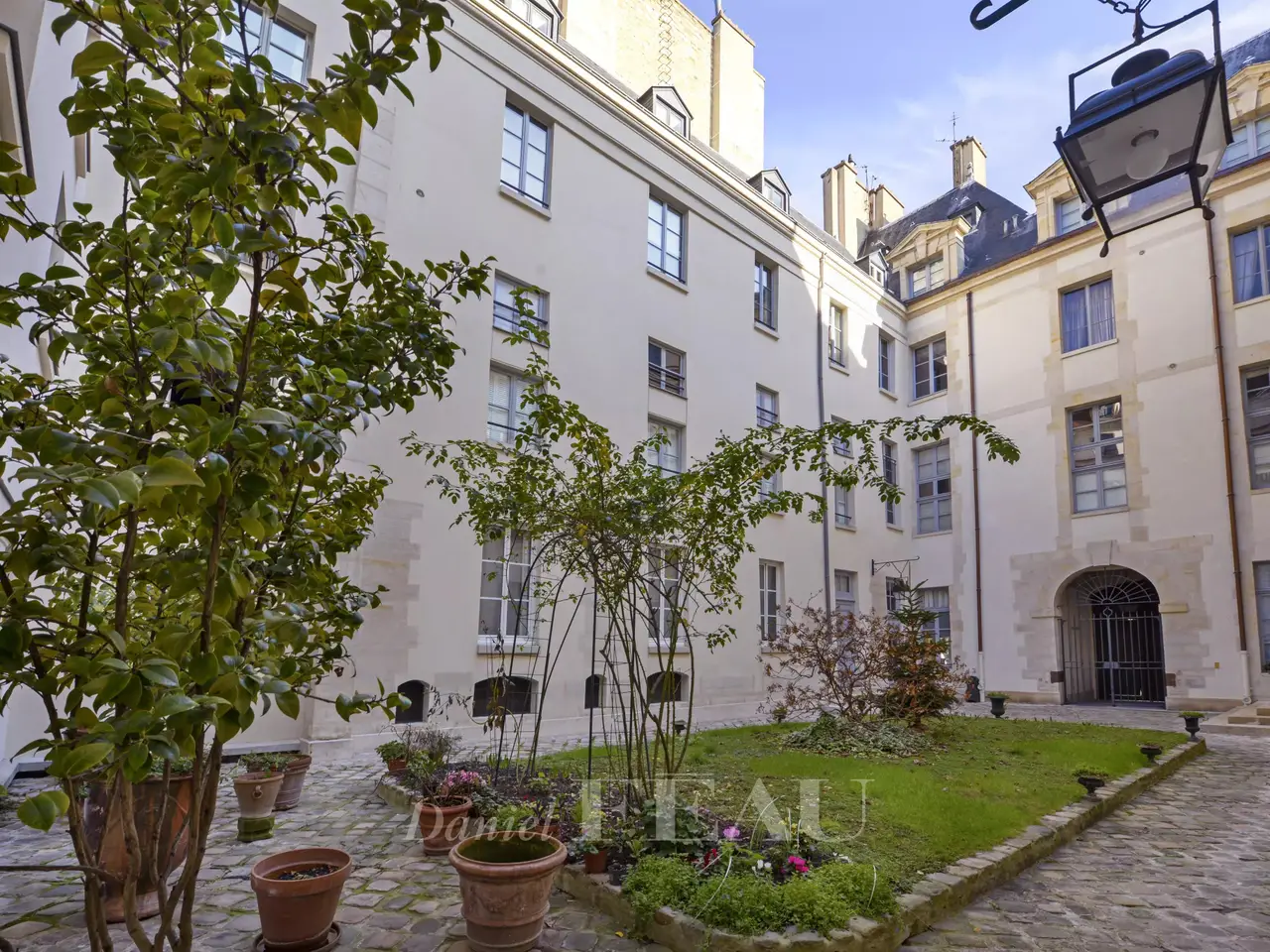 This elegant duplex apartment is on the 1st and 2nd floors of a building with a lift accessed from historic Place des Vosges. Recently renovated, it includes a bright west-facing living/reception room with a fitted and equipped open-plan kitchen, two bedrooms, a bathroom, a dressing room and two wc. A basement parking space in the building may be acquired at extra cost.