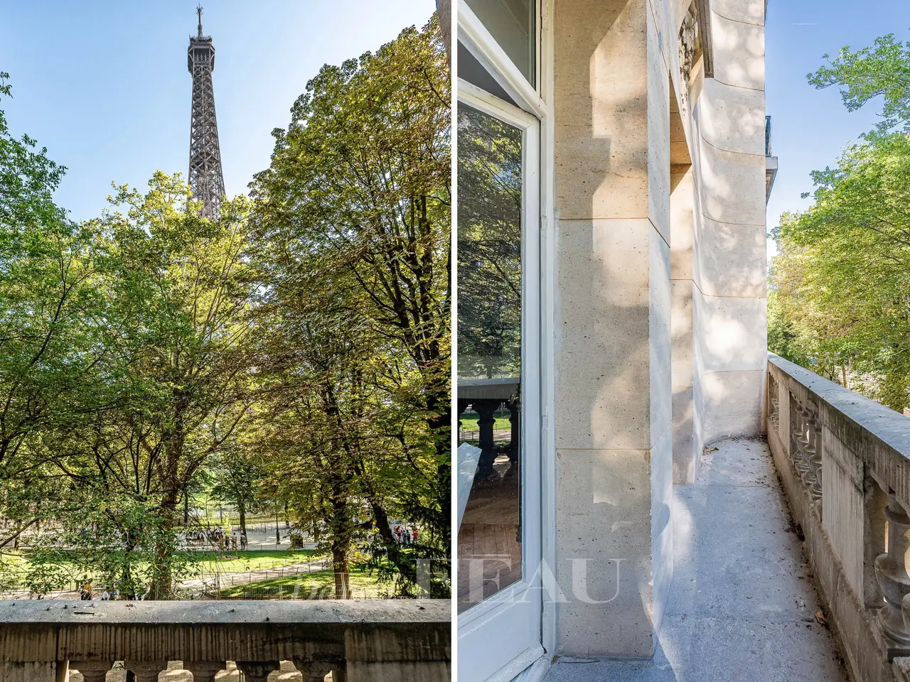 This 107 sqm apartment directly overlooking the Champ-de-Mars and the Eiffel Tower is on the 2nd floor of a superb turn-of-the-century freestone building with a lift. It includes an entry with fitted bookcases, a double living/reception room opening onto a continuous balcony, a fully equipped open-plan kitchen, two suites, and a bathroom with a wc. Ample fitted storage space. With a cellar.