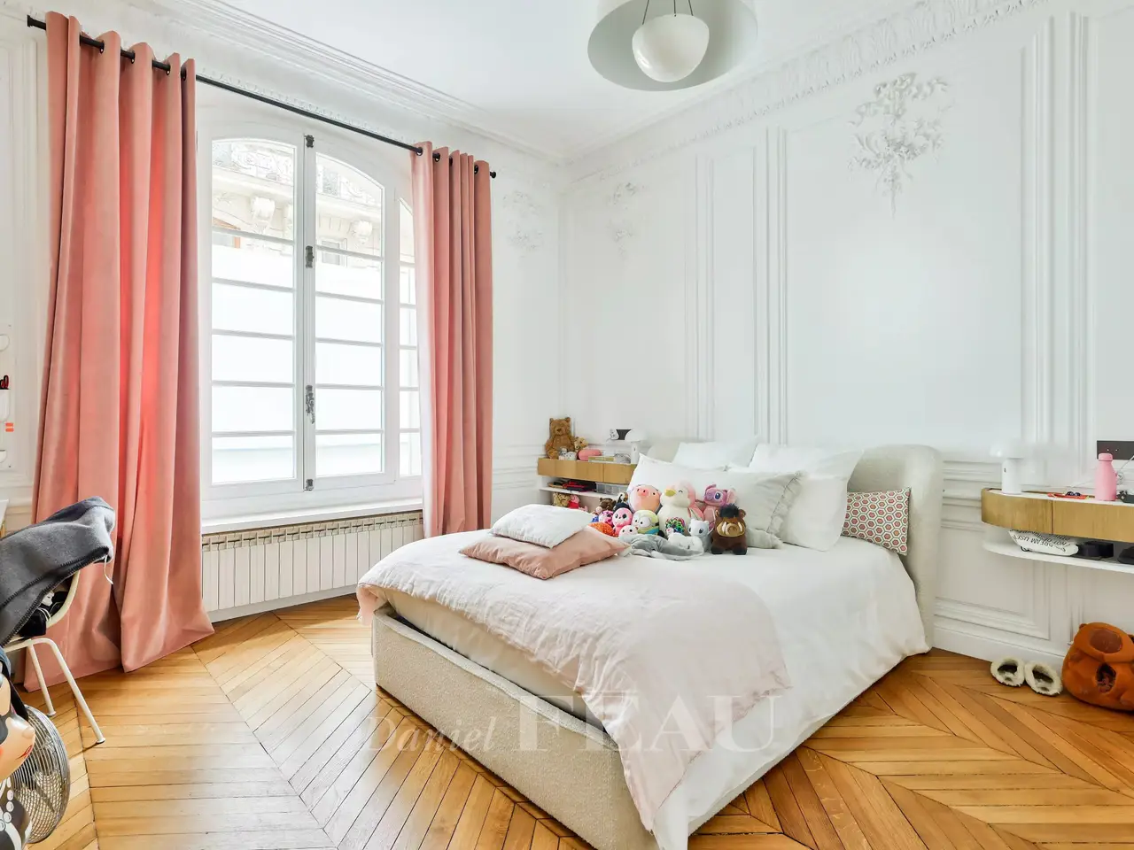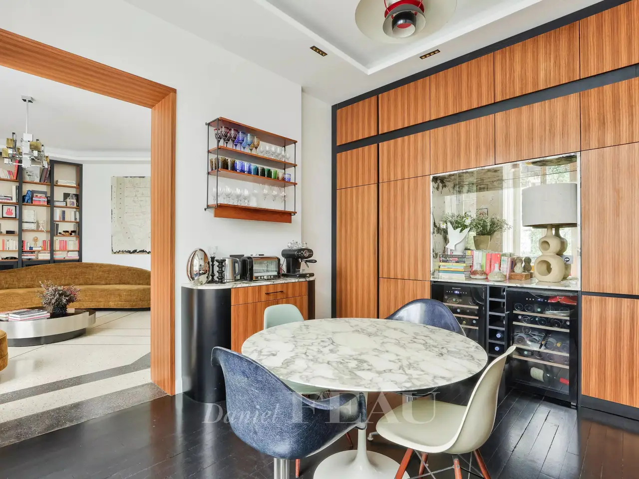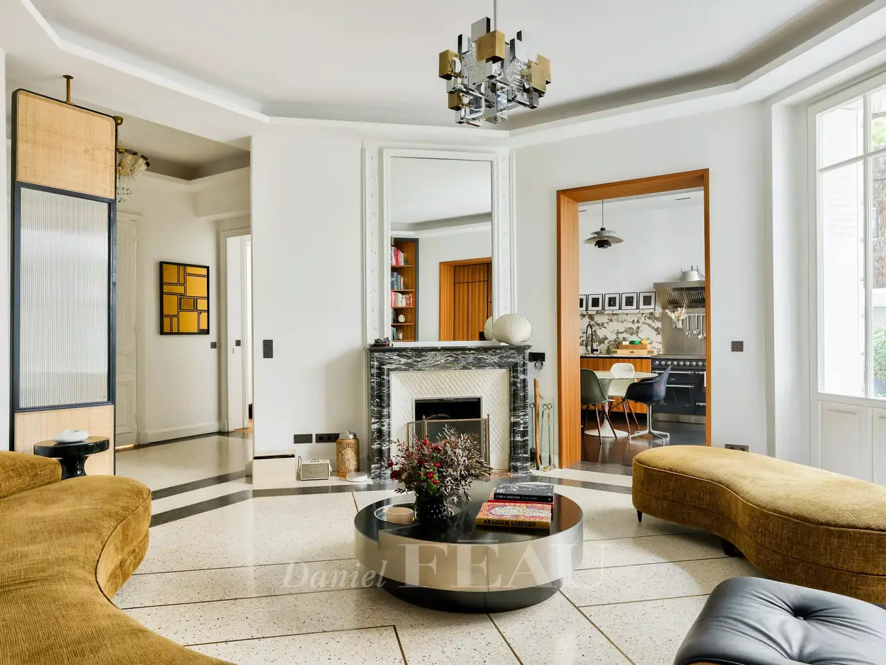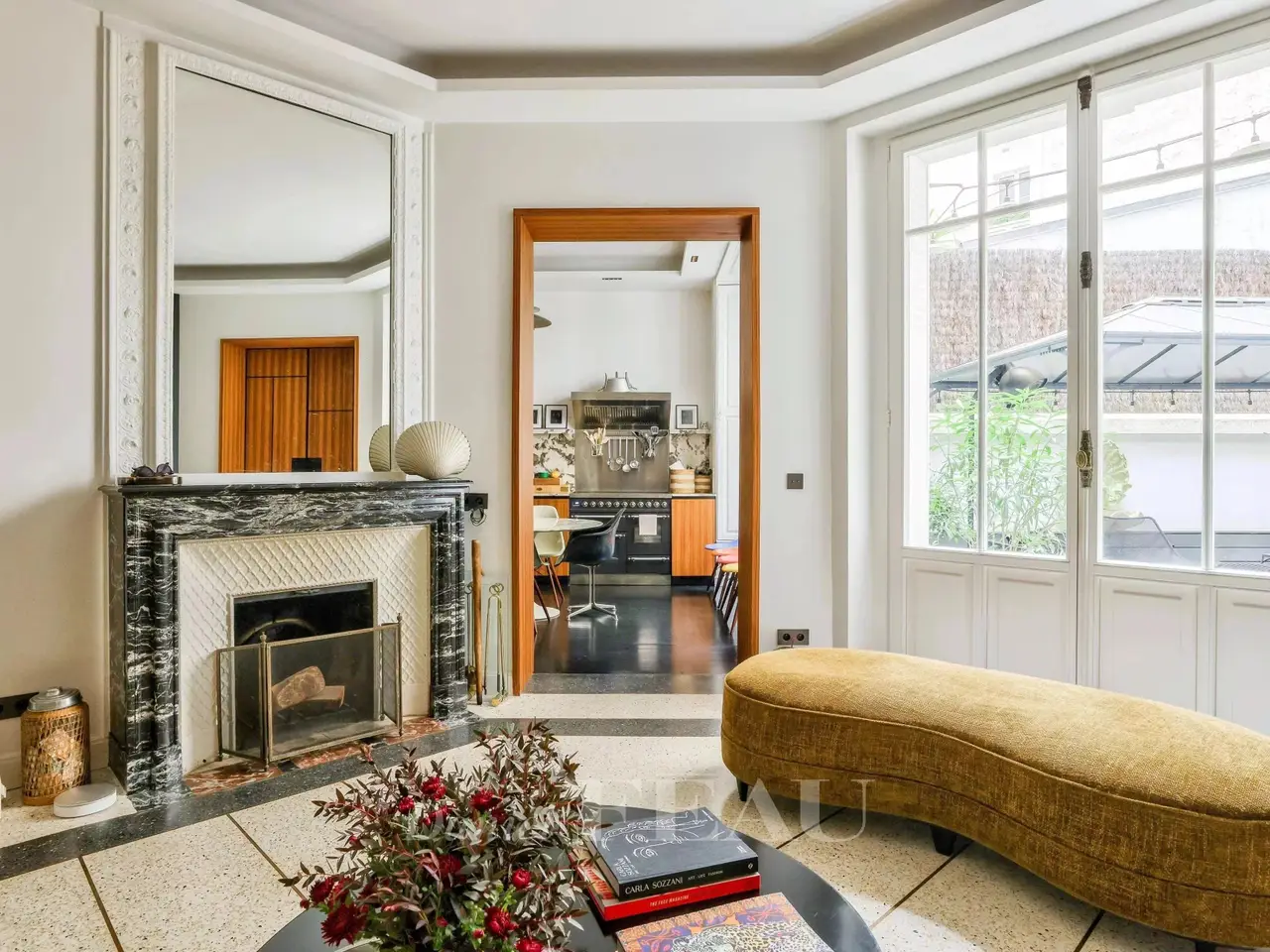 Europe neighbourhood. This refined 154 sqm apartment is on the garden level of a luxurious late 19th century freestone building located in a leafy pedestrian street. A star-shaped entrance hall leads to a magnificent rotunda living/reception room featuring 3.90 metre high ceilings and a fireplace, a luxuriously equipped kitchen with dining facilities, two spacious bedrooms each with a shower room and wc, a master suite with a study, two dressing rooms and a bathroom opening onto a little patio, a utility room and a guest wc. The apartment has been meticulously renovated and tastefully decorated by an interior decorator. In a peaceful location a short distance from the lively 9th District, the Batignolles neighbourhood, the shops and leafy Parc Monceau.