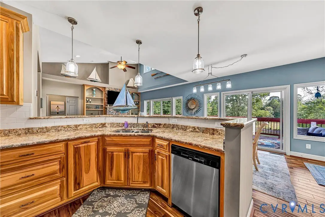 : An exquisite waterfront retreat on Smith Mountain Lake awaits at 1040 Jeffferson Dock Rd-a blend of modern comfort, natural beauty, and lake life luxury. Decorated as a 5 bedroom, 3 bathroom home, with 3265 sqft of living space. Built in 2009 sitting on .75 acres of beautifully landscaped land, with mature plantings, wroght iron fencing and a pristine new backyard firepit and patio! Stunning lake and mountain views, tucked just inside a cove off the main Blackwater River channel. Spacious open-plan living with large windows that capture the lake view and fill rooms with natural light. Gourmet kitchen outfitted with granite countertops, high-end stainless steel appliances and thoughtful finishes.Comfortable main-level living with screened porch and full-length decks to enjoy the outdoors from multiple vantage points. Lower level designed for guests and gatherings: roomy areas, high ceilings,great funtionality and flow. Professionally landscaped lot with a paved pathway down to a custom boathouse. Deep water slip+lift+enclosed storage make lake access effortless. Multiple outdoor living spaces:screened porch, decks with newly installed Trex style decking spanning the house,perfect for morning coffee or evening sunsets. Oversized 2-car garage;driveway and lot designed to accomodate convenience and aestectics. Fantastic propane gas firepit and stunning outdoor patio for cozy evenings taking in the fresh lake air and quiet scendery. Heat pump system, well and septic utilities. Modern touches:stainless appliances, EV charging capability in garage, updated systems. If you are craving lakefront serenity without sacraficing comfort or stylye, this home offers the best of both. No ST rental for zoning RC-1 in Franklin County at this time. Rental over 30 days is allowed. Come enjoy this beautiful home at Smith Mountain Lake today!