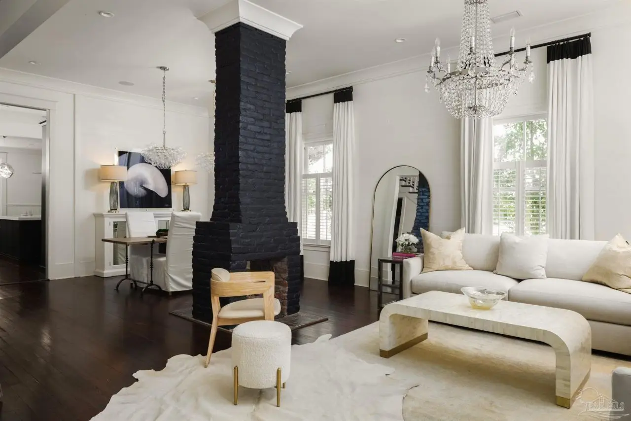 This beautifully restored Victorian home blends timeless architecture with modern luxury in one of downtown Pensacola's most desirable neighborhoods. This residence offers a rare opportunity to own a piece of Pensacola's history while enjoying modern comfort and design. Every detail has been thoughtfully updated, preserving the home's character while adding designer finishes throughout. Ideally located just steps from downtown Pensacola's festivals, restaurants, and boutique shops, it offers the perfect blend of history, sophistication, and walkable coastal living on a quiet residential street with private parking. Rich hardwood floors, tall ceilings, and designer lighting highlight its craftsmanship. A remodeled kitchen offers ample counter space and a main focal point of the home. The family room centers around a beautiful fireplace, creating a warm focal point that complements the home's charm. The space features Sub-Zero refrigerator drawers, a wine cooler, and beautifully updated fixtures. A hidden bookcase off the office leads to the first-floor primary suite, adding a distinctive architectural touch with historic intrigue. The primary suite includes dual walk-in closets and a luxurious bath with a soaking tub, double vanities, and an oversized walk-in shower. Upstairs are three spacious bedrooms with custom walk-in closets, a large storage closet, and a secondary living area with a wet bar that opens to a balcony overlooking the backyard and bay. A private guest home in the backyard offers its own bath and flexible living space for guests or a studio. The courtyard-style yard connects both homes, creating a serene outdoor retreat framed by lush landscaping and privacy fencing.