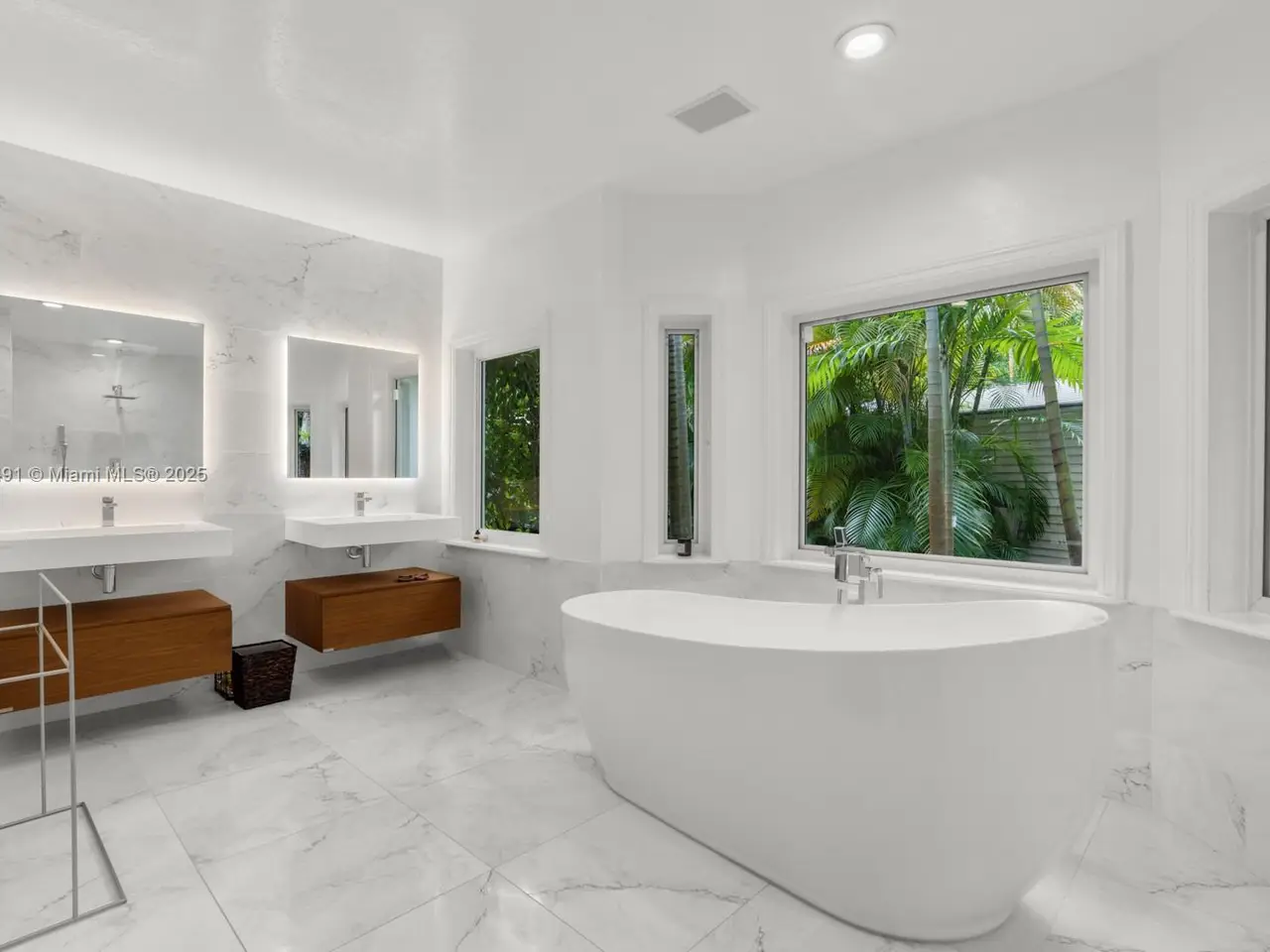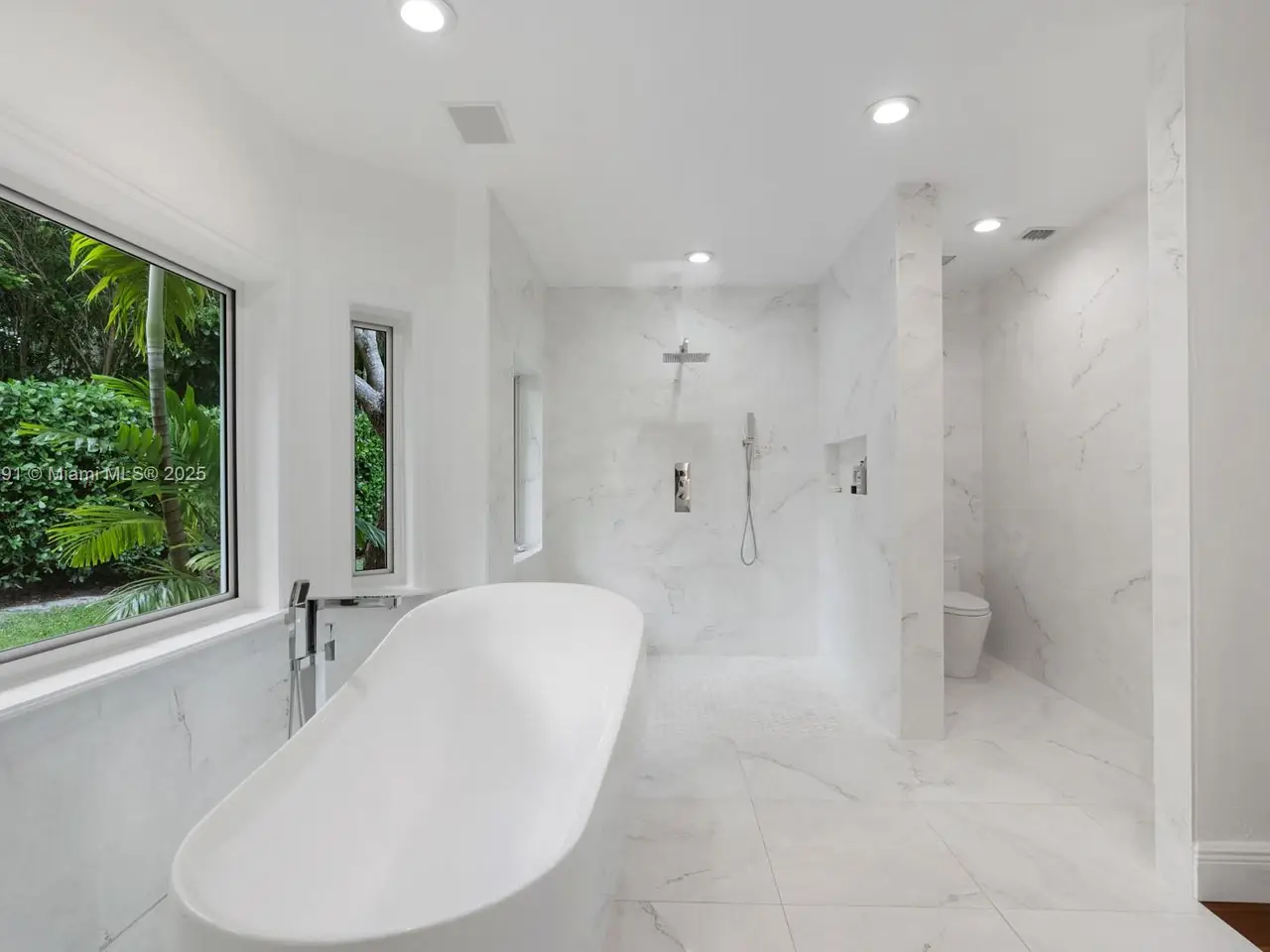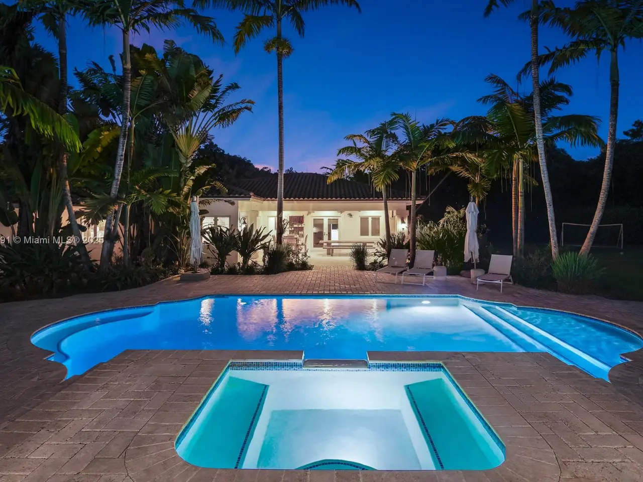 Experience elevated living in this gated one-acre Pinecrest estate. 4235 SF Living Area. Fully updated plumbing and electrical, tropical retreat boasts resort-style pool with jacuzzi, guest house with cabana bath, and lushly landscaped grounds. Inside, discover magazine-worthy interiors with refined millwork, soaring ceilings, 24x48 marble floors, and solid wood in all bedrooms. Impact windows and doors bathe the home in natural light. The 5-star gourmet kitchen features top-tier appliances, dual Wolf gas ranges, and a grand center island beside a sleek bar—ideal for stylish entertaining. Luxe primary suite offers dual closets and a spa-like bath with steam shower. 3 place carport, circular driveway, and generator all on one of the best streets in Pinecrest complete this perfect package.