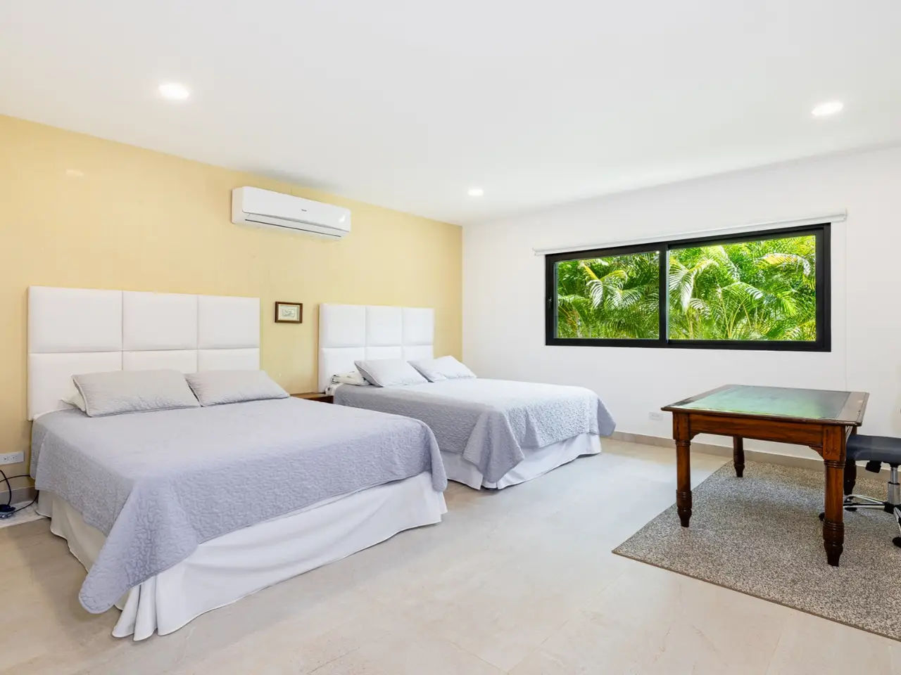 Introducing Los Almendros 51, a unique tropical-modern home that offers a very attractive blend of elegance, functionality, and comfort, along with a great sense of privacy and connection with nature. This stunning golf-front home is in the coveted Los Almendros community, within the very sought-after Hacienda Pinilla development, where you can find a plethora of luxury services, to cater for all tastes and where you can spend endless hours of fun and relaxation. Casa Los Almendros 51 comes fully furnished and comprises of 6 bedrooms, 6 bathrooms and 2 half bathrooms, with an ample living space of 5296 sq ft, a total construction of 7696 sq ft, within a lot of half an acre, giving you the space to host and entertain large groups of friends and family or for vacation rental purposes. In fact, the number of rooms, top notch amenities, its privileged location and low maintenance costs (solar panels, artificial grass, durable materials), makes Los Almendros 51 your ideal choice when looking for a property with great income generating potential. It already has future rentals accounting for $120,000 in just 2 months of being in the rental market. Upon arriving at the property, you will notice its modern design, crowned by an impressive lobby, ideal for meeting and greeting your guests. When entering the house, an ample hallway works as a preamble to the beautiful social areas of this home. The modern and spacious kitchen is the dream of people who love to cook, as it comes fully equipped with everything necessary to prepare delicious meals in a comfortable way. The ample cooking island and the rest of the cabinetry come with lights underneath, activated by contactless sensors, giving it a modern and classy effect. The high ceiling keeps the kitchen cooler and allows for lots of natural light to fill that area. Next to the kitchen is the laundry room and the two cars' garage, both areas are sizeable. Towards the right are the living and dining room, beautifully furnished and seamlessly integrated with the terrace and pool area through glass sliding doors. A hallway connects the social area with the half bathroom and two master bedrooms, each comprising of walking closet and ensuite bathroom. Both bedrooms are tastefully decorated with tropical murals, bringing color and join to them. The other four bedrooms are distributed two on each side of the pool and each bedroom has its own ensuite bathroom. This distribution gives good privacy to guests and easy access to the pool and terrace area. The terrace offers lounging chairs with a stunning view of the pool and the green areas, where you can soak up all year-round sunshine and be mesmerized by breathtaking sunsets. The BBQ area offers a dinner table and a large countertop with a built-in grill, ideal to enjoy meals and gatherings under the beautiful Costa Rican weather. The impressive pool area is crowned by a fire pit and an outdoor bathtub surrounded by palms, where you can have very relaxing baths under the stars. Another key feature of Los Almendros 51 is a brand new cinema for twelve people, adding to the great value proposition of this home and maximizing the potential for rental income. Hacienda Pinilla it’s a 4500-acre gated community with 3 miles (5km) of coastline and just 15 minutes from the world famous, Playa Tamarindo and just 1 hour away from Liberia International Airport. Within this luxury community, you’ll find multiple world-class surf spots, an 18-hole golf course, an exclusive beach club & restaurant, equestrian center with horseback riding, 2 tennis courts, 40km of mountain bike trails and the JW Marriott, that encompasses 5 restaurants, spa and the largest pool in Central America. In Hacienda Pinilla you will find a place where the deep legacy of a Costa Rican ranch is perched on the shores of the pristine waters of the Pacific Ocean in one of Costa Rica’s most spectacular settings. A place where every day brings a new experience and lasting memories.