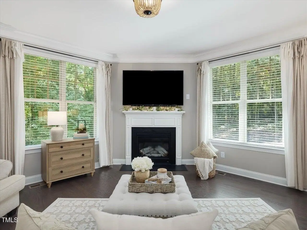 Gleaming hardwood floors and intricate molding