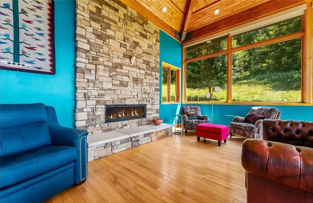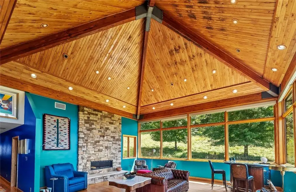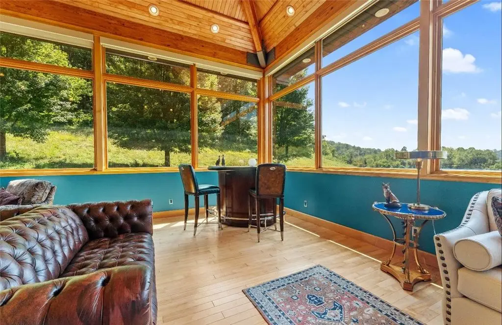 This exceptional property offers a unique blend of luxury and tranquility, perfect for those seeking a peaceful retreat while still enjoying modern amenities. The expansive 67 +/- acres provide ample space for outdoor activities. As you enter inside, the open-concept design invites an abundance of natural light, highlighting the exquisite craftsmanship throughout. The gathering room features a stunning stone fireplace that serves as a focal point, creating a warm and inviting atmosphere for gatherings or entertaining guests. The gourmet kitchen is a chef's dream, equipped with high-end appliances, ample counter space and custom cabinetry. This kitchen is designed to impress. The screened-in sun porch offers the perfect spot to unwind with a book or enjoy your morning coffee while taking in the breathtaking views of the landscape. With patios and decking surrounding the home, you'll have plenty of options for outdoor dining and relaxation.