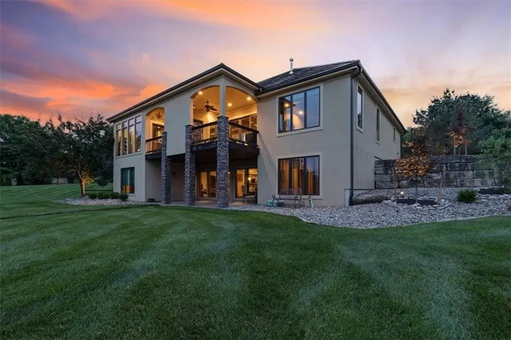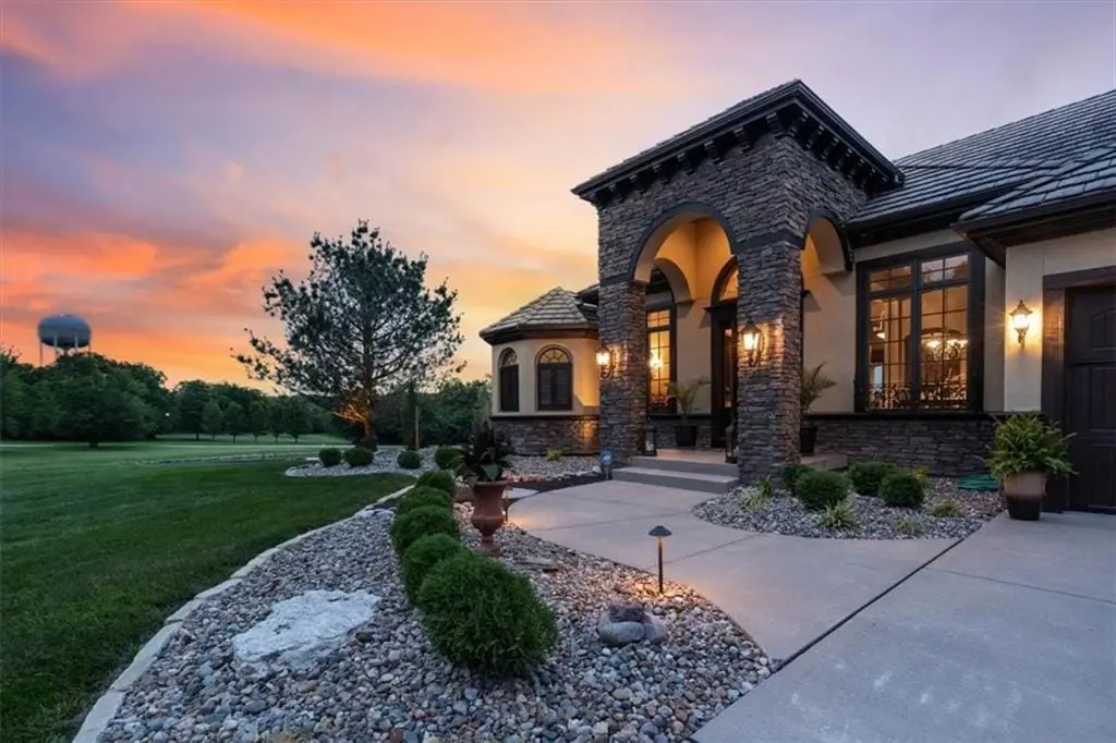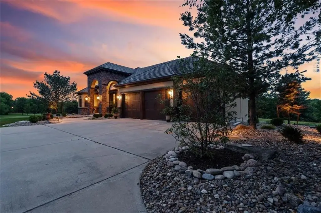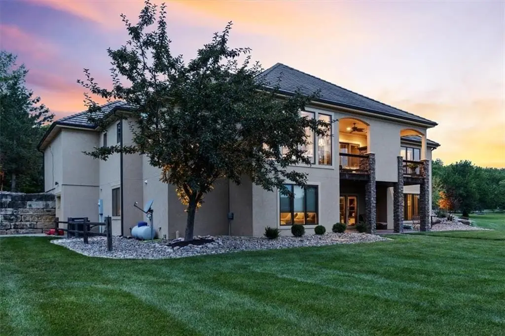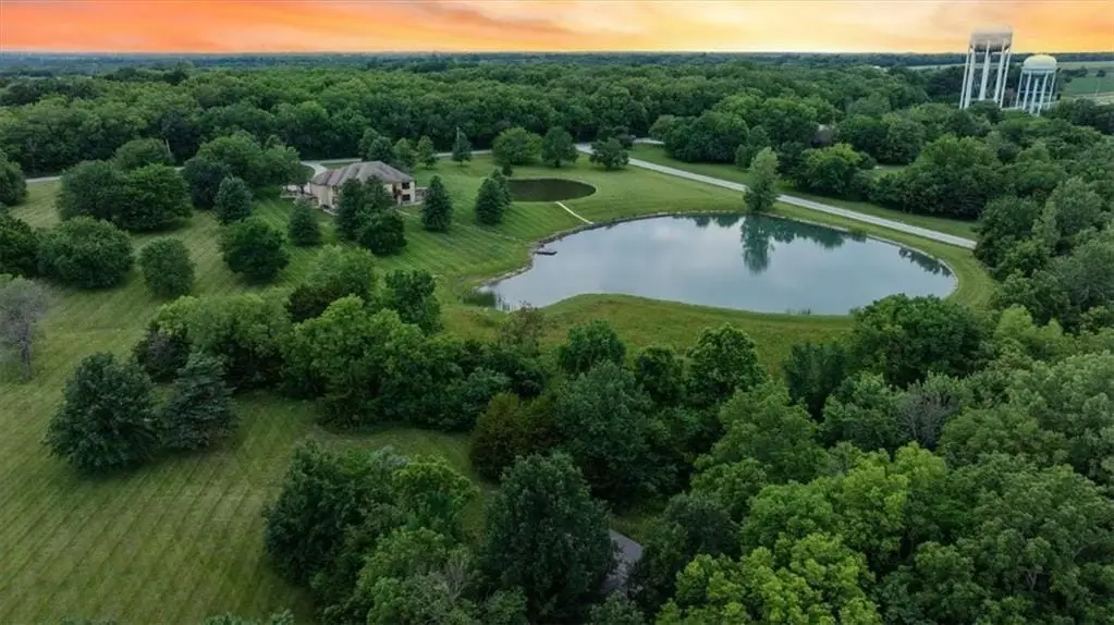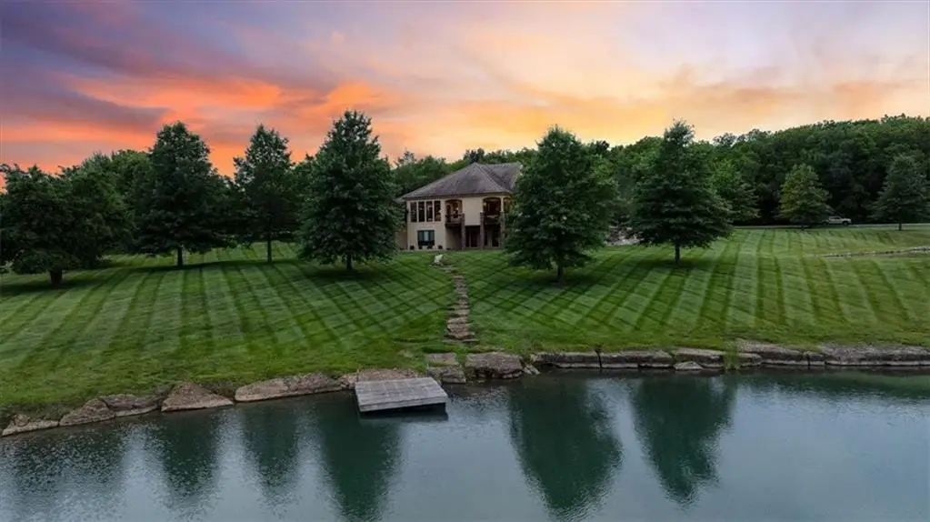 Tucked away in a serene, park-like setting, this stunning custom-built estate offers a rare blend of privacy, luxury, and breathtaking natural beauty. Perfectly positioned on just over 10 acres, the home overlooks picturesque, fully stocked ponds surrounded by mature trees, meticulously maintained grounds, and a backdrop of nature. A covered deck with an outdoor fireplace provides the perfect place to unwind while enjoying the peaceful views, and expansive windows throughout the home bring the beauty of the outdoors in. Inside, you'll find high-end finishes, an open-concept layout ideal for entertaining, and a walkout lower level that leads to a private patio and dock. The thoughtfully designed layout allows plenty of space to add a pool, garden, or additional outdoor features to truly make this your own. A detached 36x48 outbuilding provides the perfect space for a workshop, storage, or hobby area. Whether you're sipping coffee on the deck, casting a line from the dock, or enjoying an evening under the stars, this property is designed for both relaxation and entertainment. With convenient access to Raymore, Lees Summit, and Kansas City, it offers the best of both worlds - secluded countryside living with city amenities just minutes away. This one-of-a-kind property is a rare opportunity - schedule your private tour today!