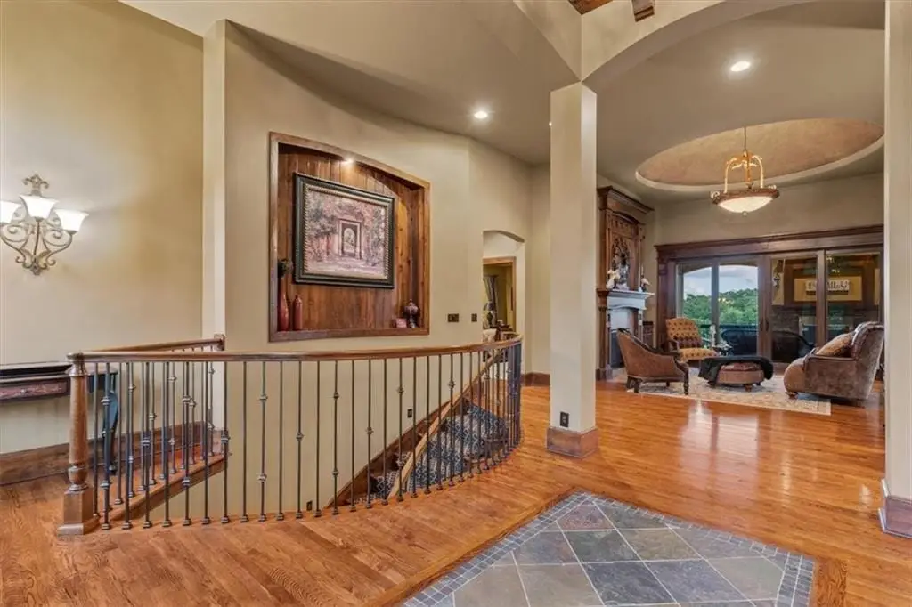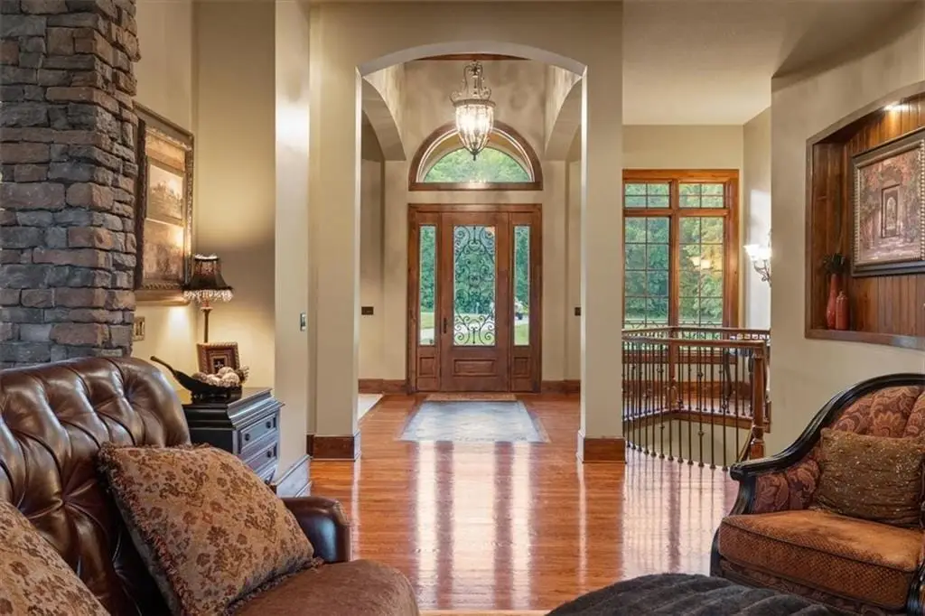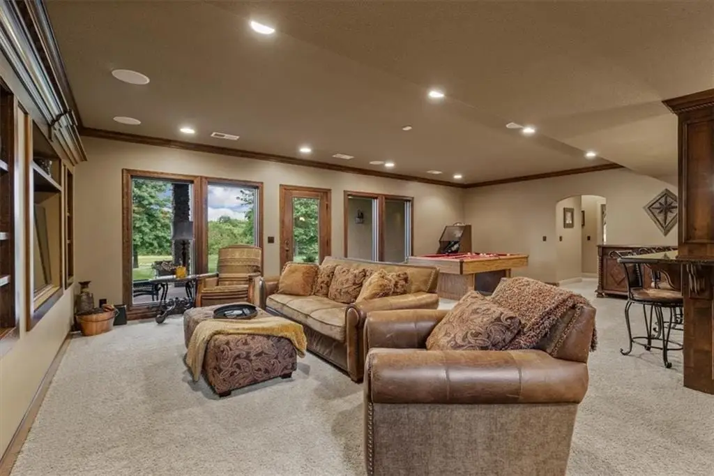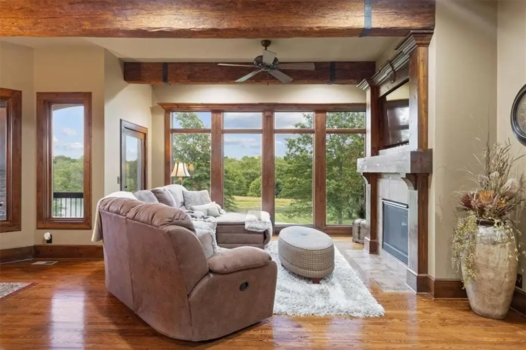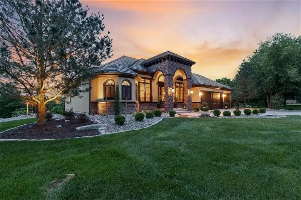 Tucked away in a serene, park-like setting, this stunning custom-built estate offers a rare blend of privacy, luxury, and breathtaking natural beauty. Perfectly positioned on just over 10 acres, the home overlooks picturesque, fully stocked ponds surrounded by mature trees, meticulously maintained grounds, and a backdrop of nature. A covered deck with an outdoor fireplace provides the perfect place to unwind while enjoying the peaceful views, and expansive windows throughout the home bring the beauty of the outdoors in. Inside, you'll find high-end finishes, an open-concept layout ideal for entertaining, and a walkout lower level that leads to a private patio and dock. The thoughtfully designed layout allows plenty of space to add a pool, garden, or additional outdoor features to truly make this your own. A detached 36x48 outbuilding provides the perfect space for a workshop, storage, or hobby area. Whether you're sipping coffee on the deck, casting a line from the dock, or enjoying an evening under the stars, this property is designed for both relaxation and entertainment. With convenient access to Raymore, Lees Summit, and Kansas City, it offers the best of both worlds - secluded countryside living with city amenities just minutes away. This one-of-a-kind property is a rare opportunity - schedule your private tour today!