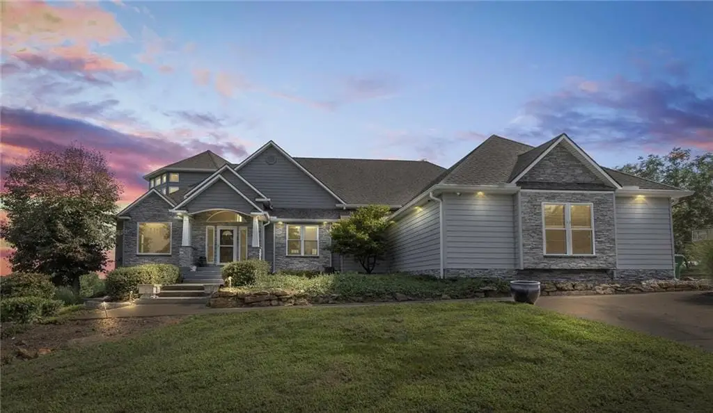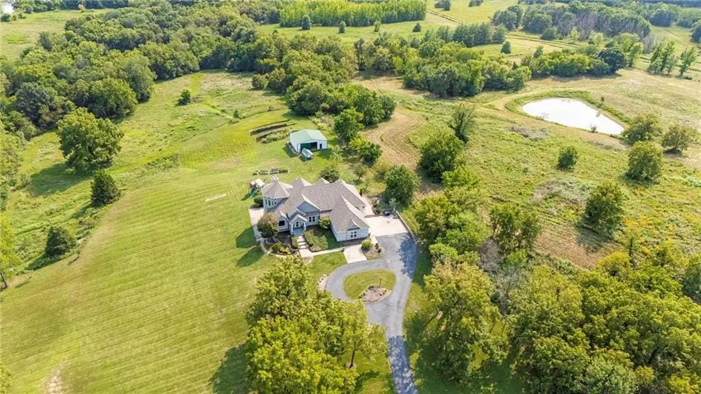 STUNNING PRIVATE ESTATE FOR SALE! Live in luxury and enjoy VERY LOW UTILITY BILLS DUE TO NEARLY NEW SOLAR ARRAY SYSTEM WITH WARRANTY! Explore all the spectacular features of this architecturally custom-designed home that is suited for the setting. See for many miles from the upper level living room, or from the lower level suite designed as an living area for multi-generation occupants. There are 3 Primary Suites within this property! Commute to downtown KC in 45 minutes, Lake Ozark in 2.5 hours, Pleasant Hill or Harrisonville in 15 minutes, and Lee's Summit in 20 minutes. The barn, chicken coop, garden boxes and winding trails through the woods and creek offer many hours of enjoyment for kids and grandkids. Come explore the hidden treasures on this property. Come back to live in a quiet natural-habitat!
