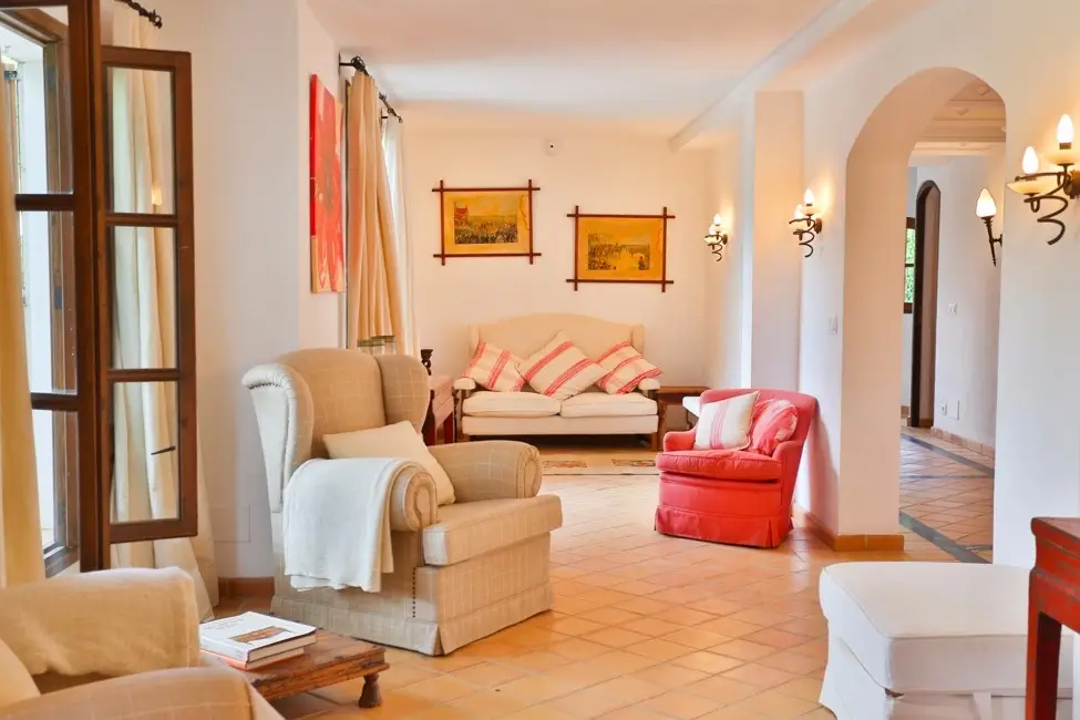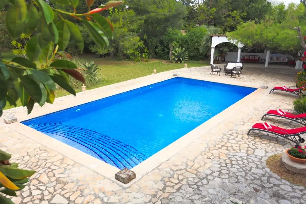 This spectacular finca in Mallorca is located on a 21,000 m2 plot near Pollensa and is ideal for horse lovers. This beautiful, high-quality property consists of two separate, approximately 150-year-old houses that have been painstakingly and tastefully restored with great attention to detail and using the best quality materials. The main house offers two spacious living rooms on the ground floor, an open, rustic, Mallorcan-style kitchen with an adjoining dining area and access to a covered terrace, as well as a cloakroom and a guest toilet. On the upper floor there are three large double bedrooms with en suite bathrooms, two of which have their own terraces (covered and open). The second house also consists of three double bedrooms with en suite bathrooms, a central living room and its own kitchen. Further extras include the horse paddock, a private pool area with a spacious terrace and summer kitchen, a pool house with a Turkish steam bath and a billiards room. A recommended property.