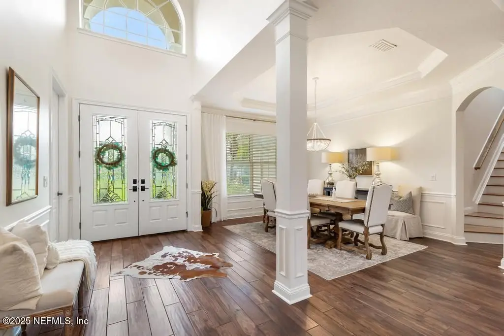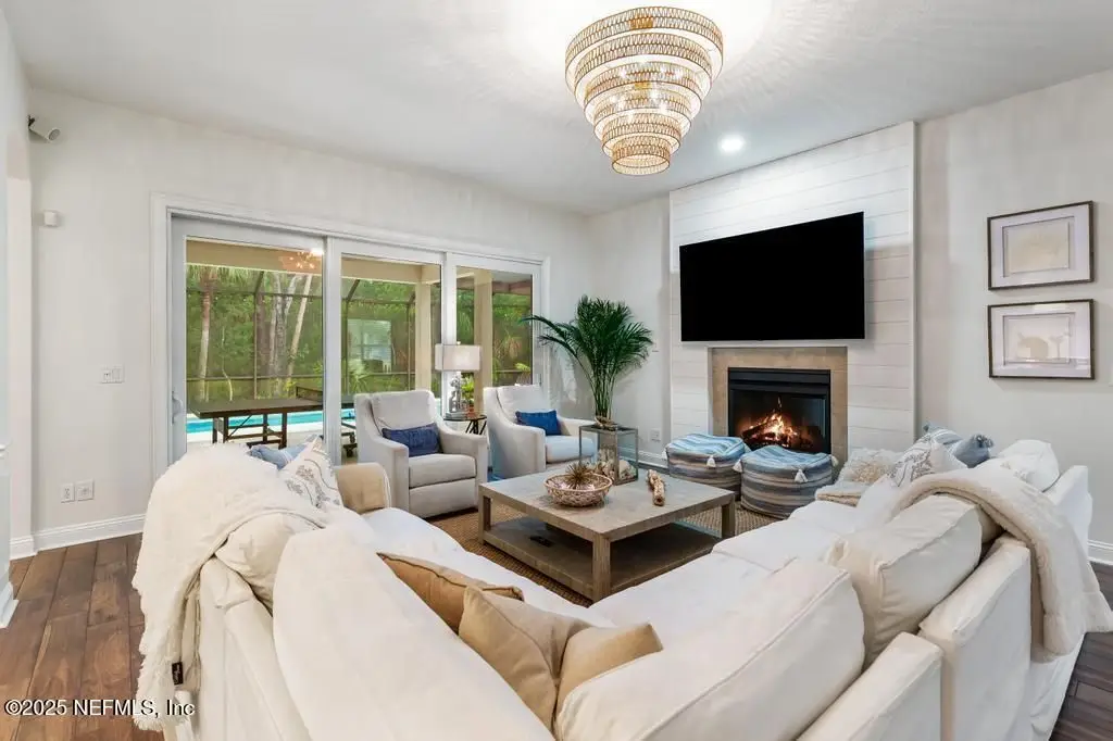 Welcome to 700 Tranquility, a stunning updated estate home in the private, gated community of Marsh Harbor. Boasting five bedrooms, 5.5 bathrooms, and 4,173 square feet, this residence offers luxury living at its finest and shows like a model-truly move-in ready. Enjoy peace and privacy with preserve views, just minutes from the beach and zoned to top-rated Ponte Vedra Beach schools: Ocean Palms Elementary, Landrum Middle, and Ponte Vedra High. Inside, you'll find soaring 20-foot ceilings in the living room, wood-look tile flooring, a renovated gourmet kitchen featuring a large island with quartz countertops, commercial-grade double oven with five gas burners and griddle, microwave drawer, and designer lighting. The primary suite includes a fully remodeled spa-like bathroom, and there's also a first-floor in-law suite with full bath, plus a dedicated office with a built-in bar. Step outside to your private oasis featuring a saltwater pool with hot tub, outdoor kitchen, and gorgeous wood-burning fireplace-perfect for year round entertaining. Enjoy tranquil preserve views, community amenities including a pool, cabana, pavilion, community dock, and a public boat ramp just minutes away. NO CDD fees and only four miles to the beach! Don't miss the full video tour. This home is a must-see!