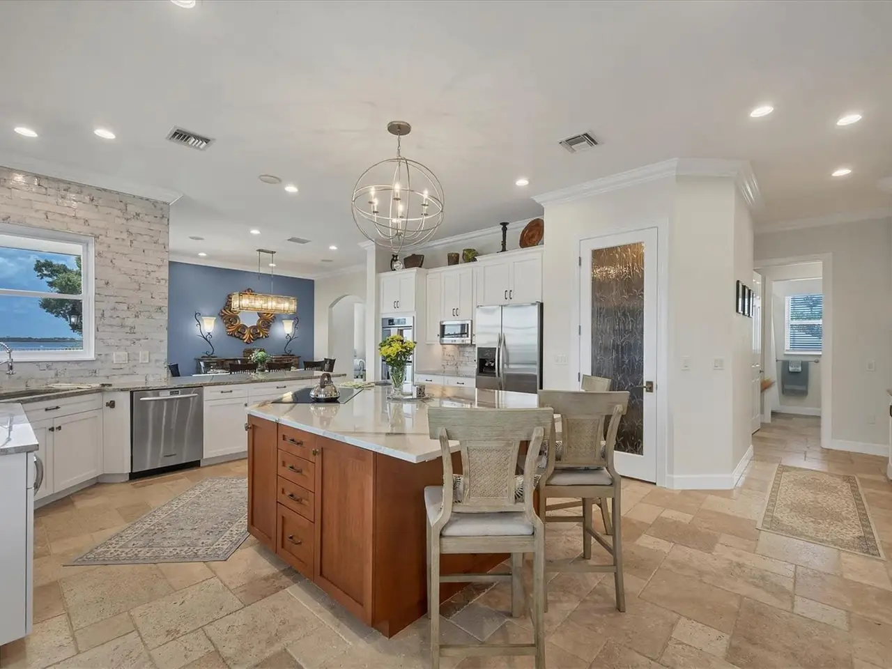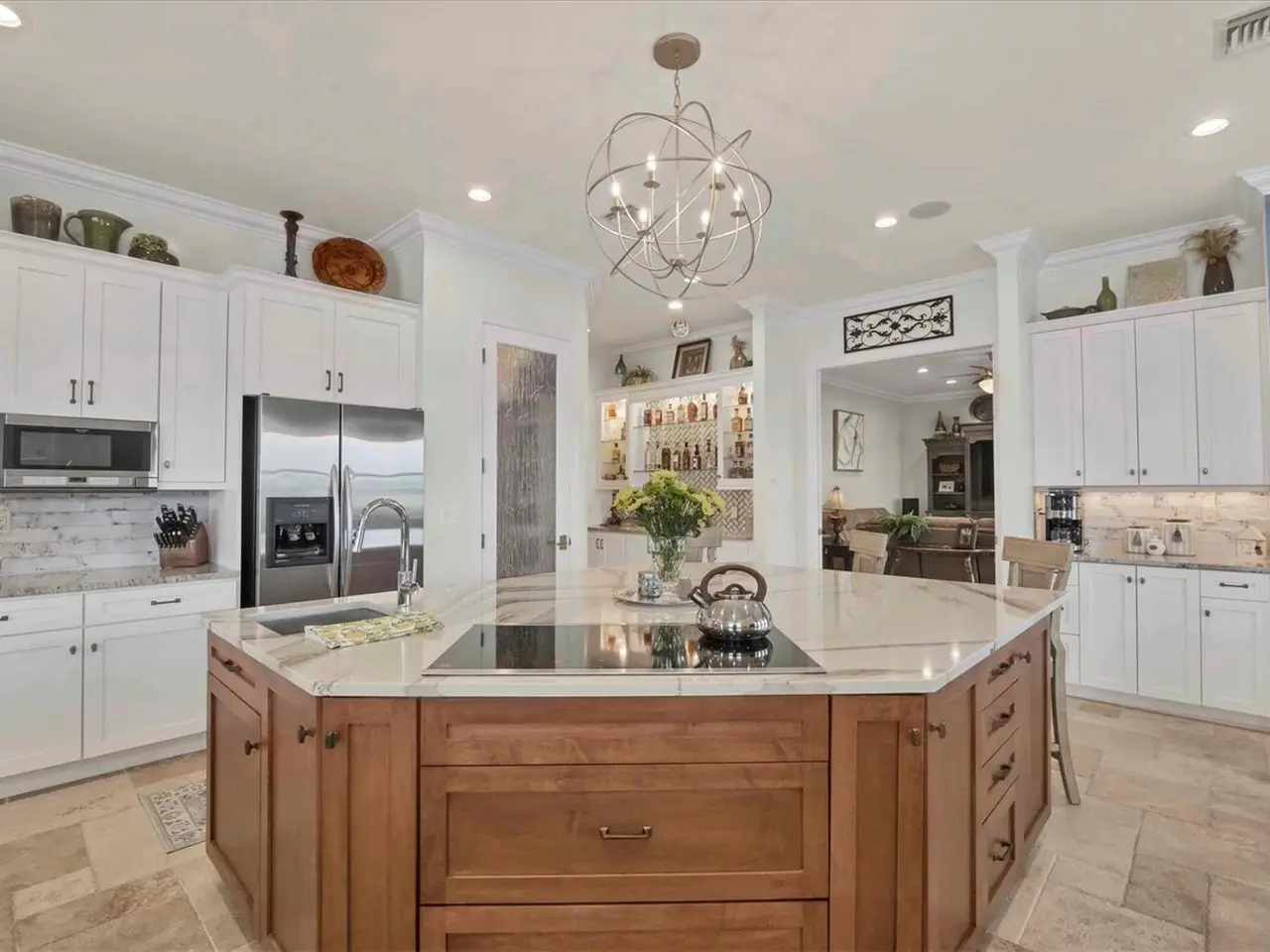 Entertainer's dream kitchen with massive quartz island