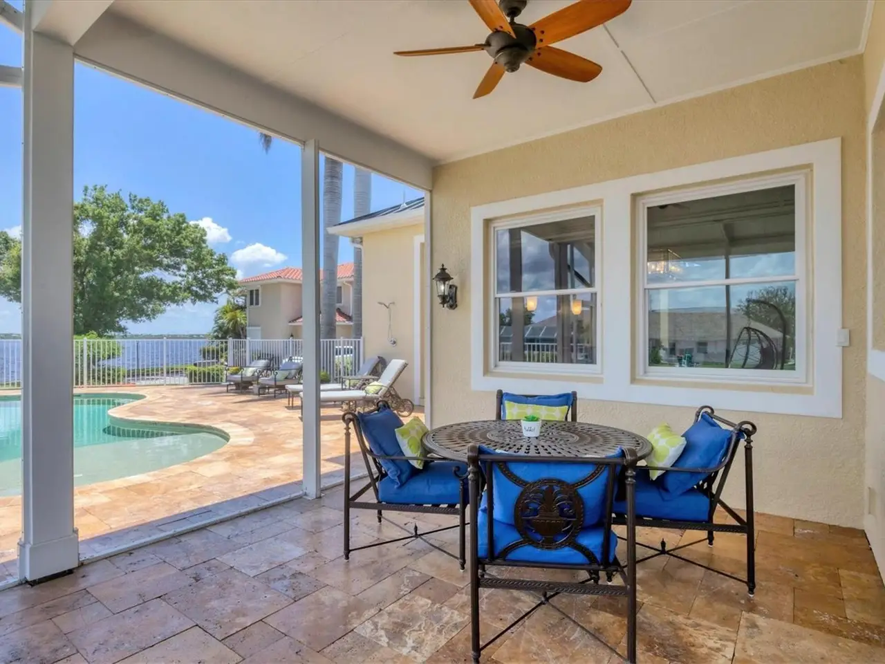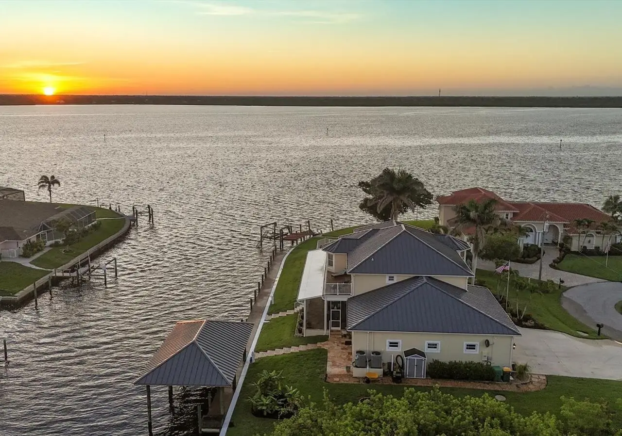 Introducing "River Breeze at Paradise Point" the whimsical name of this breathtaking property, affectionately bestowed by the current owners. This stunning waterfront estate, stretching across 0.39 acres, is perched along the Myakka River with quick access to Charlotte Harbor and a 30-minute boat ride to the Gulf. It's every boater's dream to the best fishing in Southwest Florida, featuring 185 feet of concrete seawall, a 167-foot captain's walk, and a 2023 metal-roofed boathouse with a 16,000 lb remote-controlled boat lift. Enjoy dolphin, manatee, and bald eagle sightings, or cast a line for record snook, world-renown tarpon, and redfish all from your backyard. The home offers 3,825 sq ft of living space and a spacious, well-organized 1,327 sq ft 4+ car garage with 10.5-foot ceilings. Inside, the soaring 20-foot foyer with a sweeping staircase leads into a bright music room with 12-foot bamboo tray ceiling, and an entertainer's dream kitchen featuring a massive quartz island, updated cabinetry, stainless appliances, and three built-in dishwashers. The kitchen flows seamlessly into the dining and bar areas and out to a 56-foot screened patio and extended lanai perfect for year-round indoor-outdoor living. Step out to the heated saltwater pool, surrounded by open-air lounge space ideal for relaxing in the Florida sunshine. The primary suite is a private retreat with a sitting area, two walk-in closets, a luxurious 14x14 bathroom with a 5x7 glass shower, and direct access to a private waterfront balcony. The primary guest suite also features a private balcony and river views. Every bedroom is en suite, ensuring comfort and privacy for guests. Throughout the home, enjoy travertine and engineered wood flooring with porcelain tile in 2nd level bathrooms, detailed crown molding, and abundant storage including multiple custom closets. Additional recent upgrades include a new standing seam metal roof (house and boathouse), two new A/C units with whole-home UV filtration, spray foam insulation, PECS plumbing system, impact-resistant windows and doors throughout, and fresh interior/exterior paint. The pool features a new heat pump, chlorine generator, and variable-speed pump, while rebuilt decks and upgraded kitchen and baths further elevate the home's quality and style. Tucked away in Gulf Cove, a hidden gem community known for its quiet streets, friendly neighbors, and walkable, bike-friendly atmosphere, this exceptional home offers luxury, comfort, and breathtaking water views delivering unmatched waterfront living in a peaceful coastal setting.