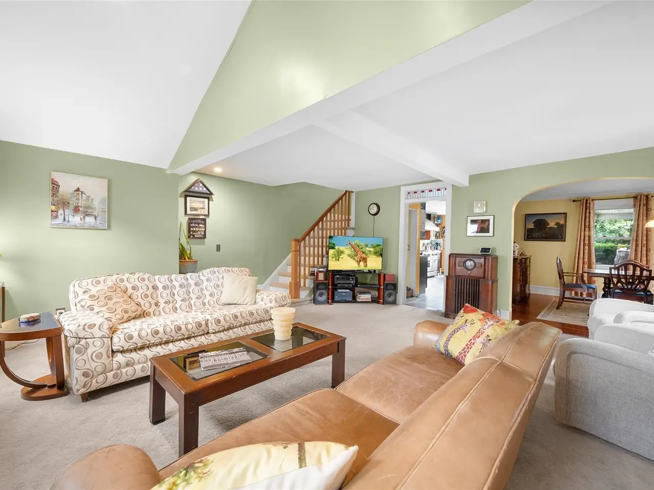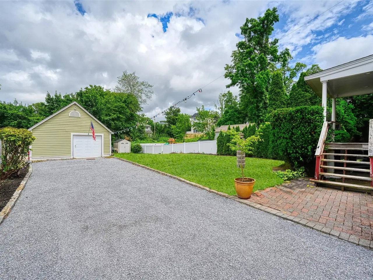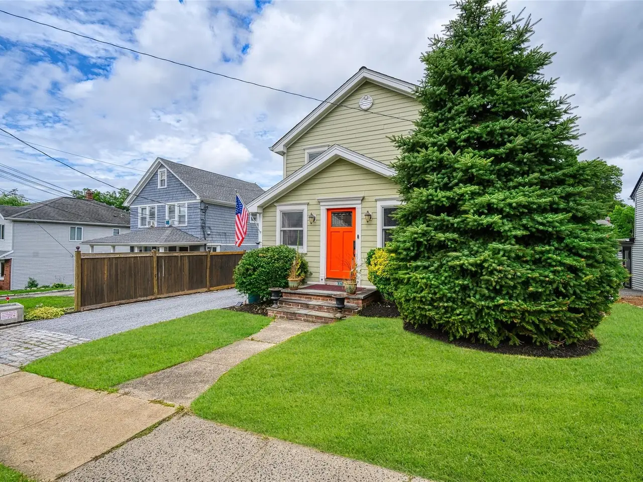 Welcome to 27 Neulist Avenue—an exceptional Colonial home on a quiet dead-end street in Port Washington. Set on an expansive 8000 sqft. lot, this property features a deep, private yard that backs onto town-owned green space for added privacy. A charming covered porch leads into a well-designed interior boasting 3 bedrooms, 2 full baths, and a powder room. The large living room includes vaulted ceilings with architectural steel beams, custom stained glass, and seamless flow to the dining room and kitchen. The eat-in kitchen is a chef’s dream, outfitted with a 48” Blue Star gas range with dual ovens, 1200 CFM Thermador range hood, 48” Sub-Zero fridge/freezer, Bosch dishwasher, and Kitchenaid microwave. The kitchen opens to a large covered porch, ideal for entertaining. Upstairs, the primary bedroom features a WiFi-enabled Friedrich A/C unit, ample closet space, and hardwood floors. Two additional bedrooms offer flexibility, and the full bath includes radiant heated floors, and Kohler cast iron soaking tub. The finished lower level includes a full bath with shower and a home theater ready area complete with an 85” Sony Wega 4K TV, theater curtains, wiring, and specialty lighting—all included in the sale. The professional sound equipment and theater seating are not included but are negotiable. Additional spaces include abundant storage, dual washer/dryers, a utility closet, and separate walk-out access to the driveway. The detached 2-car garage is approx. 400 sq ft. Don’t miss this opportunity to own a one-of-a-kind home in Port Washington.