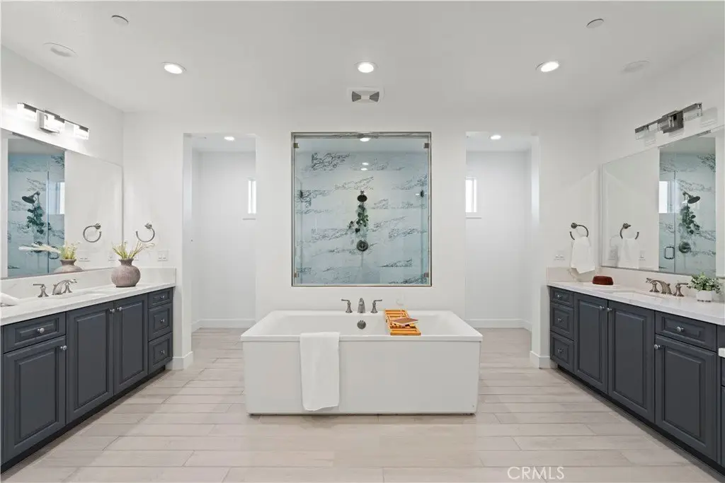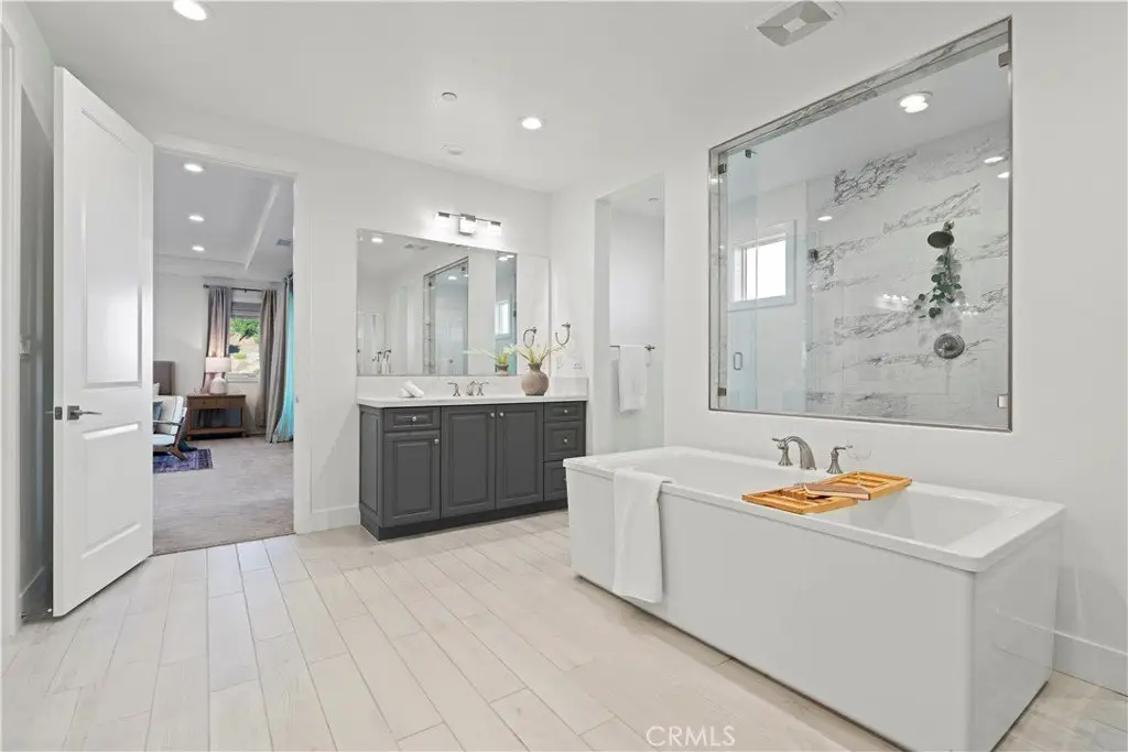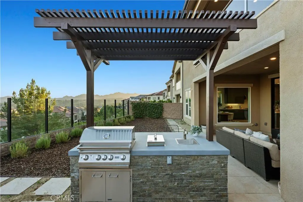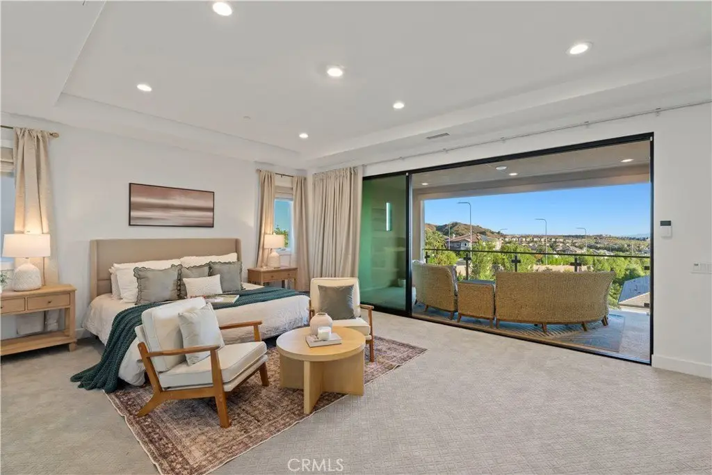Looking for the best in Luxury living? Well, look no further! Located up in the hills of the highly sought-out area of Porter Ranch. I Welcome You to the luxurious Hillcrest Community! Situated on a quiet cul-de-sac, this gorgeous 5 Bedrooms / 5.5 Baths residence is illuminated with natural light that flows throughout the home’s open, airy layout. The captivating foyer is highlighted by gleaming Chevron tile flooring design, high vaulted ceilings and an elegant spiral staircase. Every detail was carefully selected and quality crafted. The main floor features a massive great room perfect for large families, a formal dining area and kitchenette. The inviting gourmet kitchen features Kitchen Aid appliances (6 burner range, pot filler, double ovens, microwave and built in refrigerator), Quartz counters/backsplash, custom up to the ceiling cabinets, extended buffet counter, built in drawers and cabinets in the home are full extension and soft close, walk-in pantry and large center island. One bedroom located on the 1st floor and a den which can be utilized as an office or gym. Four bedrooms upstairs include a Primary Suite that is sure to impress, featuring coffered ceilings, beautiful valley views from your private balcony, a luxurious "Hotel Style" master Bath with Quartz countertops, dual sinks, an oversized soaking tub, separate double door walk-in shower and two large walk-in closets. Beyond the great room downstairs are floor to ceiling sliding doors which open up to the large Luxury Outdoor living patio equipped with cozy fireplace. Relax, unwind, or entertain guests in your beautiful backyard featuring beautiful sunset views, built in BBQ, private spa and drought tolerant landscaping. Other features include a spacious loft, laundry room (washer and dryer included) on second level, plantation shutters, paid off solar and EV hook up in the garage. Located within the highly acclaimed Porter Ranch Community School and minutes away from "The Vineyards” this plaza features Whole Foods Market, restaurants, Pete's Coffee, movie theater, shopping and more. This residence is LUXURY LIVING AT ITS BEST!!