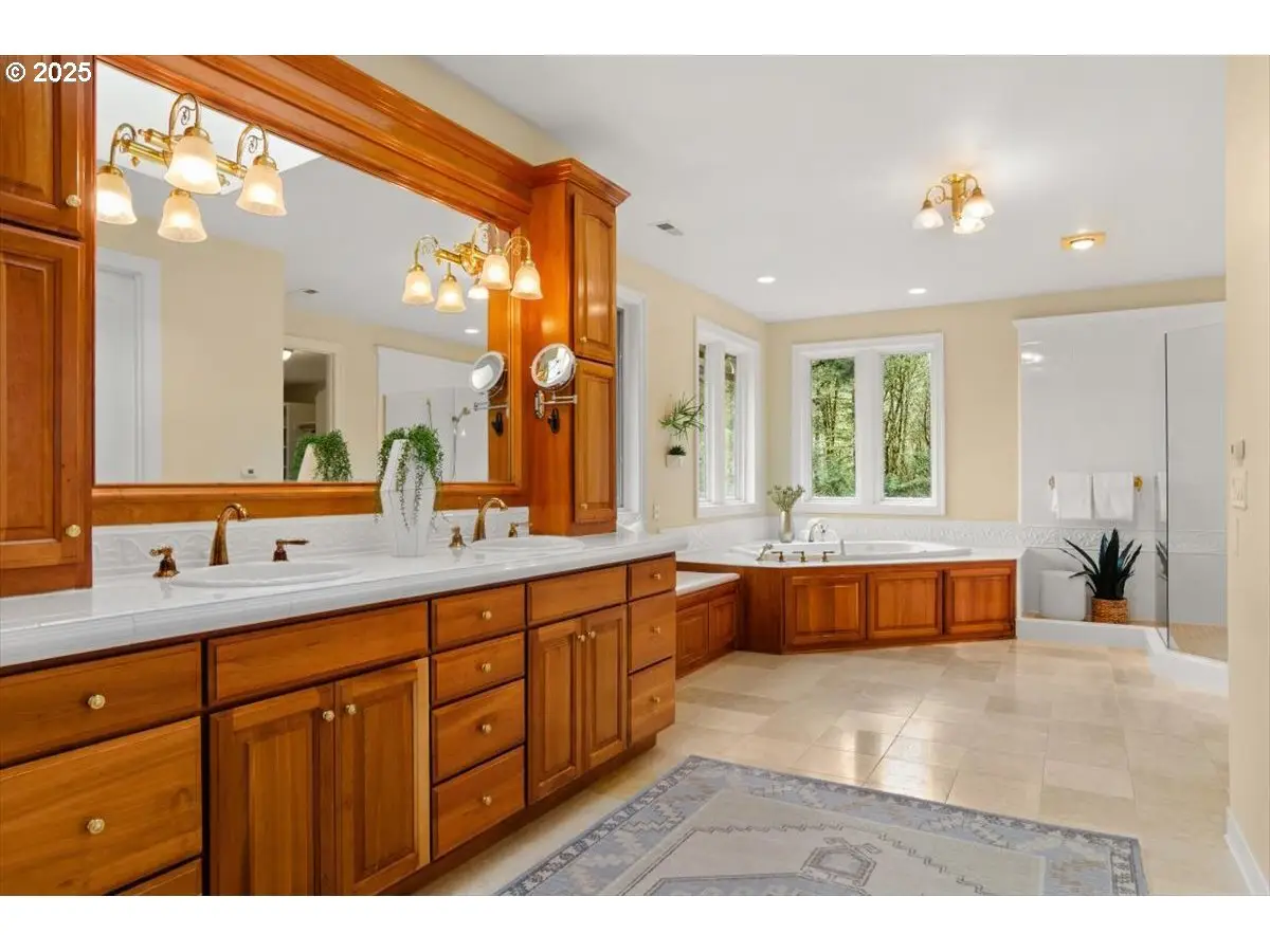 Nestled on 9.83 acres of lush, private land in the heart of Northwest Portland, this exceptional home offers an unparalleled blend of tranquility and luxury living. The property is a true sanctuary, featuring a spacious residence with soaring ceilings, extensive moldings, high-end finishes, and expansive windows that capture views of the surrounding Pacific Northwest beauty. The house features the ideal floor plan, seamlessly blending modern, open spaces with thoughtful separation for added privacy and functionality. Outside, the gated estate enjoys landscaped gardens, towering trees, expansive patios, a flat yard, access to trails, and ample space for both formal and informal outdoor entertainment. This residence is located just minutes from Forest Park, the city and high tech, providing easy access to dining and shopping, while offering a serene retreat. This estate is the epitome of convenient Portland living.