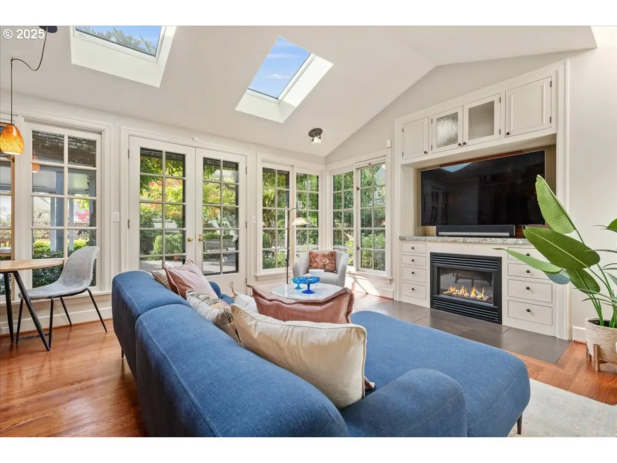 A carefully remodeled 1925 Tudor on a beautiful, tree-lined Eastmoreland street. Original details preserve the soul of the era, and an exceptionally modern floorplan make the home ideal for today. This is the FIRST time on the market, with only three owners. An understated timber clad exterior and winding path take you to the front door. The friendly entry is a cathedral ceiling with French doors to the living room; custom bookshelves, built-ins, hardwood floors, gas fireplace, too many windows to count, and a view through French doors of the architect designed backyard/courtyard. Your first impression is WOW, and that feeling continues. Remodeled kitchen with quality inset cabinetry, high-end stainless appliances, coffee nook, butcher block & solid stone counters, timeless tile. Skylights fill the adjoining family room with soft natural light. Remarkable indoor/outdoor connection and entertaining areas. Dining room is spacious and filled with detail; every day use will feel special, and also dressed & ready to entertain. Amazing main floor office with stunning leaded glass windows. Necessary modern updates blend with original features all throughout the home; coved ceilings, crown moldings, built-in window screens, original doorknobs, nooks. The primary bedroom suite has FOUR closets, the attached bath has double sinks, marble counters & gorgeous new tile shower surround. A total of 4 bedrooms + office. Downstairs, a cozy family room provides the perfect retreat for movie nights or guests. A rare find to have living room, family room and bonus room! Step outside to renowned Barbara Fealy designed backyard -- an urban sanctuary framed by lush landscaping and mature trees, courtyard, winding paths and garden beds. Detached garage is oversized. Eastmoreland is moments from the convenience of Woodstock, charm of Sellwood, and beautiful Reed College campus. A comfortable, functional and elevated home, this elusive Eastmoreland home delivers it all. Open Sunday 11am - 2pm [Home Energy Score = 1. HES Report at https://rpt.greenbuildingregistry.com/hes/OR10242387]