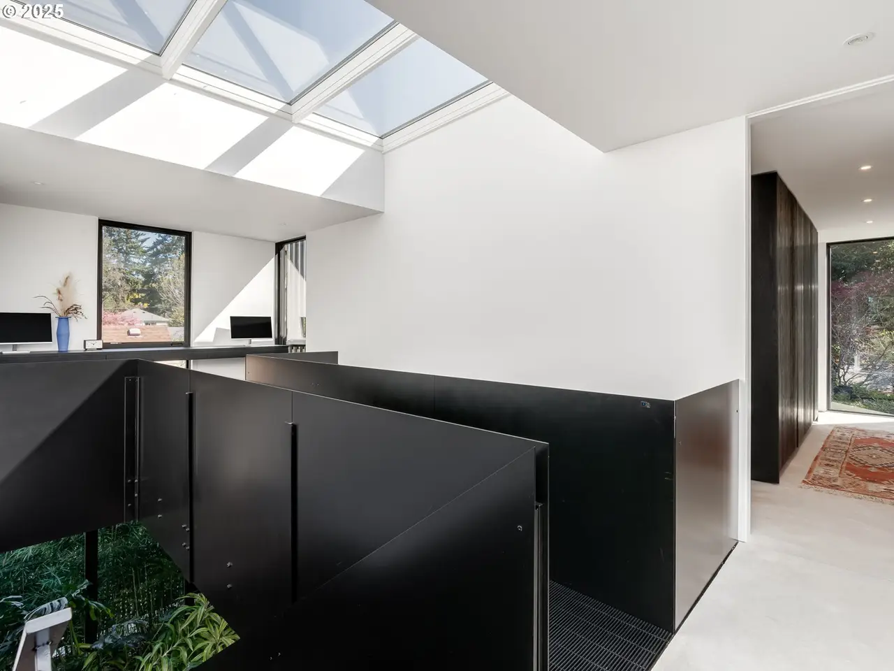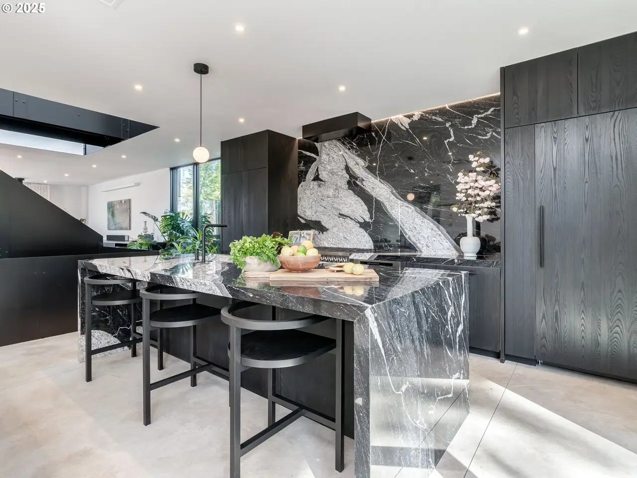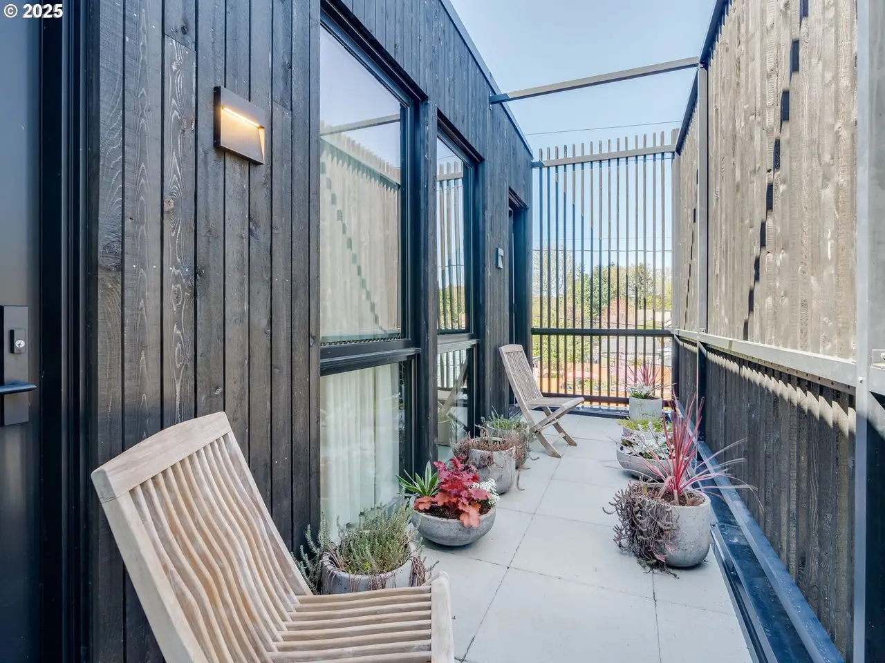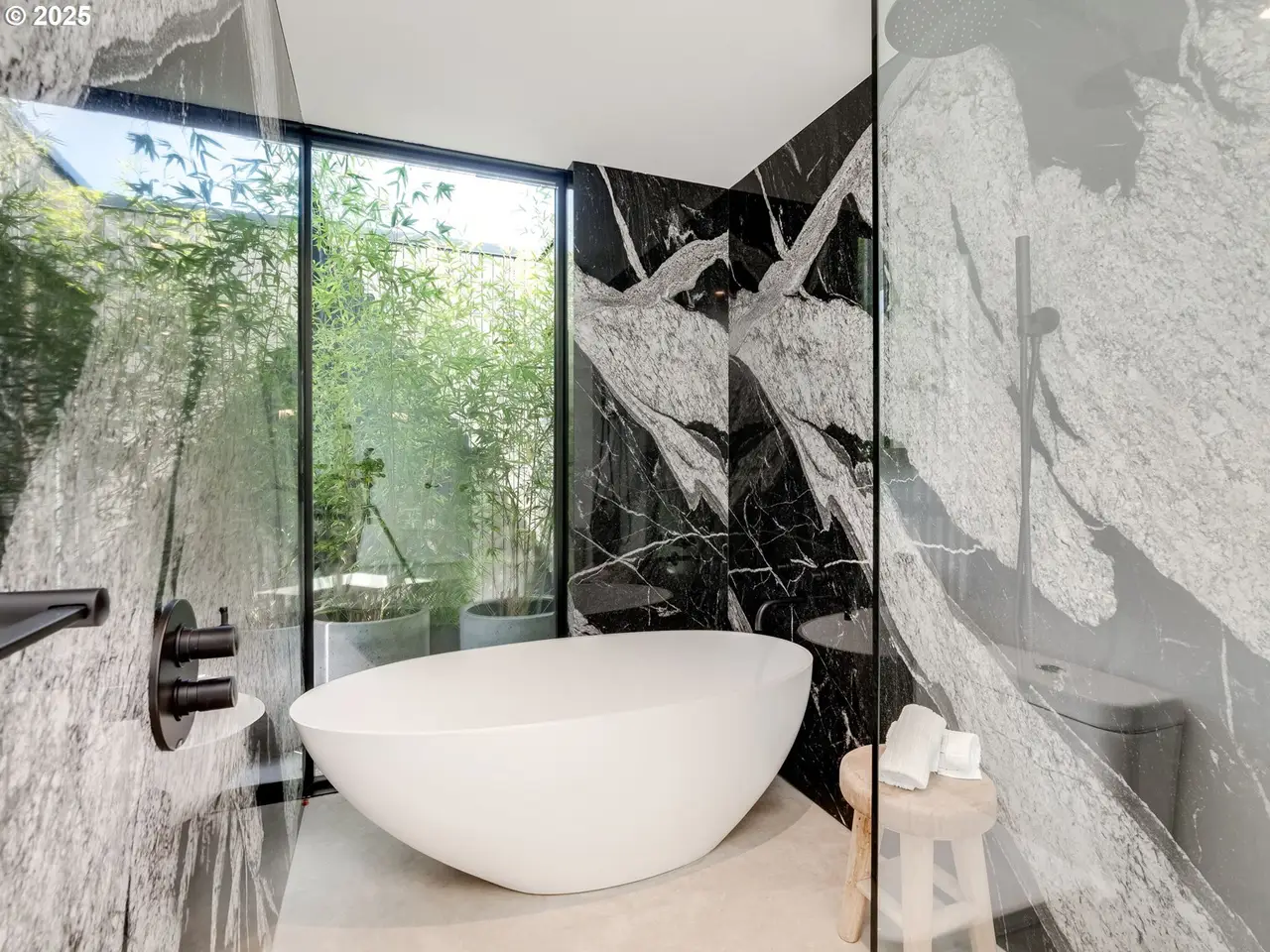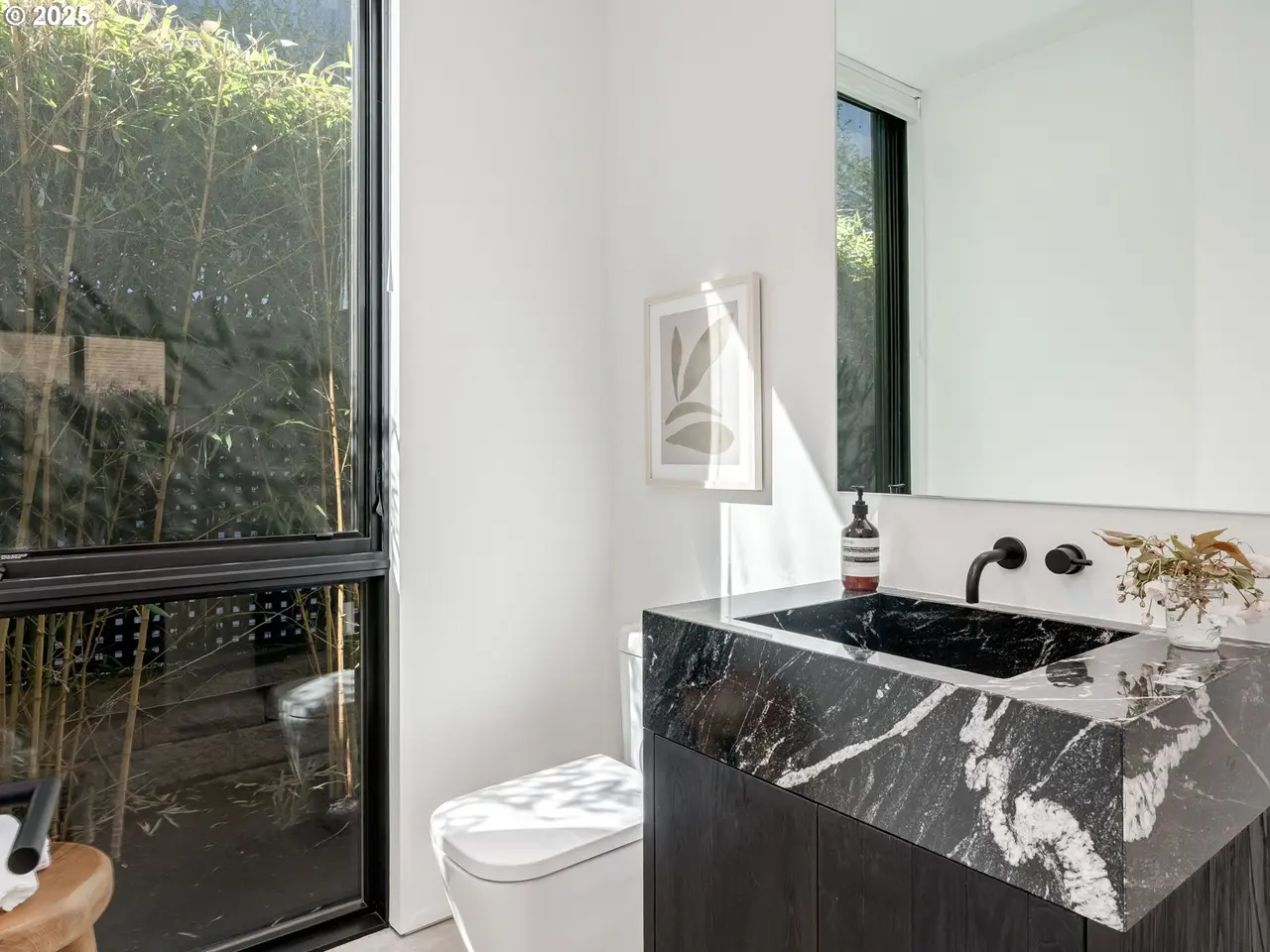 The Atrium House is a rare architectural gem in the heart of the Richmond neighborhood, just blocks off trendy Division Street. This infill project by Capsule Development brings custom-quality design to the Eastside--where creativity, craftsmanship, and nature meet. This modern masterpiece features soaring ceilings, heated concrete floors, and a stunning three-story atrium. Anchoring the living space is a steel staircase, fabricated locally in Portland, spanning all three levels. The lower level boasts a cedar sauna paired with a custom steel cold plunge and shower, creating a private wellness retreat. Lush, curated greenery surrounds the space, enhancing the sense of calm and relaxation. On the main floor, the chef's kitchen is equipped with high-end, built-in appliances from Bertazzoni and Fisher & Paykel. Throughout the home, solid oak custom cabinetry offers enduring beauty and a refined, timeless aesthetic. Luxury materials like Maori Brazilian granite slabs elevate the kitchen and baths. Just off the dining room, sliding doors open to the back patio for seamless entertaining. In the living room, a RAIS rotating wood stove serves as both a cozy heat source and a striking sculptural centerpiece. Upstairs, you'll find all three bedrooms, a dedicated laundry area, and a guest bath. Each bedroom features its own balcony--perfect for enjoying fresh morning air or a relaxing evening breeze. Floor-to-ceiling windows flood the space with natural light, enhancing the open, airy feel throughout. Out front, rolling shutters add a dramatic architectural touch while offering both privacy and adjustable light control. A truly one-of-a-kind property that celebrates thoughtful design and modern living in one of Portland's most sought-after neighborhoods. [Home Energy Score = 8.]