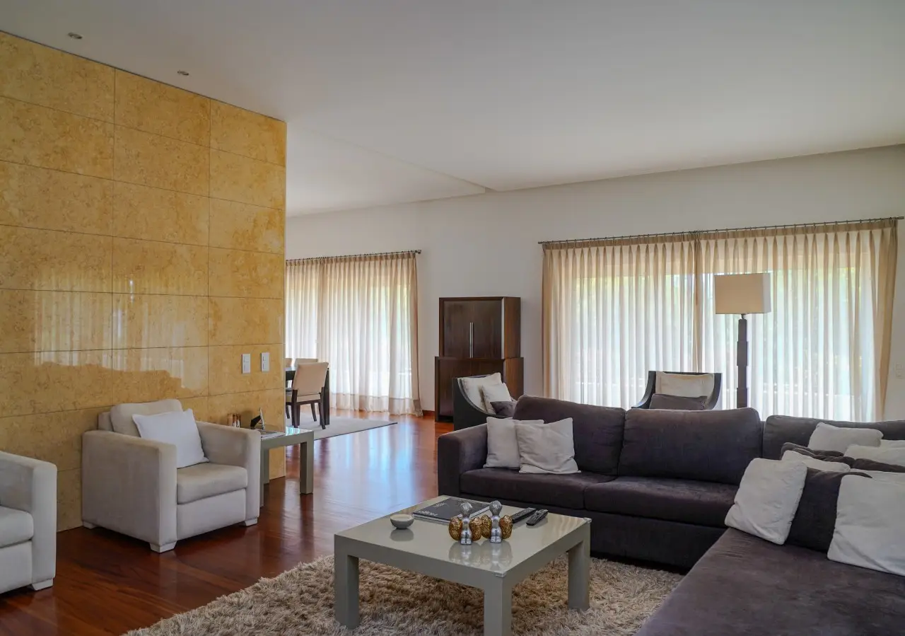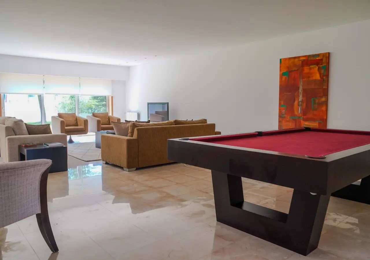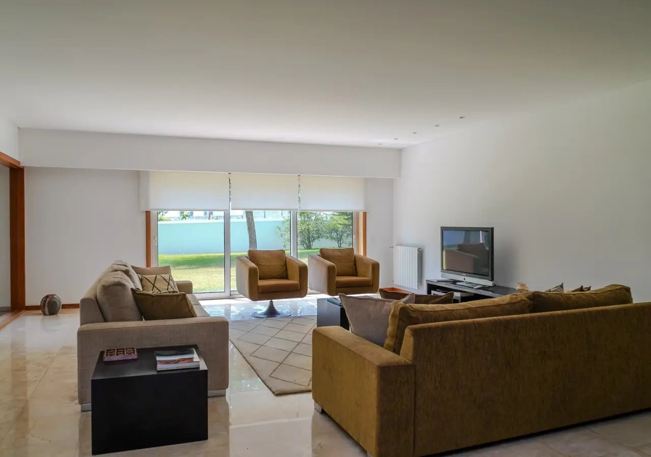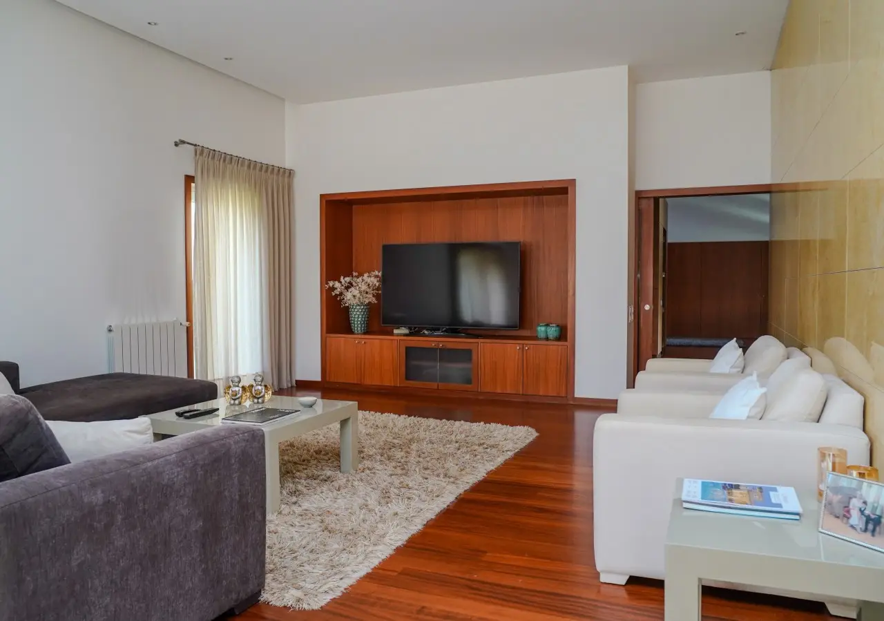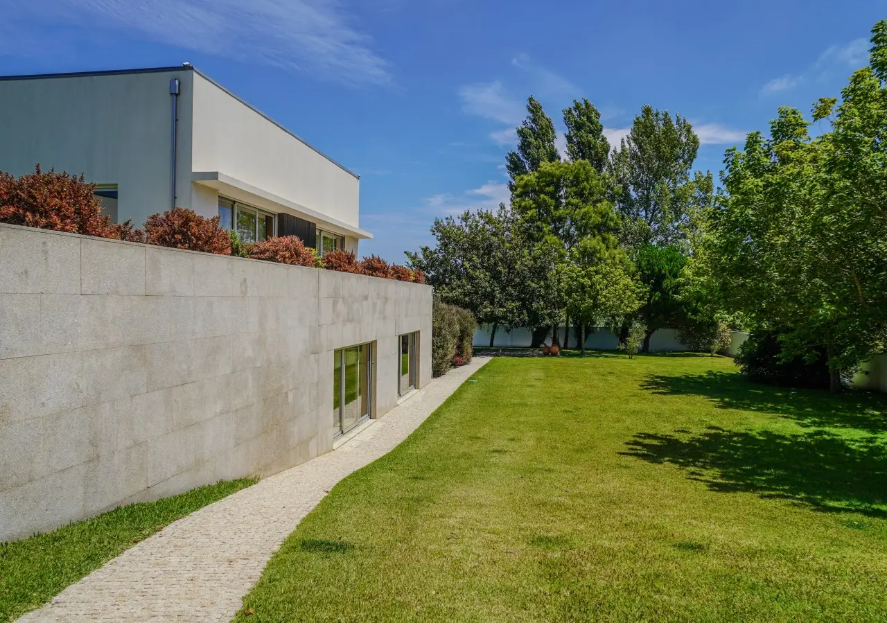 Contemporary architecture villa in a quiet residential area in Póvoa de Varzim. Consisting of just two floors, the first floor has a large social area with a living and dining room, a fully equipped kitchen, an office and four suites, all with access to the outside garden. On the basement level, with direct access to the well-kept garden, there is a wellness and leisure area with a heated indoor pool, a pool toilet, a games room, a suite and a garage with capacity for five cars. Classic, top-quality finishes characterize this property, such as the wooden floors and marble applied to large areas of the villa. Located in a quiet and bucolic area, but at the same time close to schools, hypermarkets, hospitals, 10 minutes from the center of Póvoa de Varzim and 25 minutes from Porto. CHARACTERISTICS: Plot Area: 4 408 m2 | 47 443 sq ft Deployment Area: 490 m2 | 5 273 sq ft Building Area: 765 m2 | 8 231 sq ft Bedrooms: 5 Bathrooms: 7 Garage: 5 Energy efficiency: B FEATURES: Central heating; Central vacuum system; Heated indoor swimming pool.
