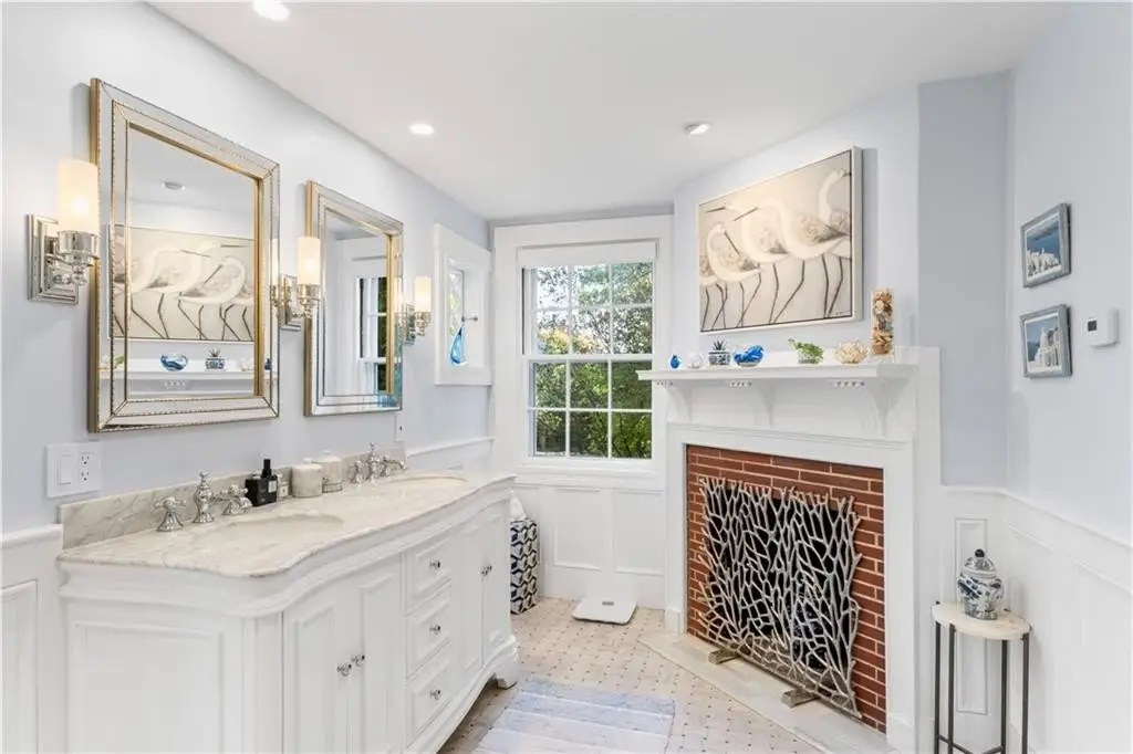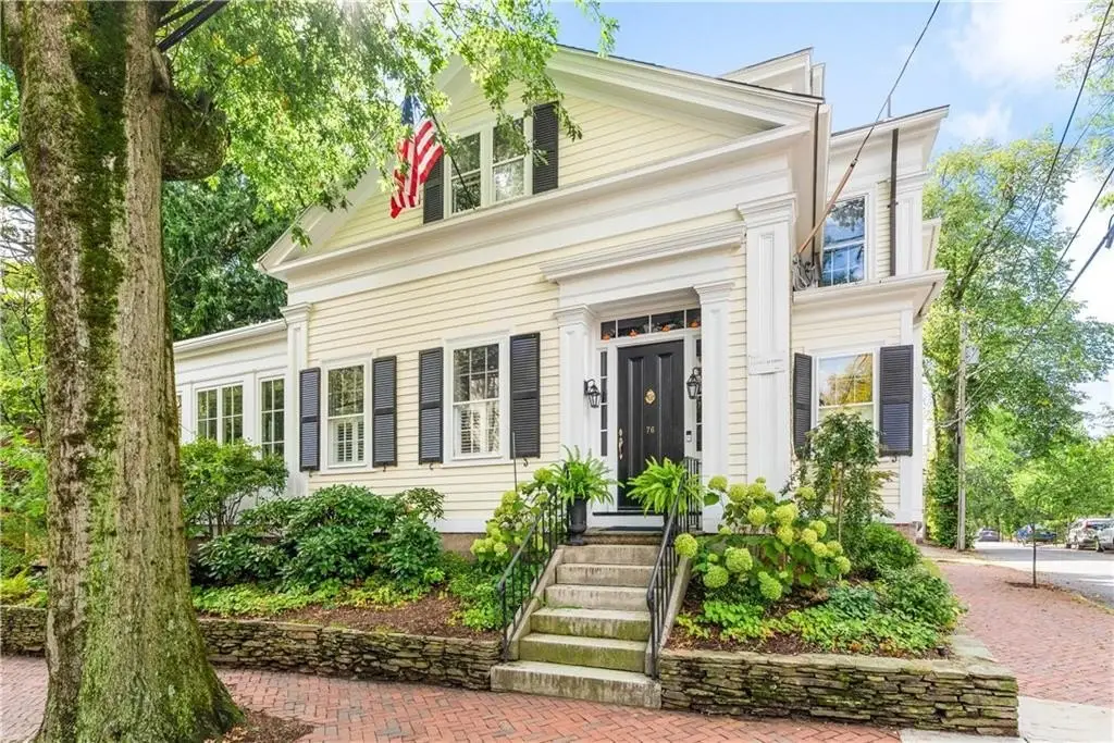 Welcome to the fabulous George F. Gladding House! Perched on one of the most prominent spots in Providence’s coveted College Hill neighborhood, this 1845 Greek Revival has been thoughtfully, and thoroughly, updated with an impeccable eye for detail, with gorgeous crown molding and built-ins, soaring ceilings, and tons of historic details – including 7 working fireplaces. From the main entrance, a stately front hall opens onto a front parlor and a private home office with a half bath. The spaciously redesigned living room, with a gas fireplace, wet bar, and fridge, opens to an elegant dining room. An adjacent sunroom offers a quiet retreat, and steps down onto a private, lusciously landscaped private courtyard patio and garden. The stunning eat-in kitchen features radiant-heated Spanish marble floors, high-end appliances, a breakfast nook, and a dedicated mud room. Upstairs, find two primary suites – the larger offering a fireplace, soaking tub, and radiant heat – plus two additional bedrooms, a family bath, and a laundry room. The third floor includes a private guest suite and additional office space. A new HVAC system with central air, as well as new insulation, adds year-round comfort. Located just around the corner from Prospect Terrace Park, and moments from Brown, RISD, and incredible Downtown and East Side shops and restaurants, this truly special home offers the ideal blend of historic charm and modern luxury living in one of Providence’s most desirable locations.