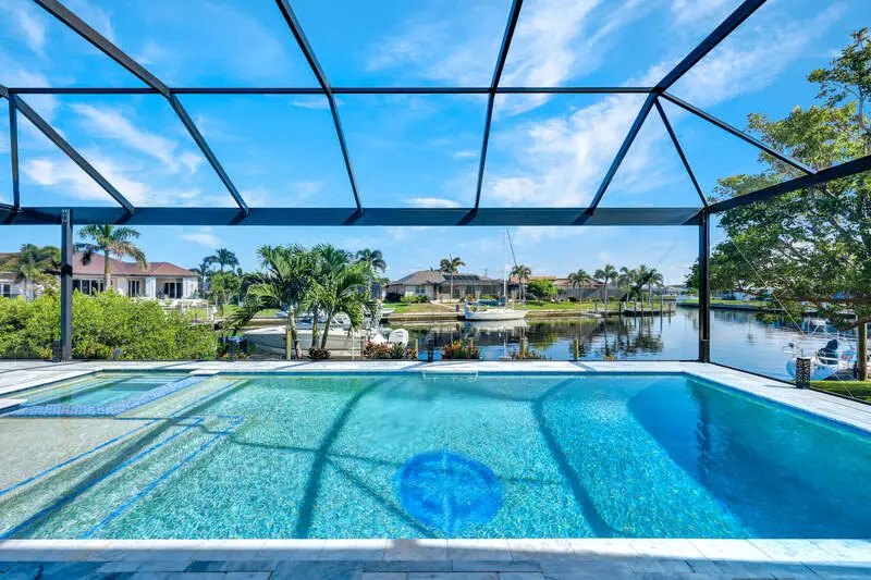 Nestled in the picturesque city of Punta Gorda, this waterfront haven offers direct Gulf access and a lifestyle of unparalleled luxury. Imagine stepping into a world where the views and outdoor spaces effortlessly blend into one stunning panorama: a saltwater pool and spa adorned with handcrafted marble pavers invites you to unwind, while an expansive outdoor kitchen sets the stage for al fresco dining under the stars. Enjoy effortless peace of mind with hurricane impact resistance windows, a remote-controlled hurricane protection screens and no-see-um screens, all while savoring the canal view. A 13,500 lb. boat lift beckons boating enthusiasts, with a boat available for purchase separately for those eager to explore the sparkling waters. Inside, discover the elegance of Thermador appliances in a kitchen that boasts a grand island, perfect for family gatherings and entertaining. Marvel at the soaring ceilings and the modern allure of porcelain tile throughout, complemented by an electric fireplace that exudes warmth and ambiance on those cool nights. The home's design features 10' zero corner pocket sliders, seamlessly blending the indoors with the outdoors. Conveniently located just minutes from downtown Punta Gorda and Fisherman's Village, with easy access to an array of amenities, and only 10 minutes by boat to the beautiful Charlotte Harbor, this property is a sanctuary of style and convenience, offering a slice of paradise tailored to your dreams.