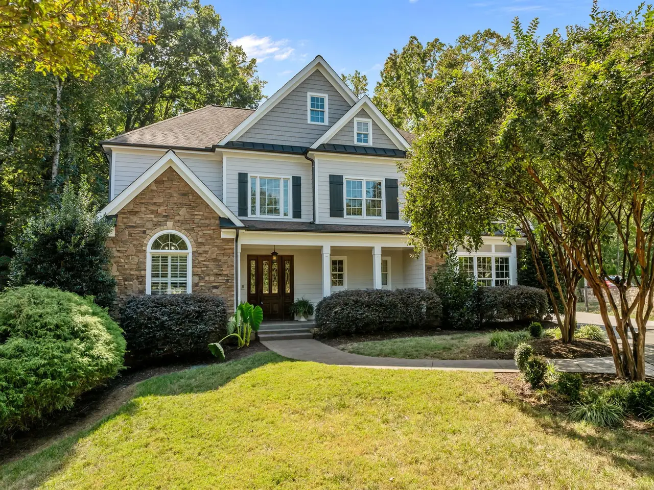 North Raleigh Unicorn Alert!! INCREDIBLE 6BR/5.5BA custom built beauty on private wooded cul-de-sac lot with BOTH finished walk-out basement AND finished 3rd level in The Sanctuary. This one-of-a-kind property blends timeless elegance with modern updates - ideal for multi-generational living or any family seeking space, privacy, and luxury under one roof. Beautiful design details grace every room in this sun-lit open concept masterpiece including cozy window seats, built-ins and custom wood shutters. Chef's kitchen includes custom cabinetry, Thermador appliances, pot filler, and granite. Sun-lit breakfast nook & large screened-in porch are steps from the kitchen for all to enjoy morning coffee. Main-level guest/in-law suite with connecting ensuite & walk-in closet, drop zone, and large office complete the main level. Luxurious owner's suite on 2nd level with spa-like ensuite includes double vanities, oversized rainfall shower, and TWO spacious walk-in closets. THREE secondary bedrooms on the 2nd level include two full baths AND flex room with added closet could easily be a 7th bedroom if needed. FINISHED walk-out basement with large entertaining patio transforms into whatever your family needs most: a second living space with spacious bedroom & connecting ensuite, plus plenty of room for a theater, gym and perhaps a craft room. HUGE finished 3rd-floor oasis- pure fun for the kids or kids at heart. Don't forget the 3-car garage and private landscaped, tree-lined backyard. Truly an exceptional home ready to write its next chapter - VERY rare find in this location!! WELCOME HOME!