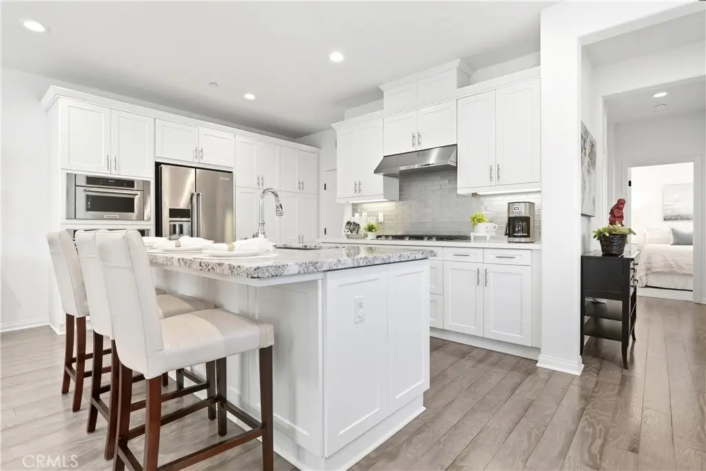 Welcome to 37 Garcilla, an inviting 3-bed, 3-bath residence tucked on a quiet cul-de-sac in the award winning 55+ community of Rancho Mission Viejo. Designed for easy living, the main level features a bright open great room and a contemporary kitchen finished with quartz counters, a full tile backsplash, and premium stainless steel appliances. The primary suite offers an oversized walk-in closet and spacious ensuite, while a second bedroom on the first floor adds everyday flexibility. Upstairs, guests enjoy their own private retreat with a third bedroom and a generous loft/bonus room. All three bathrooms include showers, with a shower/tub combo upstairs. Thoughtful upgrades elevate the home throughout: energy-efficient recessed LED lighting, classic white shaker cabinetry, durable engineered wood in the great room, and a tankless water heater. A finished two-car garage with custom cabinetry and epoxy flooring keeps everything organized, and the professionally landscaped front yard is maintained for you so you can simply lock, leave, and enjoy the RMV lifestyle. Beyond the home, you'll enjoy a vibrant, resort-style lifestyle with exclusive access to private Gavilan 55+ amenities including The Perch, The Hacienda, The Outlook, The BBQ Barn, and The Getaway. Stay active and connected with a state-of-the-art fitness center, saltwater pool, spa, cabanas, bocce ball courts, yoga studio, fire pits, and social lounges. And when the grandkids visit? You'll have full access to Rancho Mission Viejo's award-winning all-ages amenities, arcade, community farms, fitness centers, indoor basketball gym, putting green, Sports park, tennis and pickleball courts, parks, and events that make this community unlike any other.