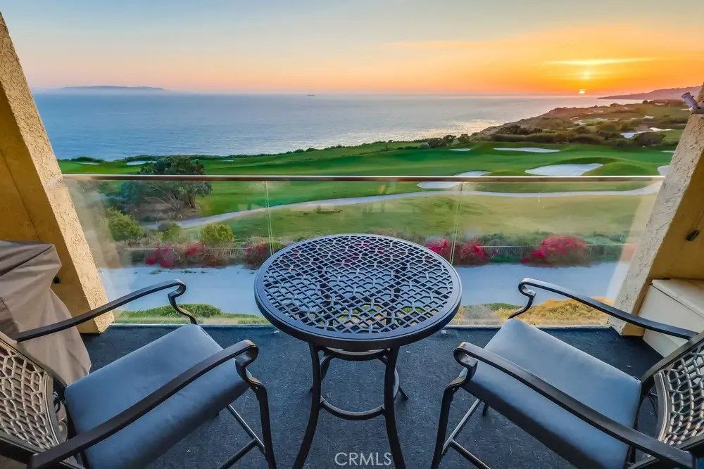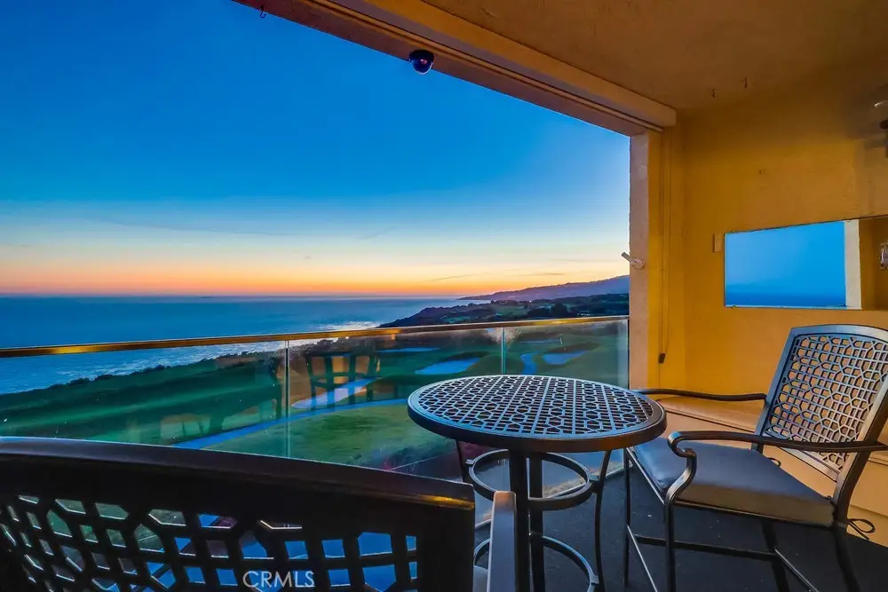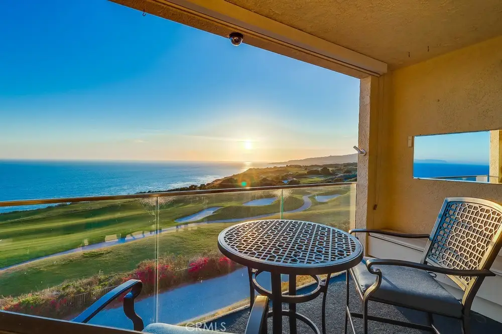 Capture unforgettable Pacific Ocean, Catalina Island & golf course views that span all the way to Terranea Resort in this magnificent 1 level penthouse condo! Turnkey, move-in ready 2-bedroom, 2-bathroom top floor condo spares no expense & sits in the best location in the building that offers amazing sunsets! Sizable, shaded patio offers built-in seats, glass railings & the best views for miles! Open concept living & dining rooms boast immaculate ocean, island, golf course & peninsula views from every window. Living room comes fully equipped w/easy care laminate floors, gas fireplace, TV & built-in cabinets! Designer kitchen features recessed lights, stainless steel fridge & dishwasher, stove/oven combo, white cabinets, glass display casing, pantry, tile floors & backsplash, plus long countertops - perfect for a chef! Dining area showcases custom shades, laminate floors, views spanning down the coastline & amazing sunsets! Proud primary suite flaunts 2 closets, walk-in closet w/cabinets, carpet, crown molding, remote controlled fan/light & bathroom ensuite w/walk-in shower, 2 vanities/sinks, easy care tile floors & crown molding. Guest bedroom is used as a bedroom/office combo & comes w/a built-in Murphy bed, built-in cabinets, crown molding, remote controlled fan/light, TV, recessed lights & carpet. One could also use it as a gym or media room. Closets offer panel sliding doors & built-in cabinets. Guest bathroom features tile floors, one sink vanity & shower/tub combo. Laundry located inside home & includes washer & dryer plus more storage shelves. Hallway storage includes utility closet & built-in cabinets. Home has 2 covered garage parking spots & private storage room (size approx. 6'x12'). Premier Ocean Terrace grounds offer majestic ocean views & breathtaking scenery. Amenities include poolside lounge, in-ground pool & hot tub w/striking ocean views, private pickleball & tennis courts, fitness center, dog park, shuffleboard, rec. center w/kitchen, billiards & sauna. Condo located on quiet cul de sac near hiking trails that span down the Palos Verdes coastline, private beaches & magical ocean coves. Home overlooks Trump National Golf Club, famous Terranea Resort/Spa, close to Los Verdes Golf Course, beaches, parks, coastal dining & shopping, plus located in an excellent school district! Home is a short drive to 110 & 405 Freeways, LAX, downtown LA & Beverly Hills! HOA dues include water, trash, gas, sewage, on-site manager & common area maintenance.