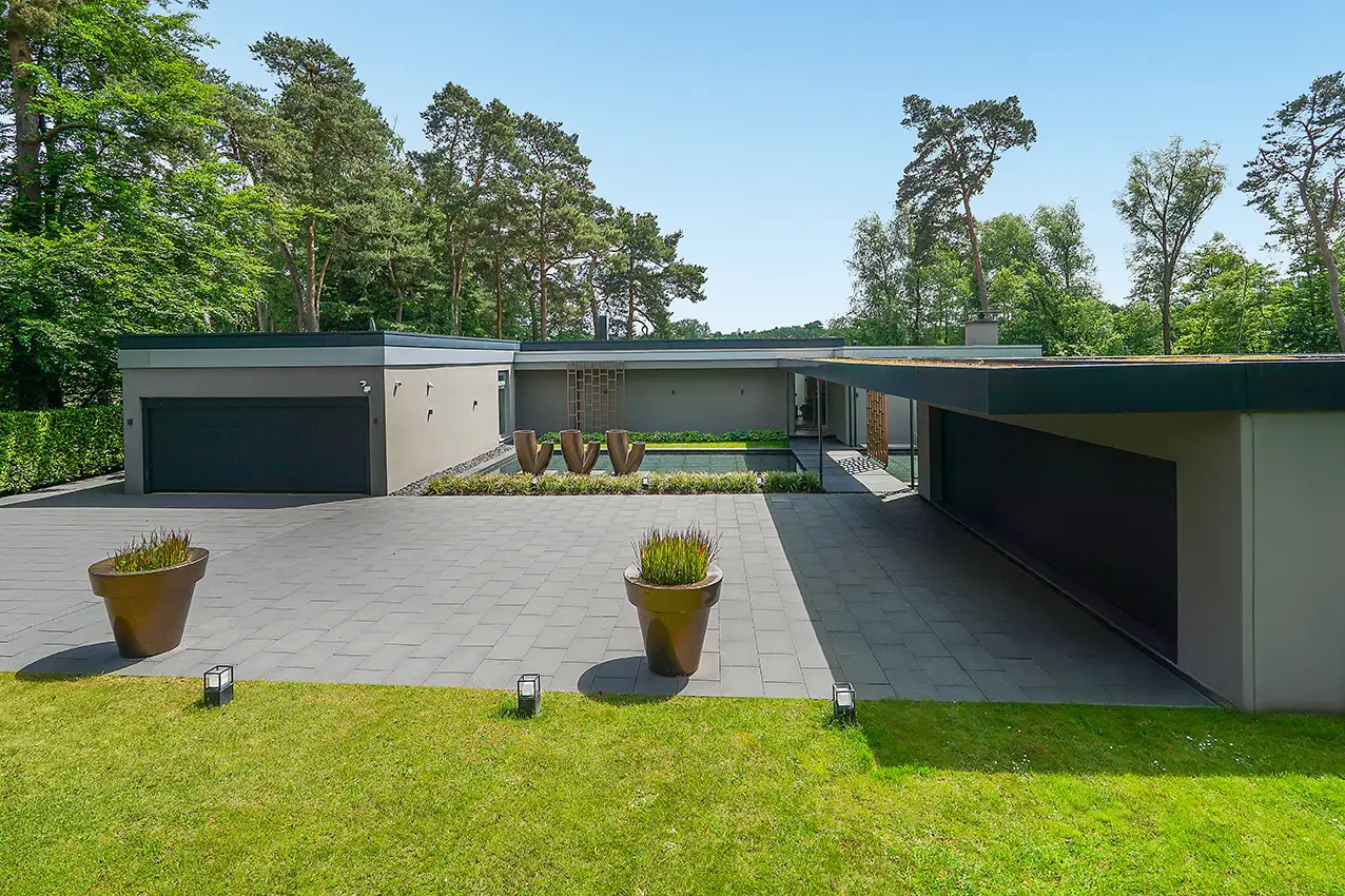 The bungalow with a living space of approx. 415 m² sets standards in terms of style, comfort and exclusivity. The property was originally built in 1970 and was completely renovated in 2006/2007; further extensive modernization measures in the recent past have brought the property to its immaculate current condition. High ceilings, flowing room transitions, plenty of natural light and a constant view of the beautiful natural surroundings of the Waldsee create an exceptional living ambience. The property has a total of seven rooms, including four bedrooms and a study, offering enough space for a large family as well as guests. Three modern bathrooms ensure maximum comfort and are both functional and very stylish. Overall, the residence impresses with its modern, forward-looking architecture, light-flooded floor plans, impressive ceiling heights with floor-to-ceiling windows and first-class technical equipment that leaves nothing to be desired. The outdoor area is another highlight of this property offer. Situated on an approx. 2,500 m², secluded plot directly on the Ratinger Waldsee lake, this area promises plenty of privacy and tranquil nature. The spacious plot with a garden area of approx. 1,100 m² invites you to linger, relax, sunbathe and enjoy a variety of outdoor leisure activities and offers a unique view of the protected lake. The spacious terrace with lounge, dining and sunbathing areas as well as a barbecue area on the edge of the lake have a total area of approx. 185 m. Five garage spaces, spread over two spacious garages, as well as sufficient parking space for three outdoor parking spaces complete the offer. Potential buyers are invited to view the property to gain their own impression of the advantages of this exceptional property. This bungalow presents itself as a prestigious residence that combines comfort with modern elegance.