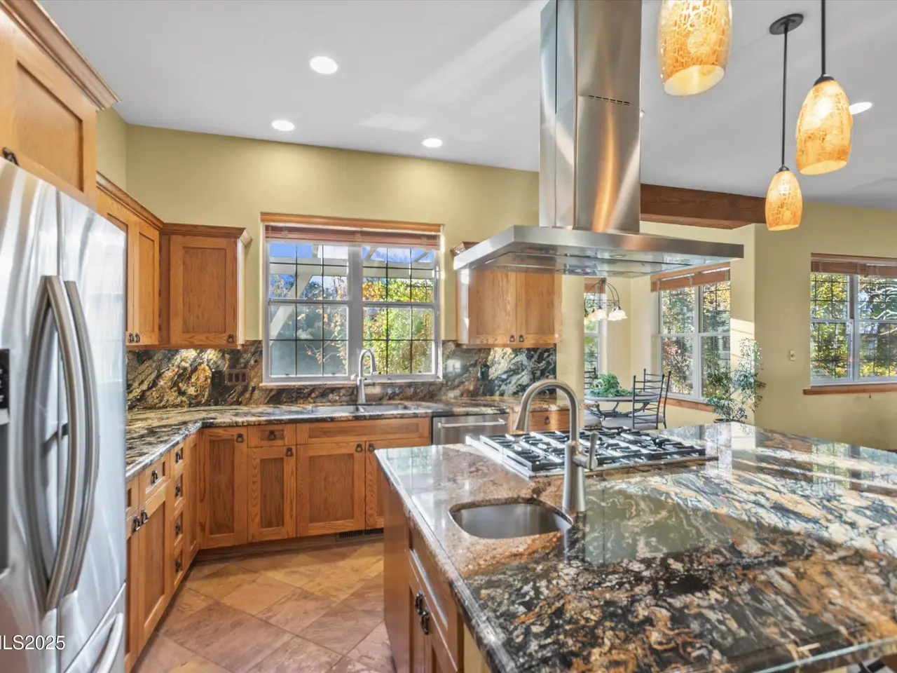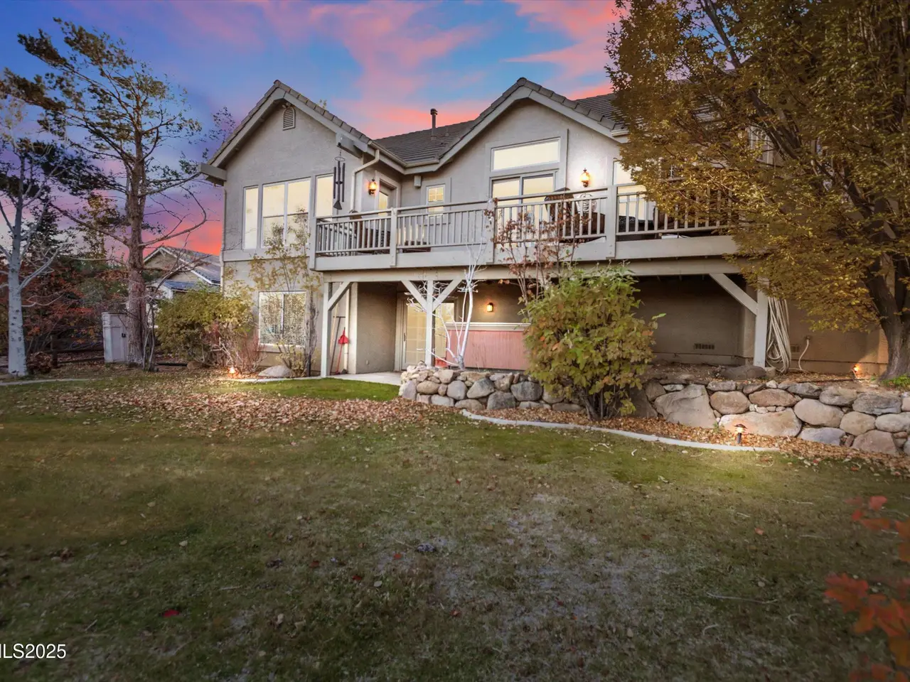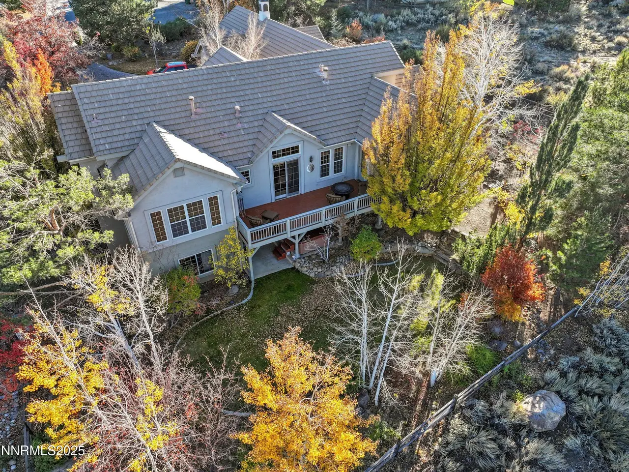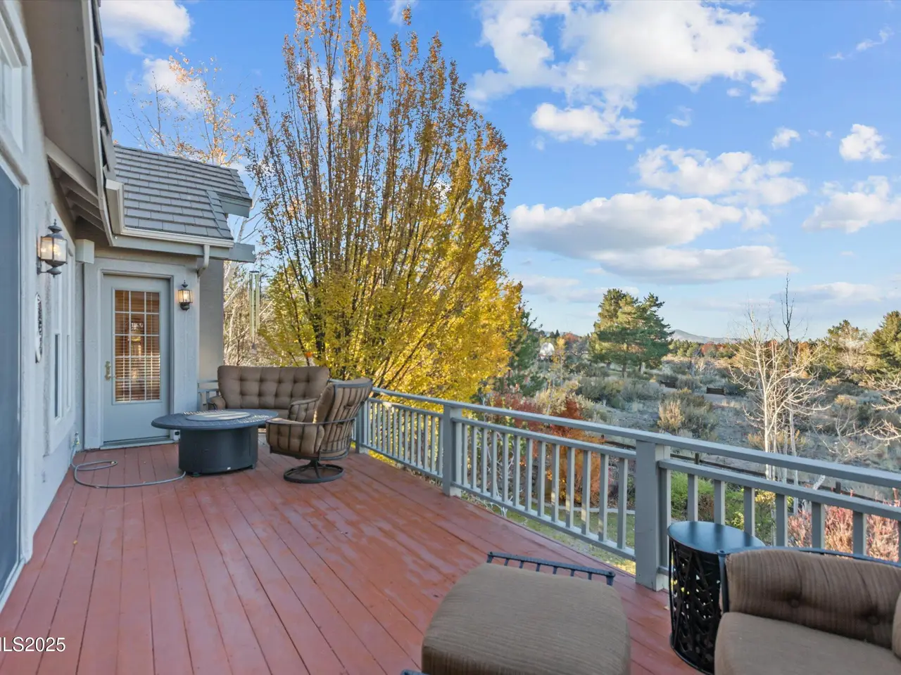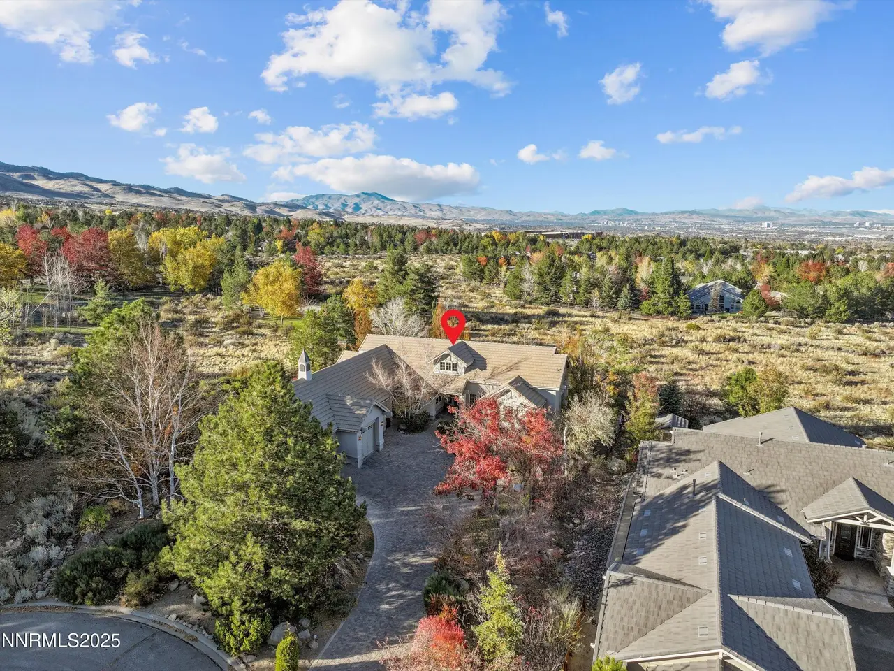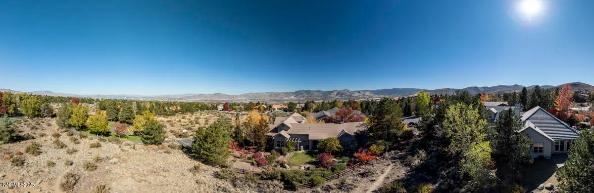 Private cul-de-sac living in Saddlehorn with wide views of Mt. Rose, the Sierra, and the Reno skyline. This custom home blends timeless architecture with a peaceful, elevated setting. Historic reclaimed wood beams from old railroad tunnels deliver distinctive Nevada character. Main-level living features formal living and dining rooms, a welcoming family room, and a well-appointed kitchen with custom cabinetry and excellent storage. The primary suite is also on this level for comfort and ease. Downstairs, two additional bedrooms and a large bonus/media room open to outdoor living areas surrounded by mature landscaping and natural scenery. Saddlehorn parkland borders the property on two sides, providing added privacy, improved sun exposure, and enhanced views. A rare 4-car garage offers outstanding space for vehicles and gear. Residents enjoy walking trails, parks, and community recreation close by, with Galena hiking and shopping minutes away. Mt. Rose Ski Area is just 11 miles up the road. A quiet, scenic location paired with respected custom design. Strong architecture. Everyday convenience. Ready for what's next.